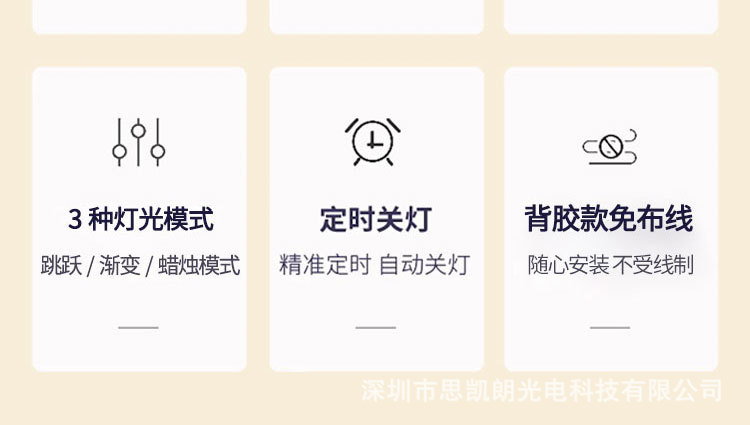配件详细:3灯,3支架,3背胶,3螺丝,3磁片,1遥控,1说明书