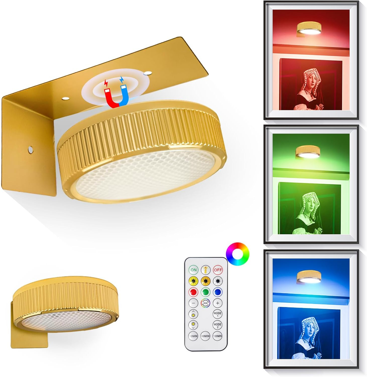 현대 벽 그림 램프 원격 제어 24 색 스포트라이트 설치-무료 자기 침대 옆 램프 야간 복도 벽 램프