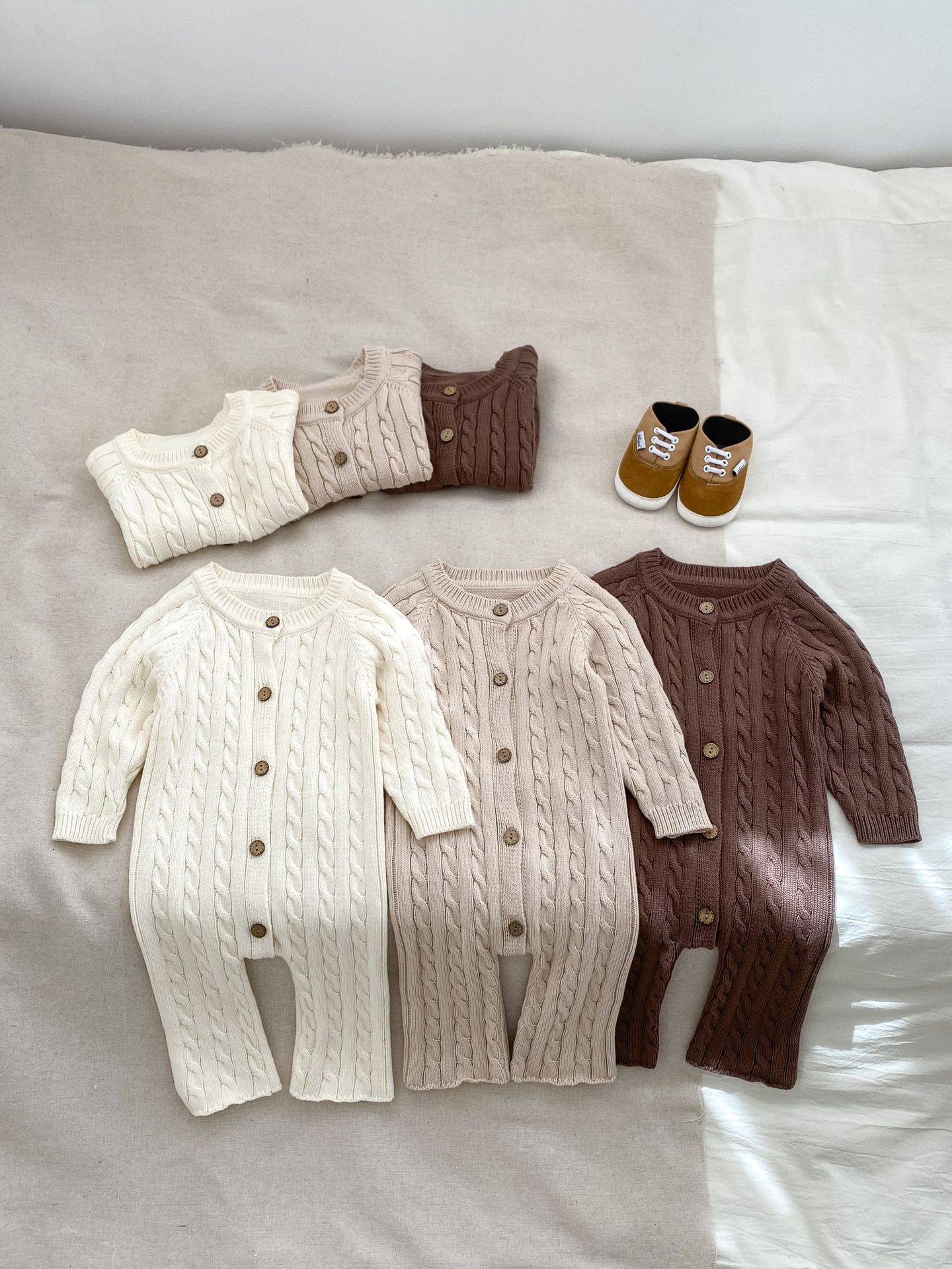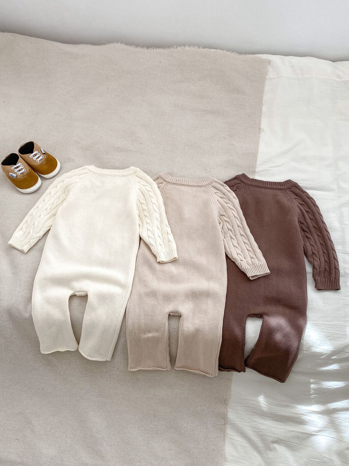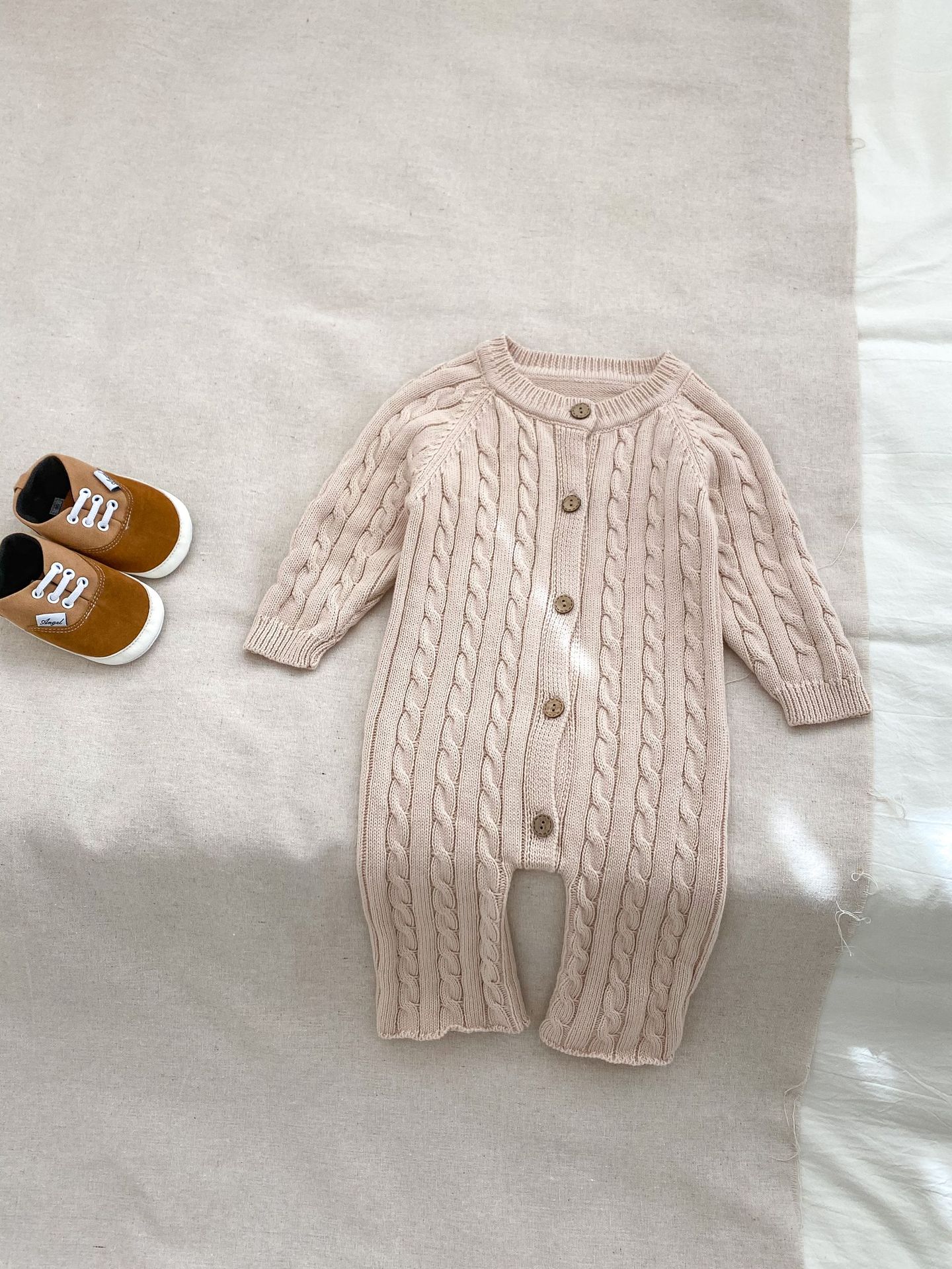 2025 여아 캐주얼 롱 크롤링 가을 신상 스웨터 긴팔 수제 꼬임 아기 점프수트 니트 롱 크롤링