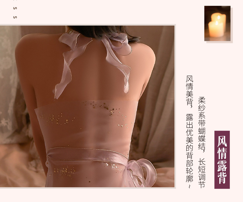 Mandy의 섹시한 속옷, 섹시한 홀터넥, 깊은 V, 시스루, 가벼운 민트 레이스, 고급 반짝이 부드러운 거즈 잠옷 9306스토어 가기