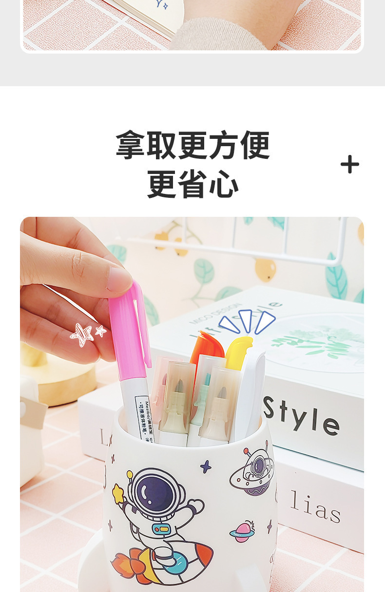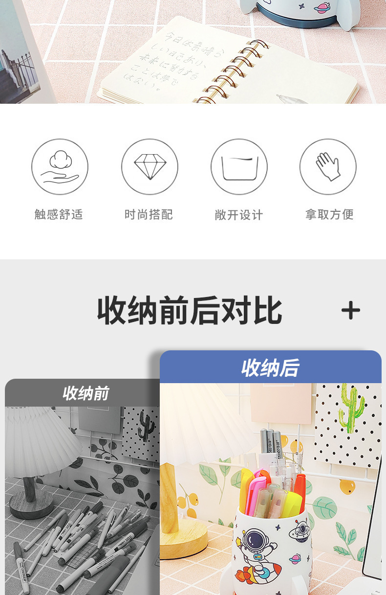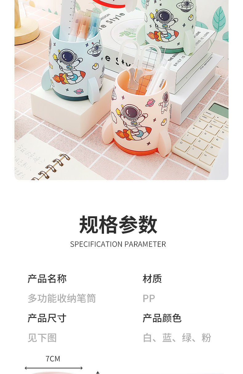 귀여운 로켓 스티커 펜 컨테이너 학생 데스크톱 문구 대용량 다기능 저장 상자 사무실 책상 마무리