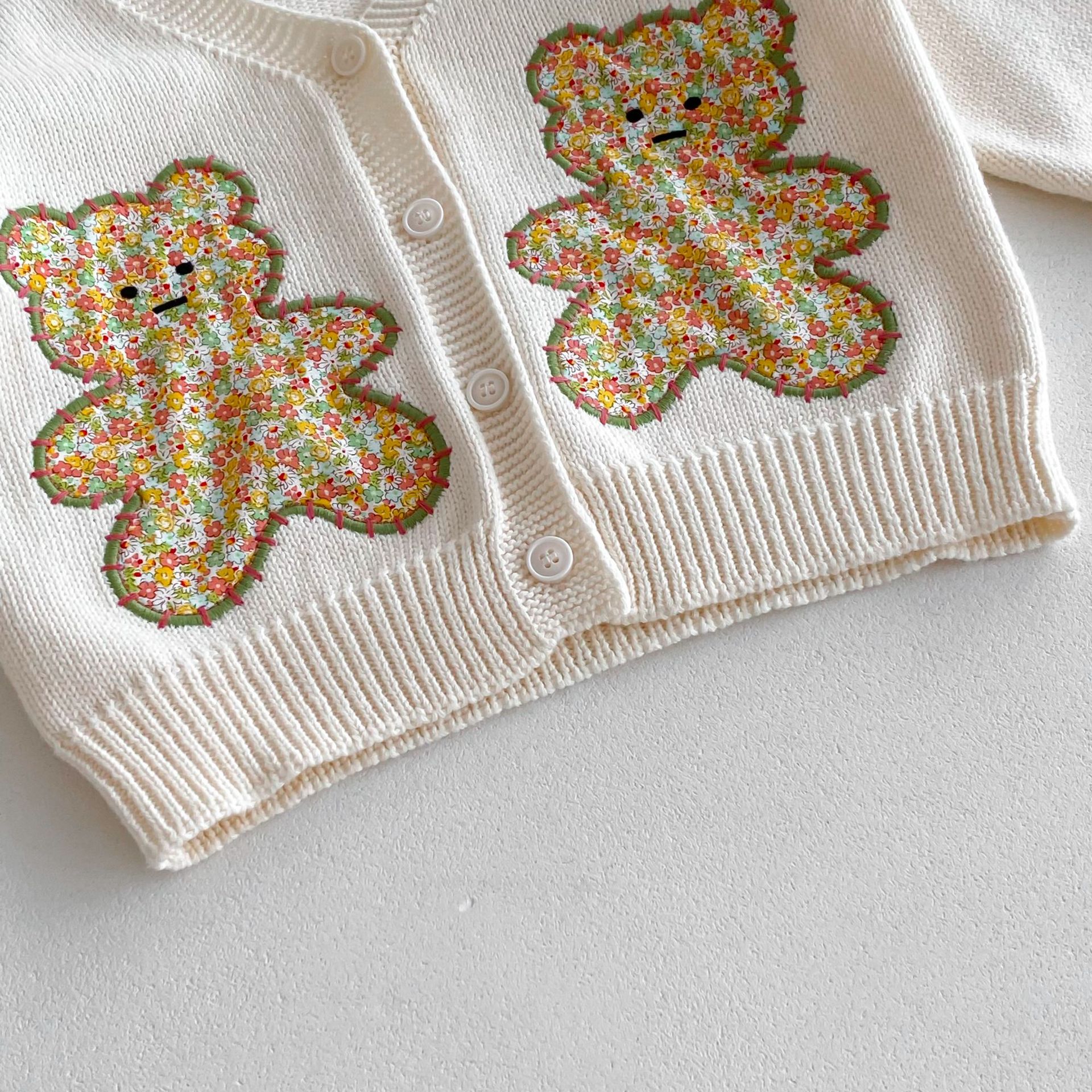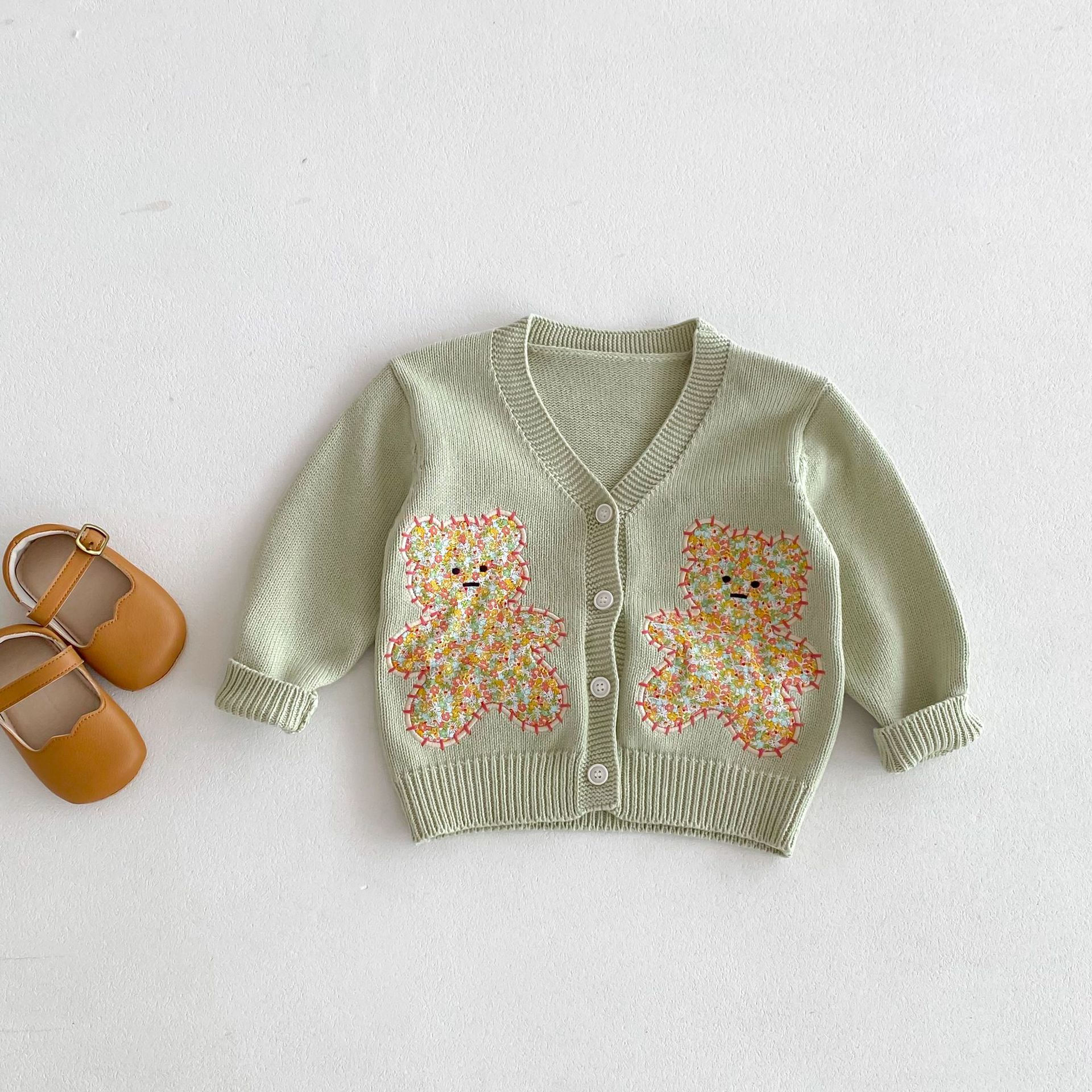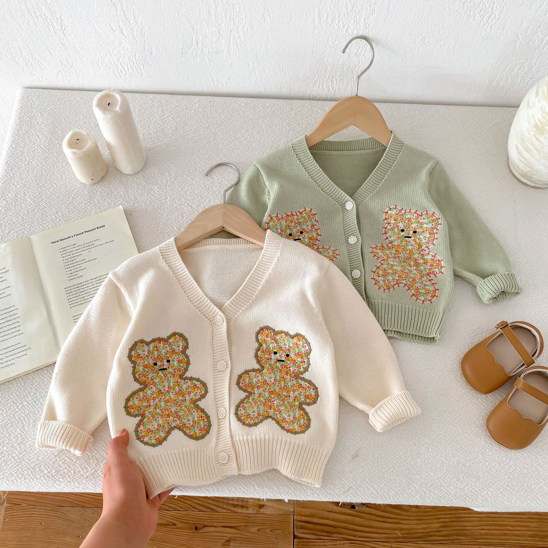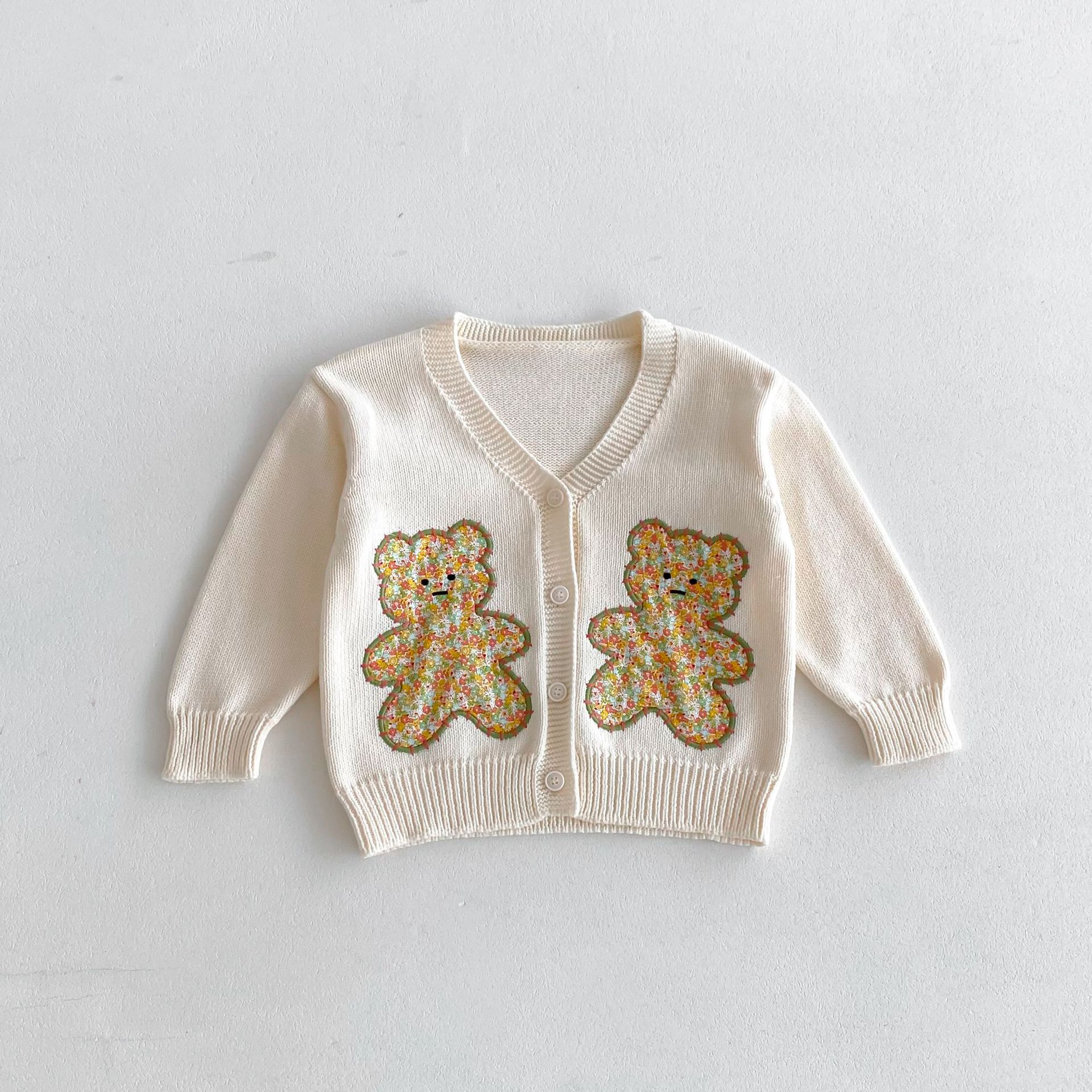 모리 재킷 코트 ~ 2024 년 가을 새 한국 어린이 스웨터 손 자수 귀여운 곰 니트 카디건스토어 가기