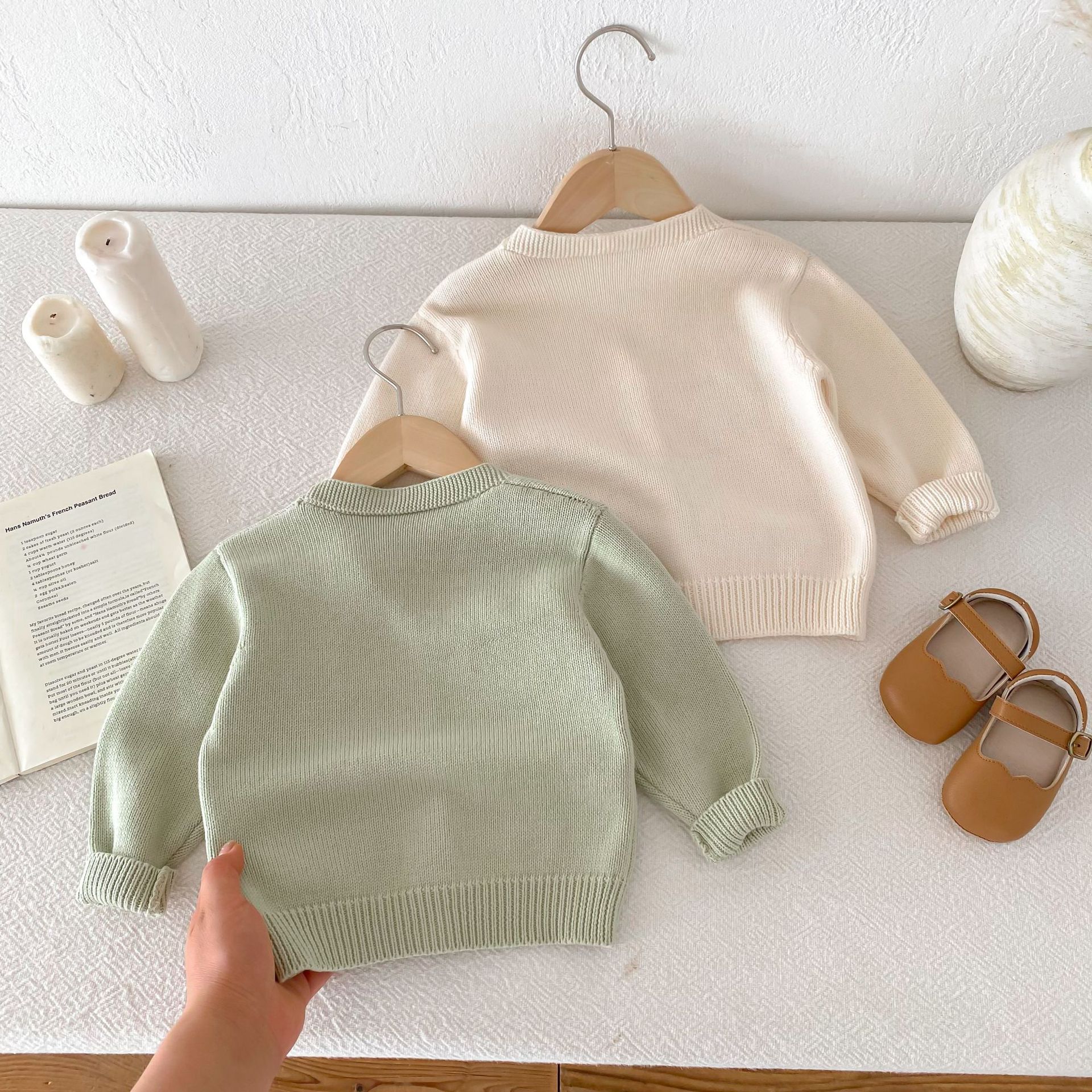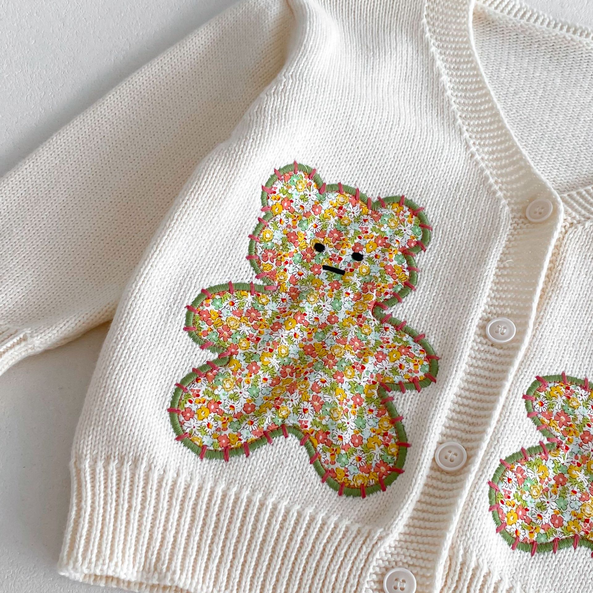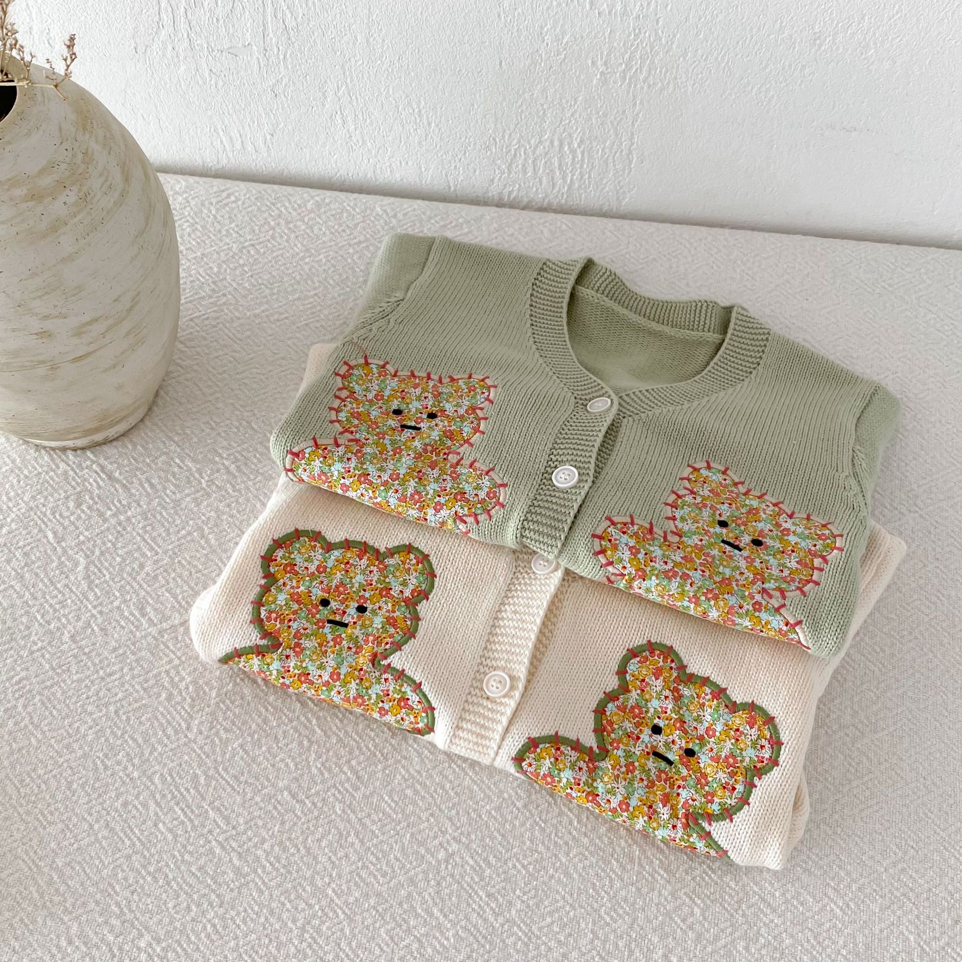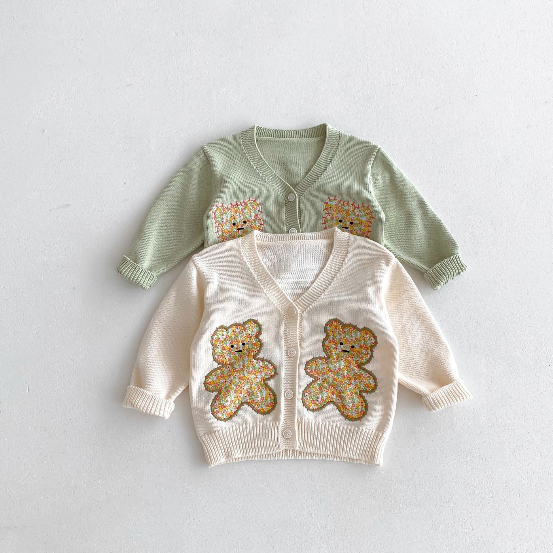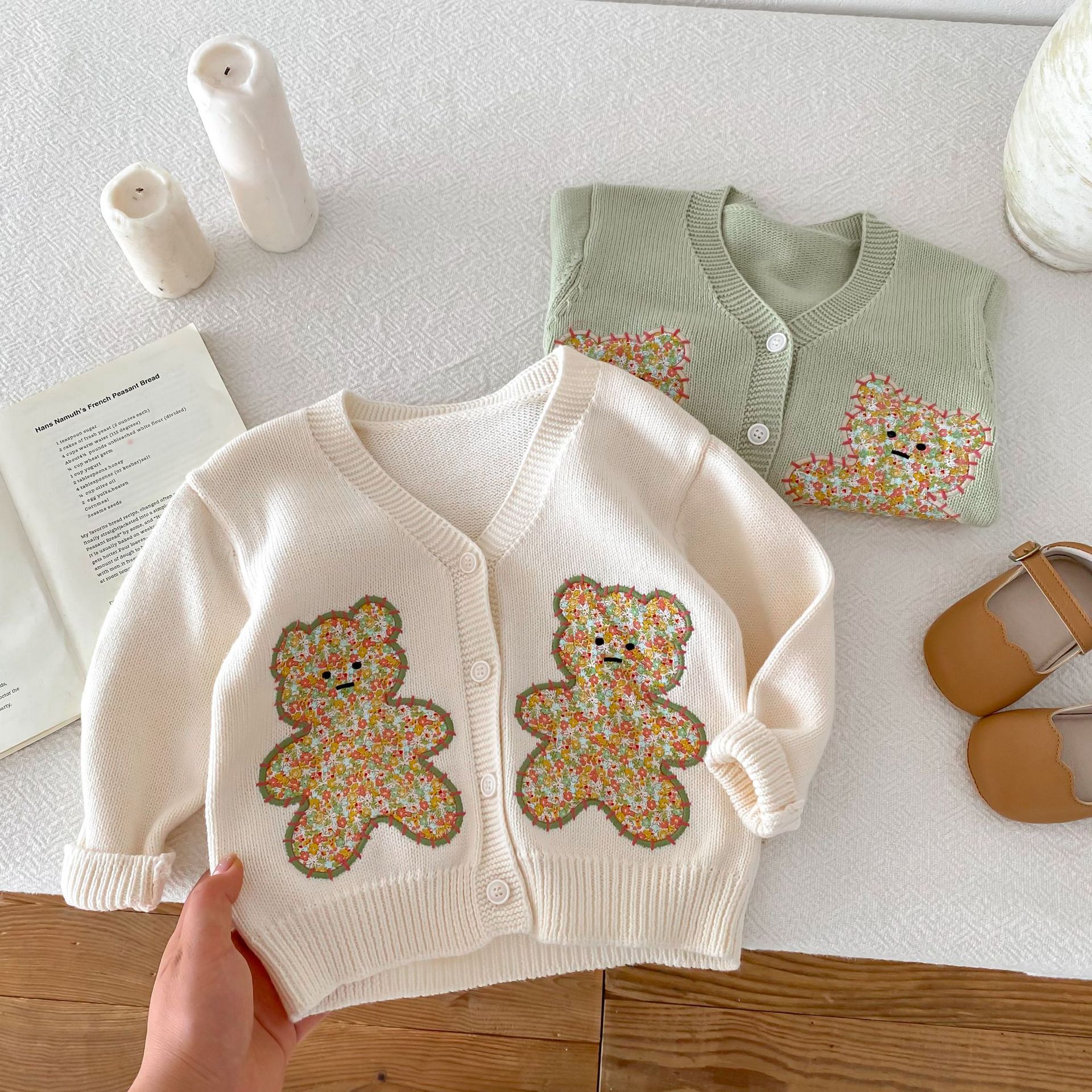모리 재킷 코트 ~ 2024 년 가을 새 한국 어린이 스웨터 손 자수 귀여운 곰 니트 카디건스토어 가기