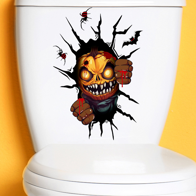 새로운 할로윈 화장실 스티커 스테레오 시뮬레이션 무서운 균열 욕실 화장실 공포 분위기 레이아웃 스티커스토어 가기