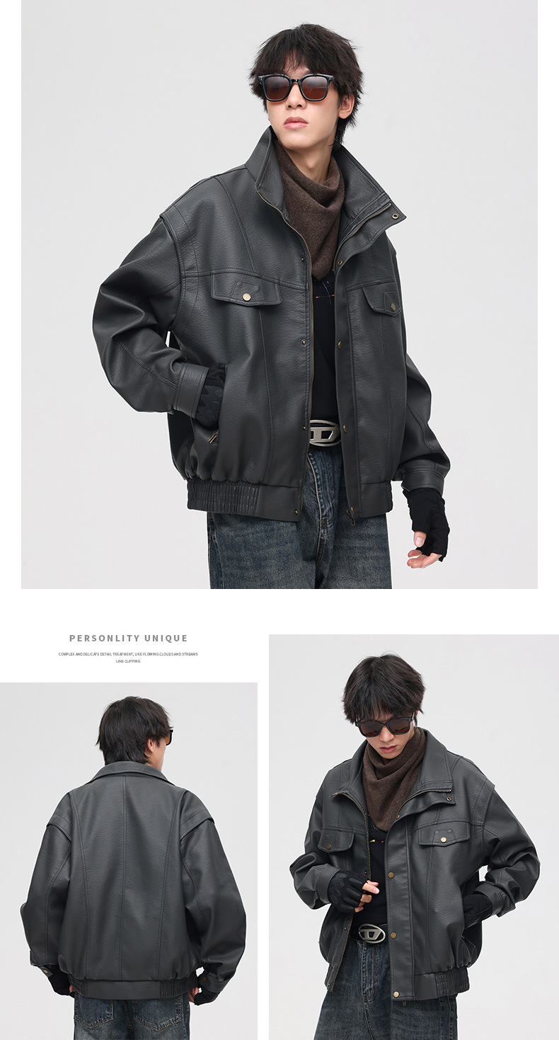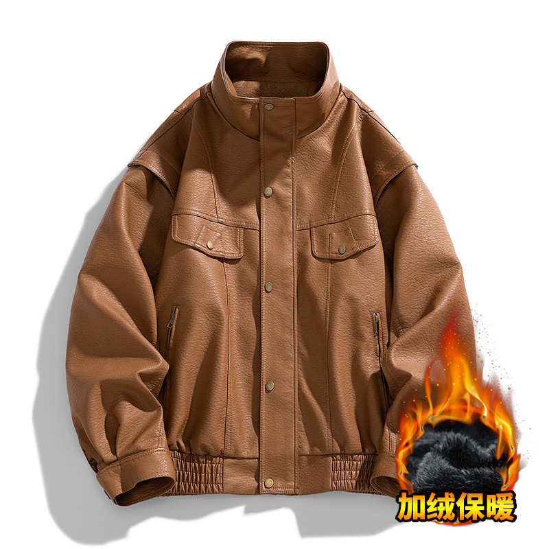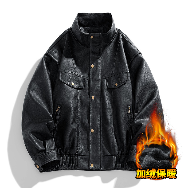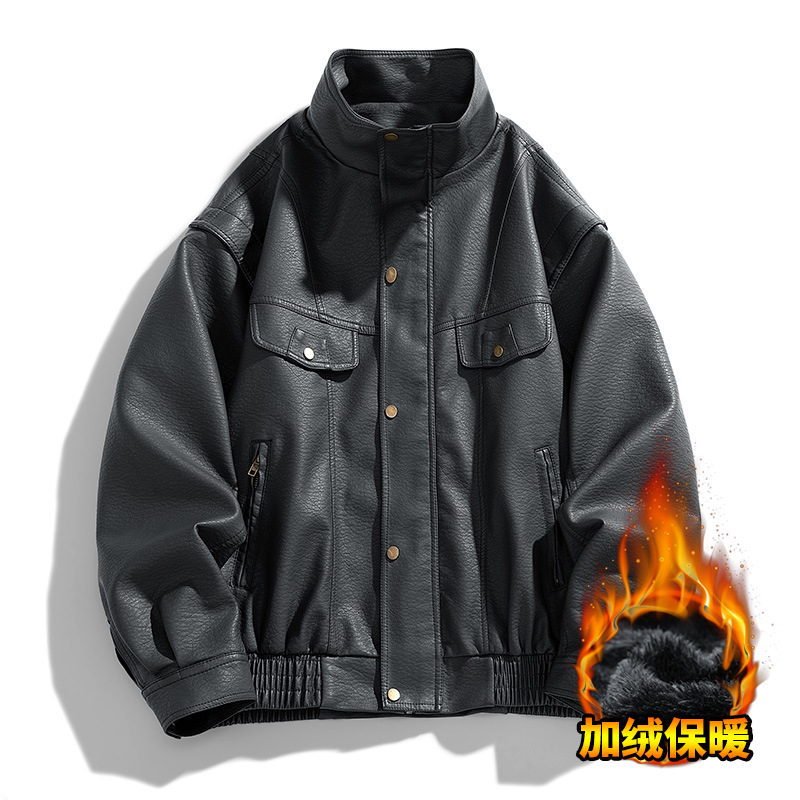 국경을 넘는 미국 복고풍 가죽 남자의 겨울 기모 남성을위한 새로운 가죽 자켓