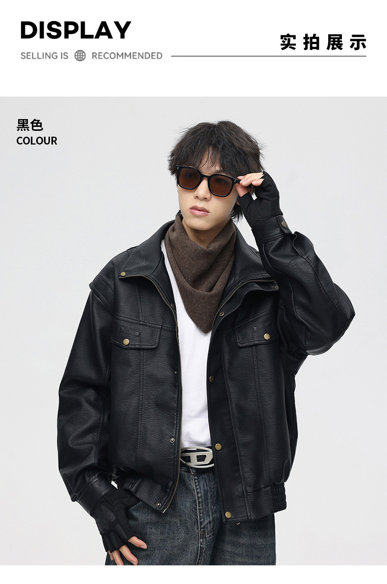 국경을 넘는 미국 복고풍 가죽 남자의 겨울 기모 남성을위한 새로운 가죽 자켓스토어 가기
