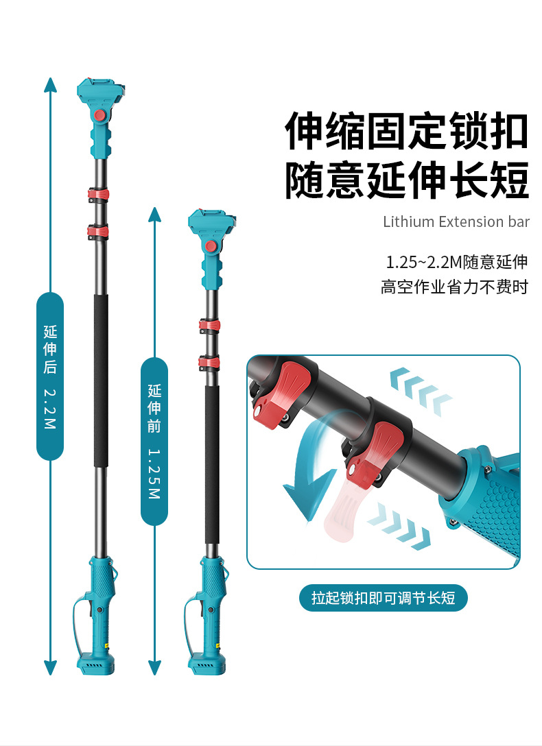 • 높은 가지 기둥 + 리튬 전기 가위 [셀 5개, 배터리 2개, 1회 충전]