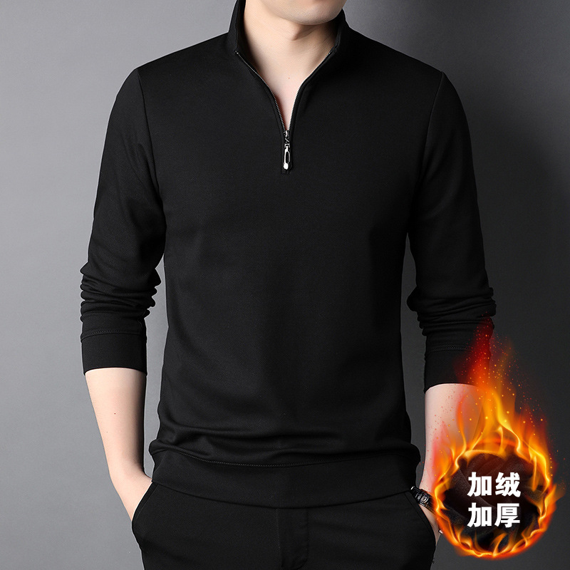 2024 봄 가을 신상 면 긴팔 티셔츠 남성 스탠드 칼라 반지퍼 솔리드 컬러 스웨트셔츠 남성용 이너웨어 도매스토어 가기