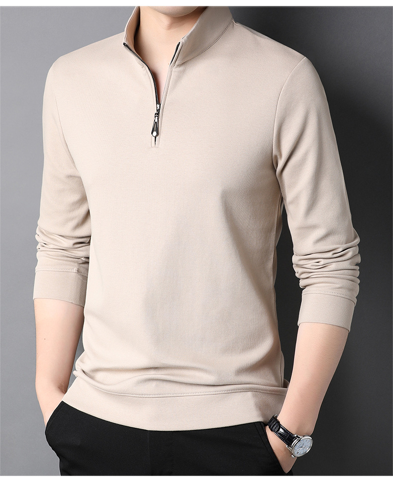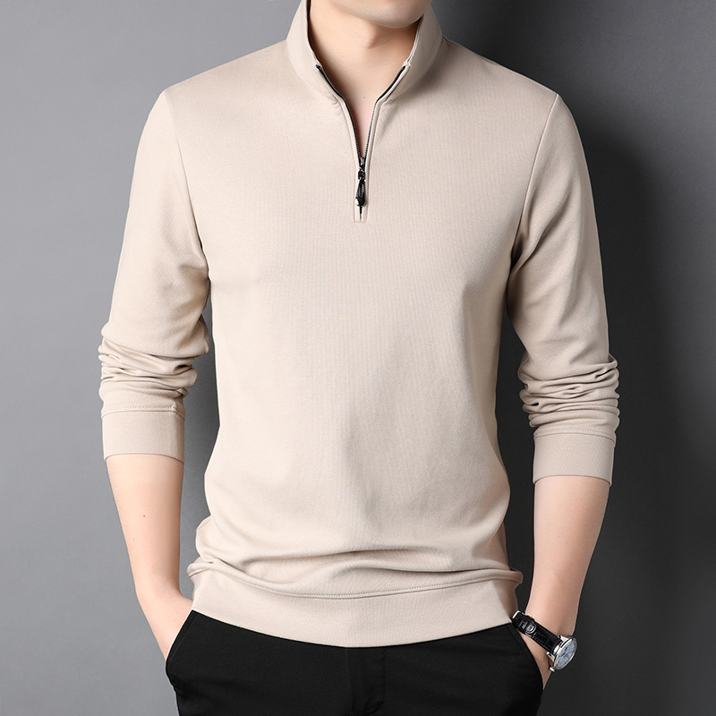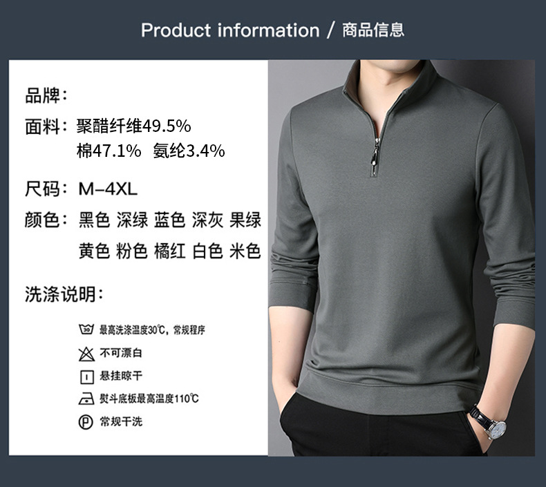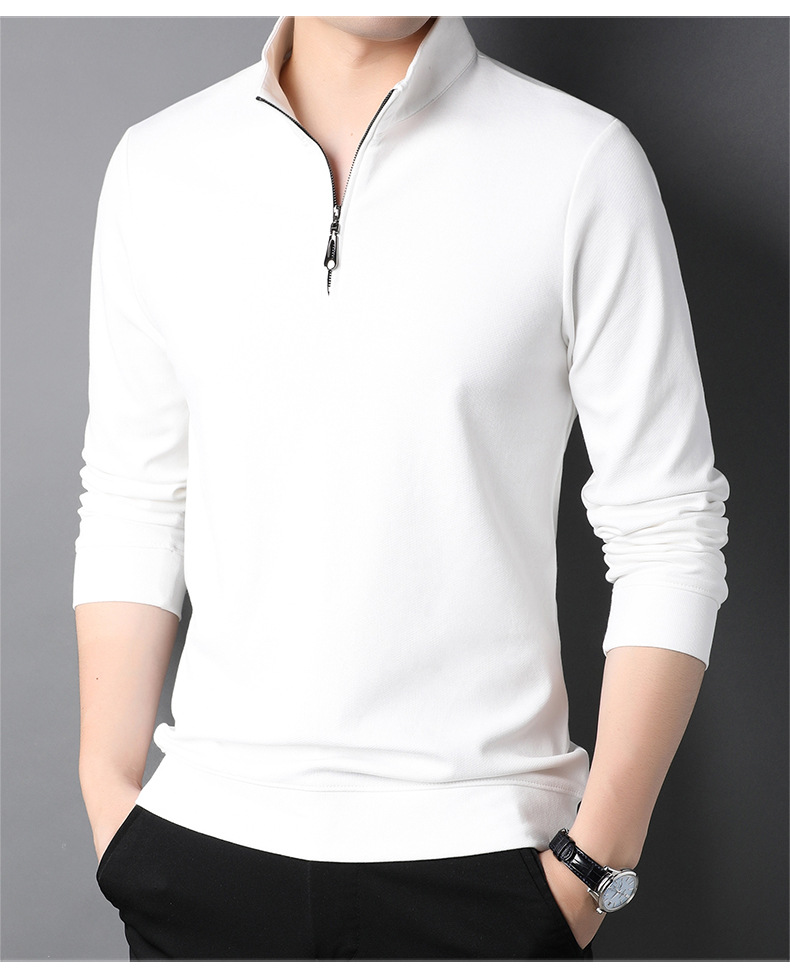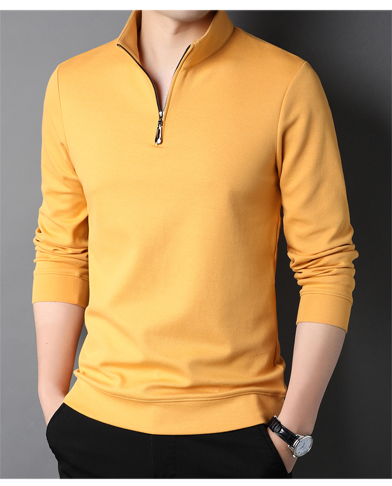 2024 봄 가을 신상 면 긴팔 티셔츠 남성 스탠드 칼라 반지퍼 솔리드 컬러 스웨트셔츠 남성용 이너웨어 도매