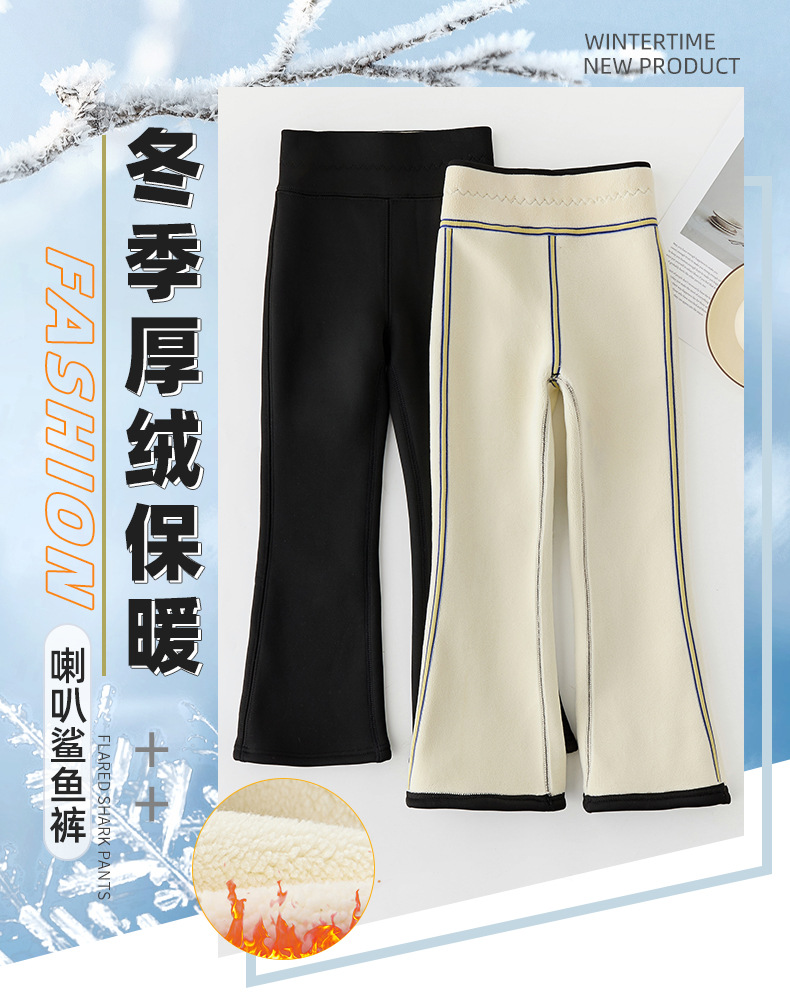 어린이 기모 상어 바지 여성 외부 착용 높은 허리 슬림 핏 벨 바지 가을과 겨울 소녀 요가 바비 레깅스