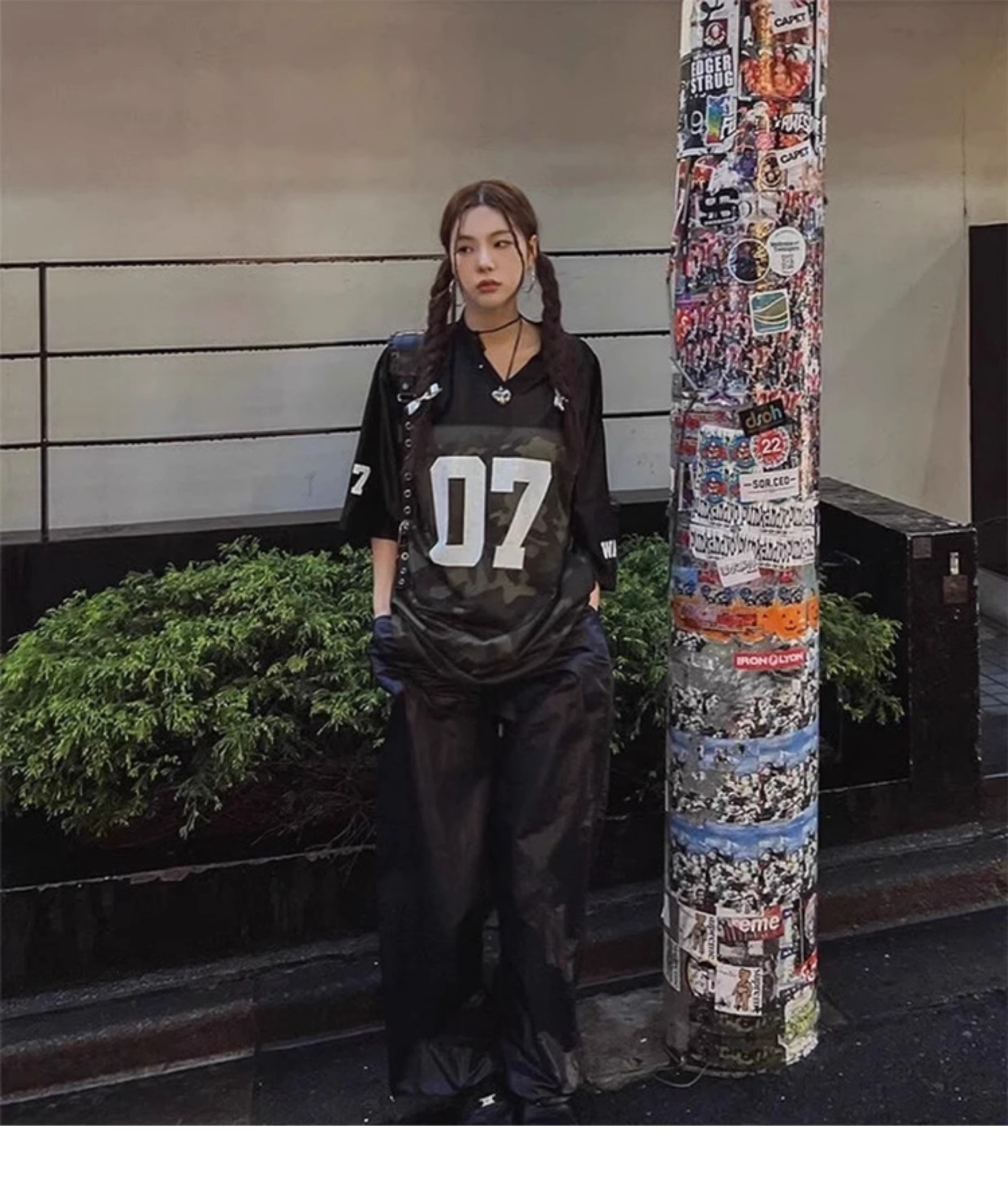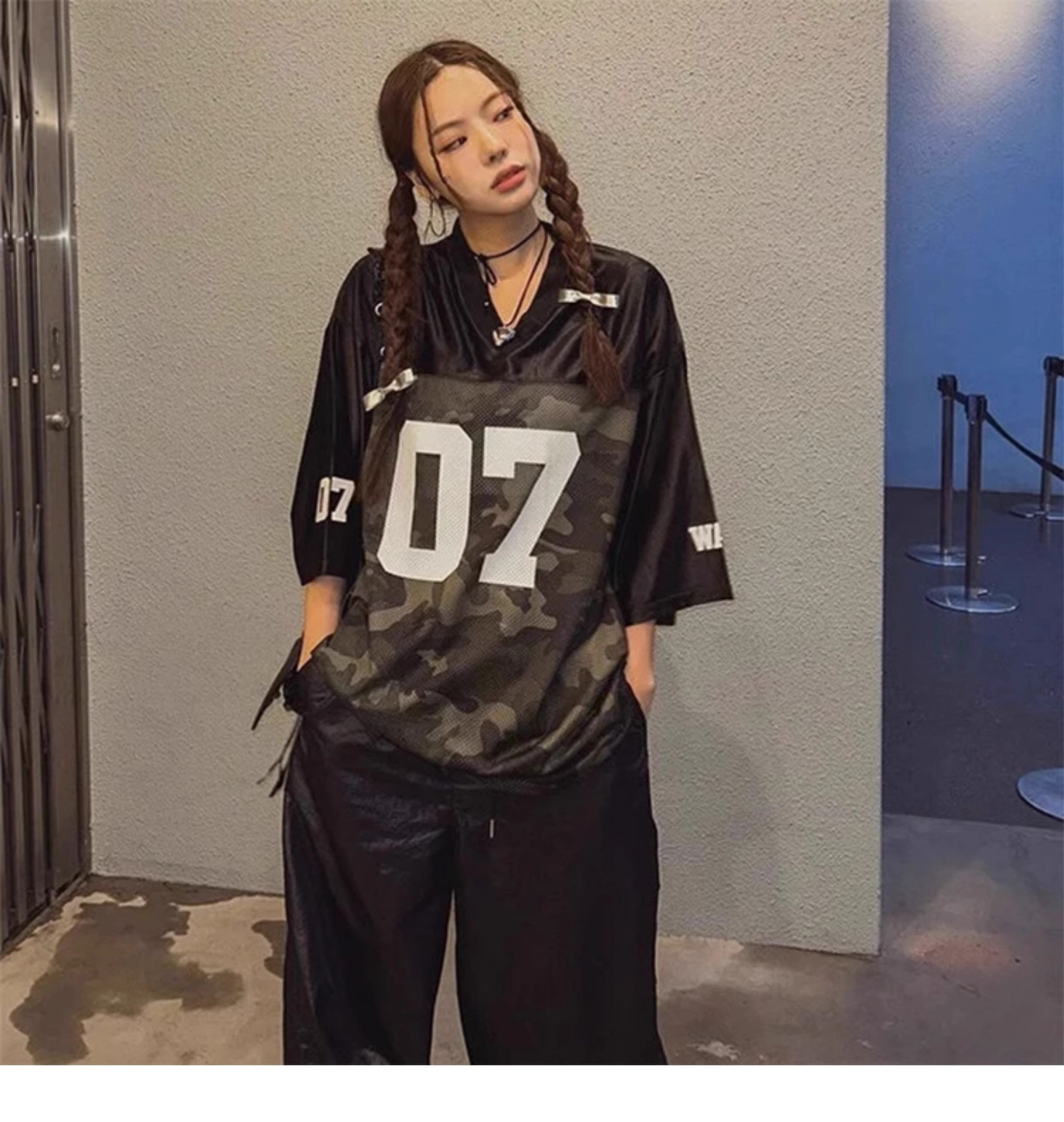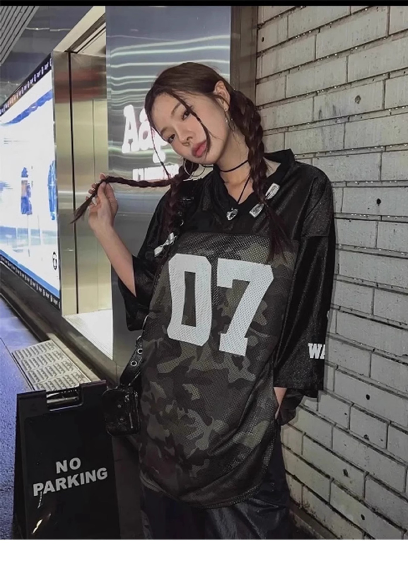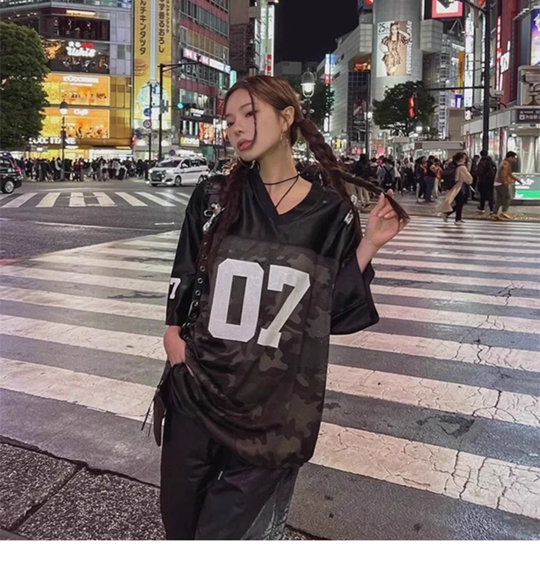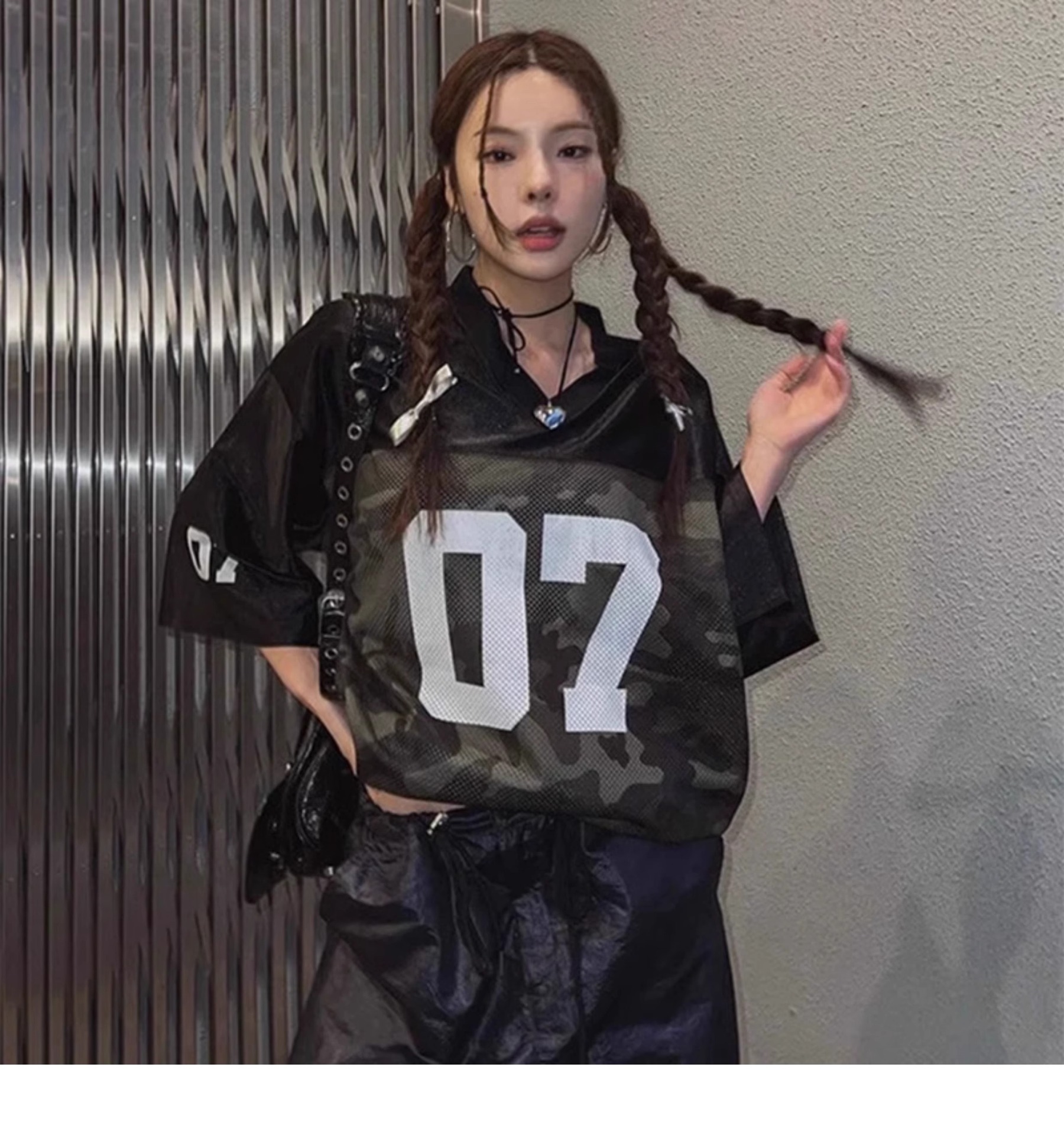 레트로 힙합 저지 루즈 반팔 티셔츠 여성 2024 년 여름 뉴 하이 스트리트 아메리칸 스타일 반소매 탑 트렌디