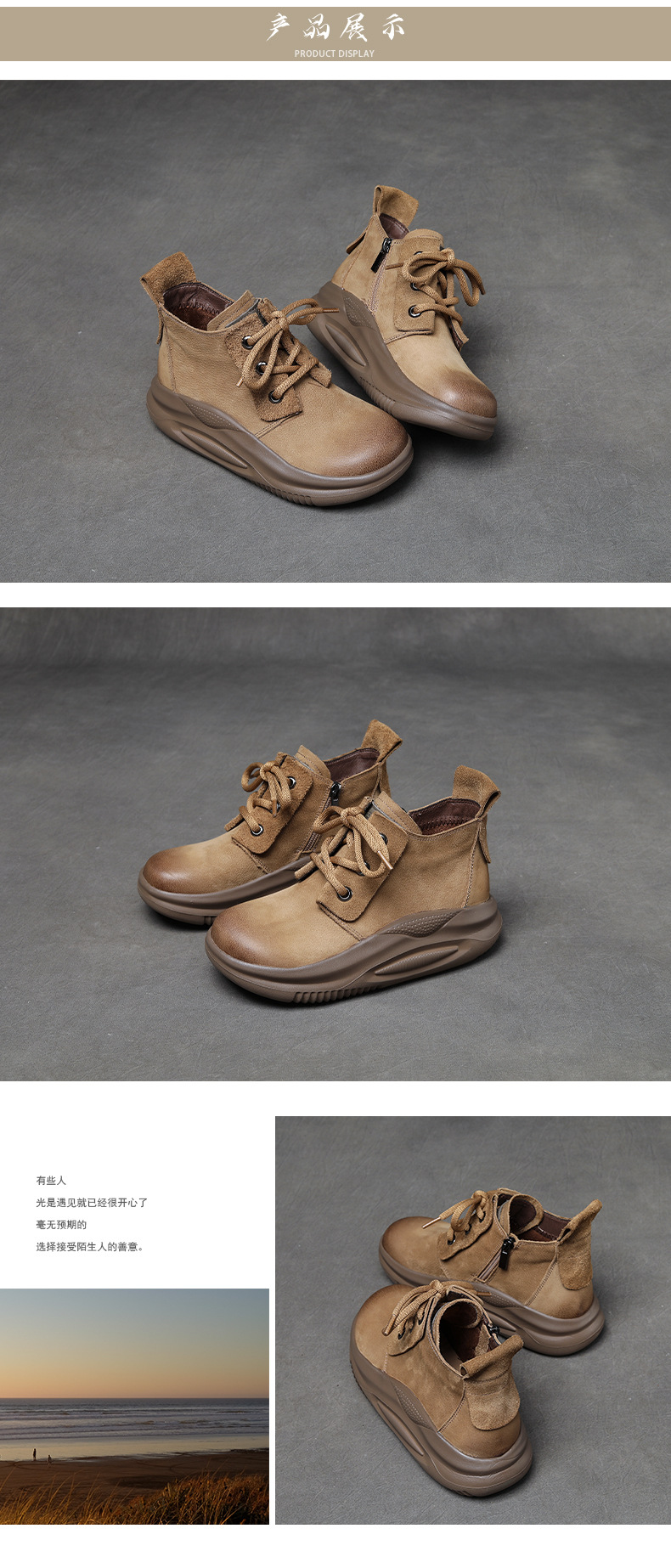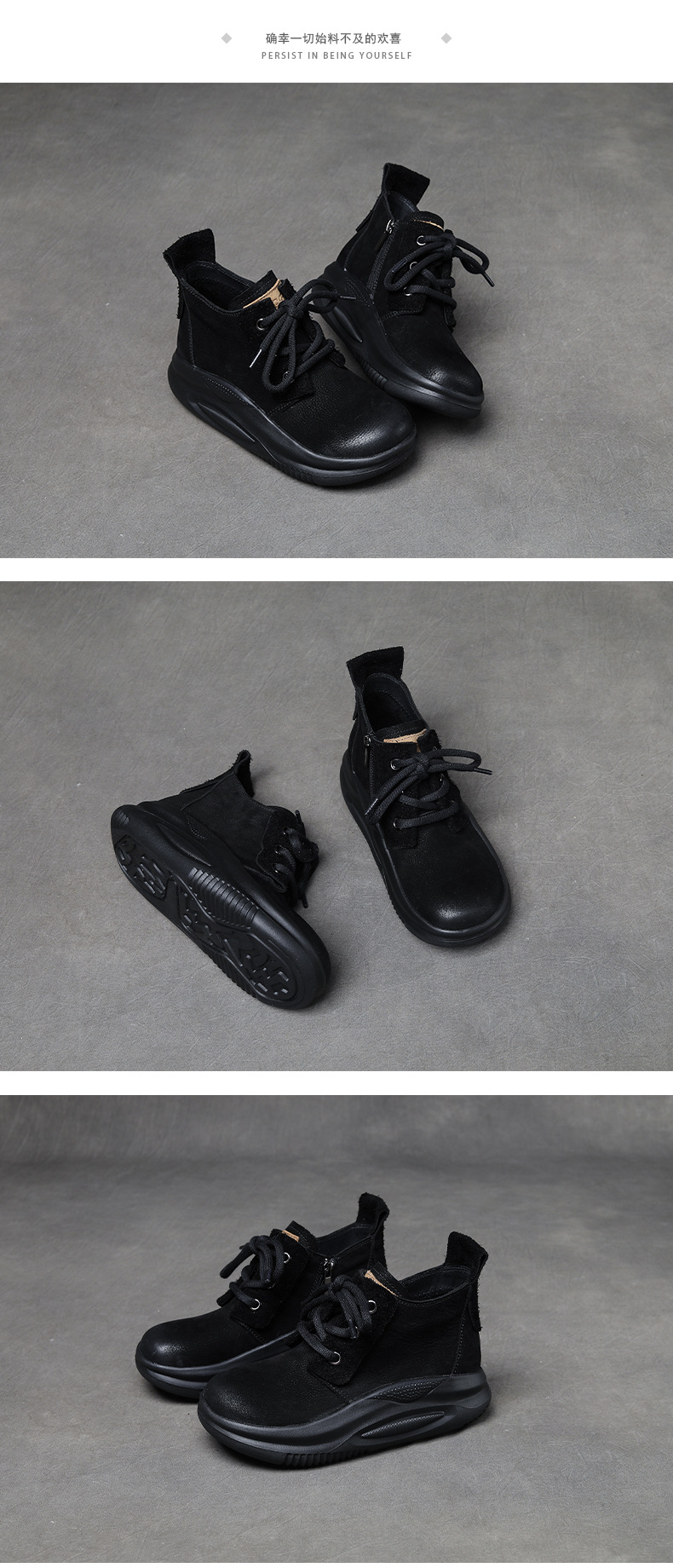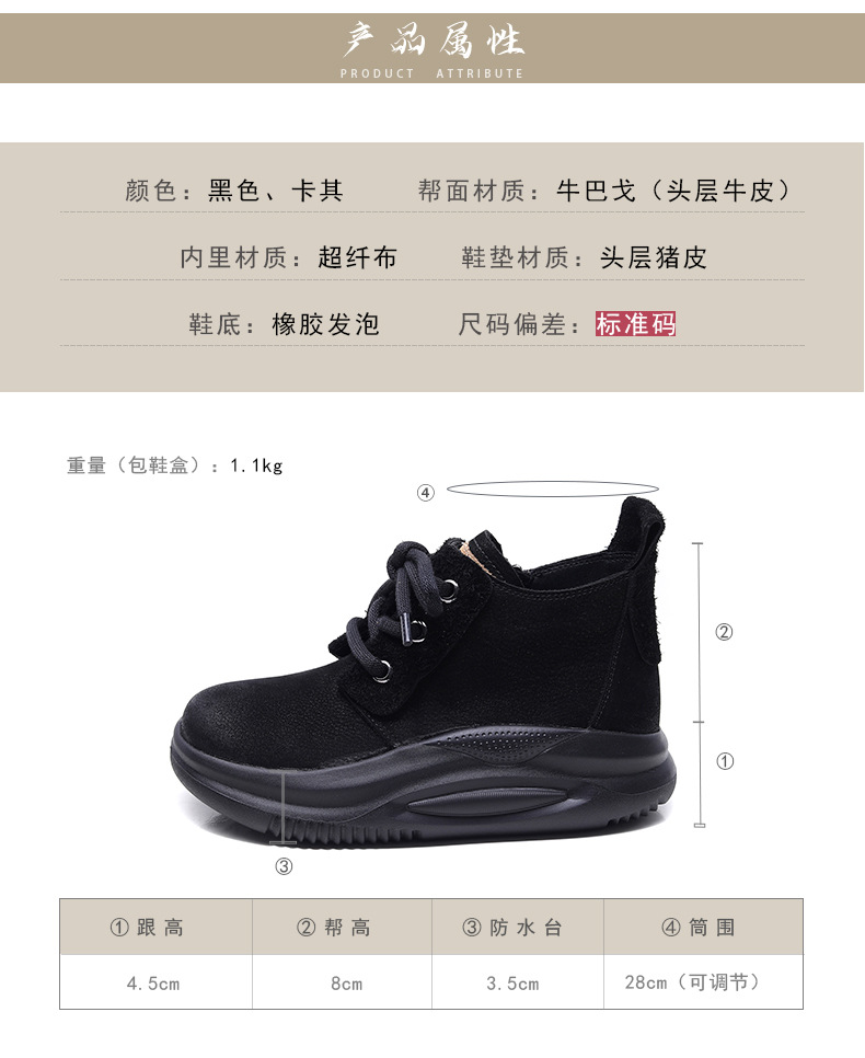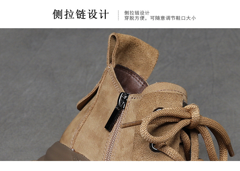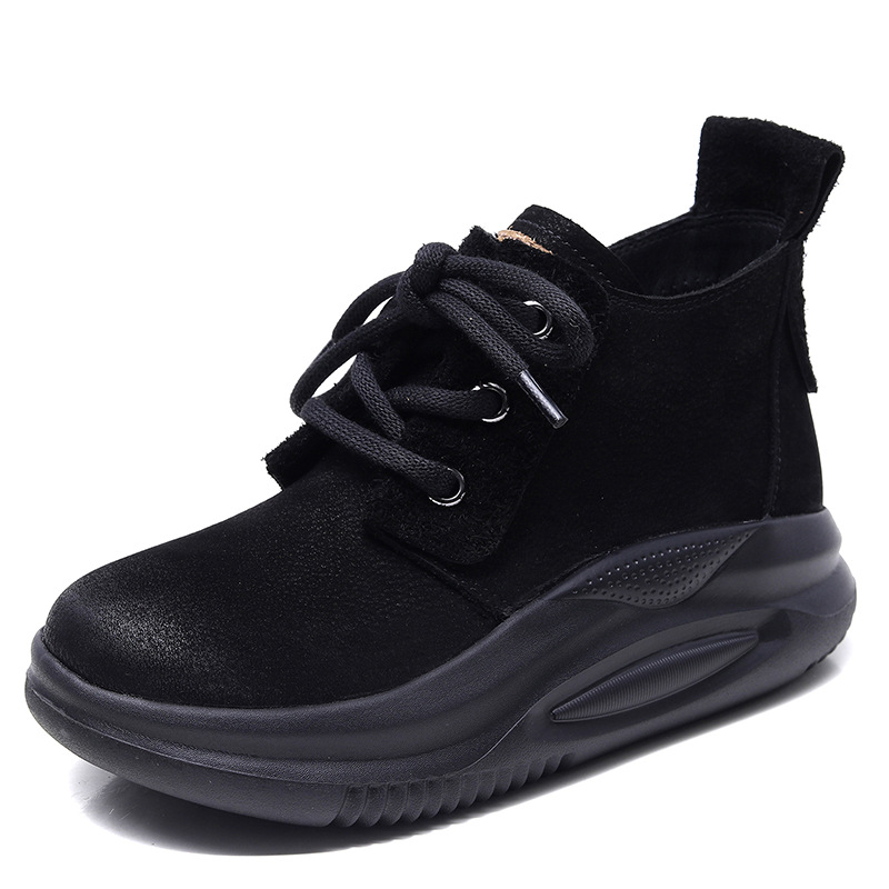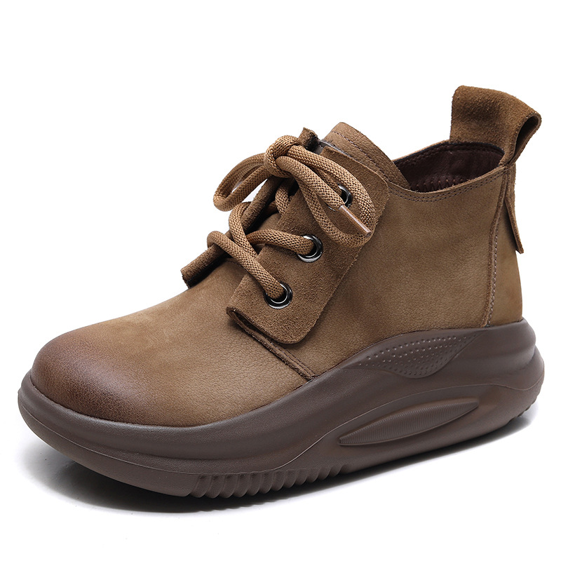 Delphinium 2024 가을과 겨울 새로운 프로스트 헤드 레이어 Niubago 빈티지 캐주얼 하이 탑 두꺼운 하단 레이스 업 라운드 발가락 싱글 레이어 신발