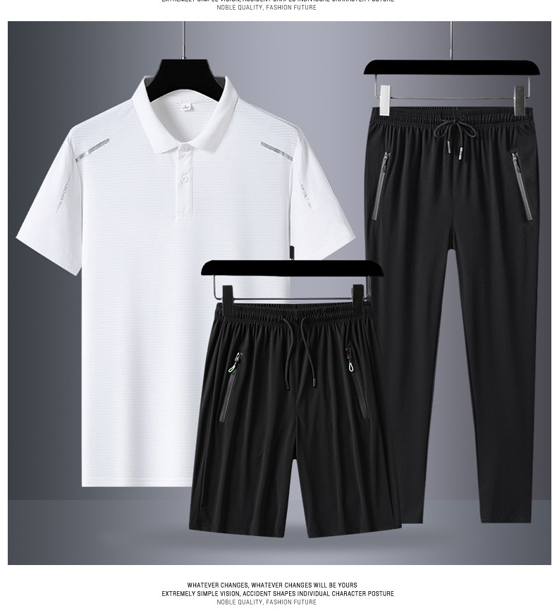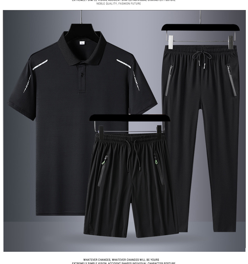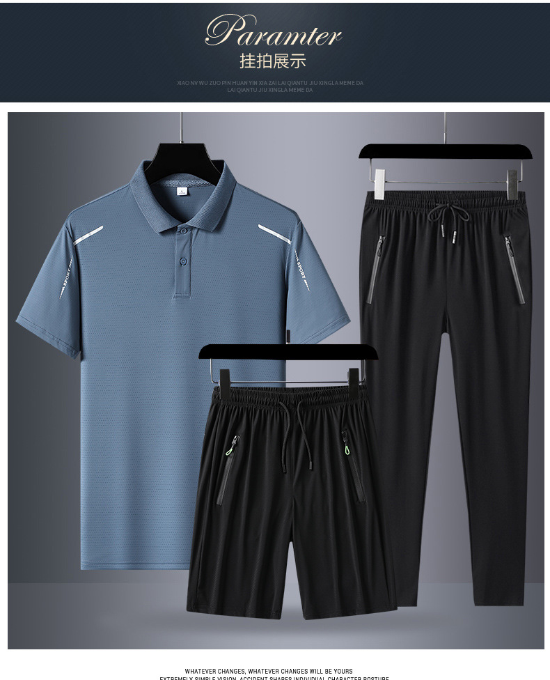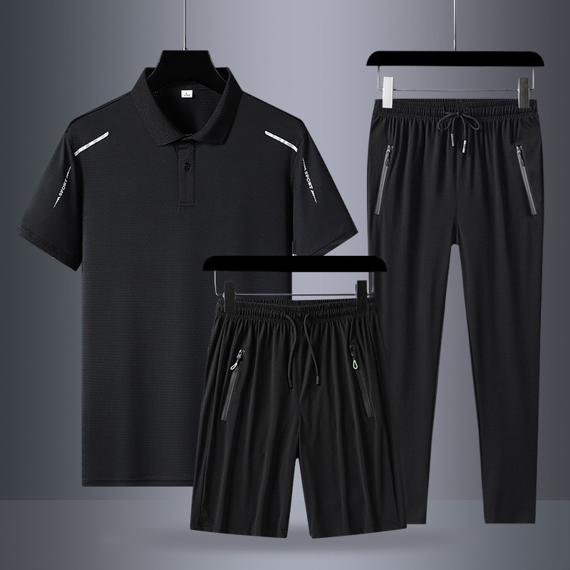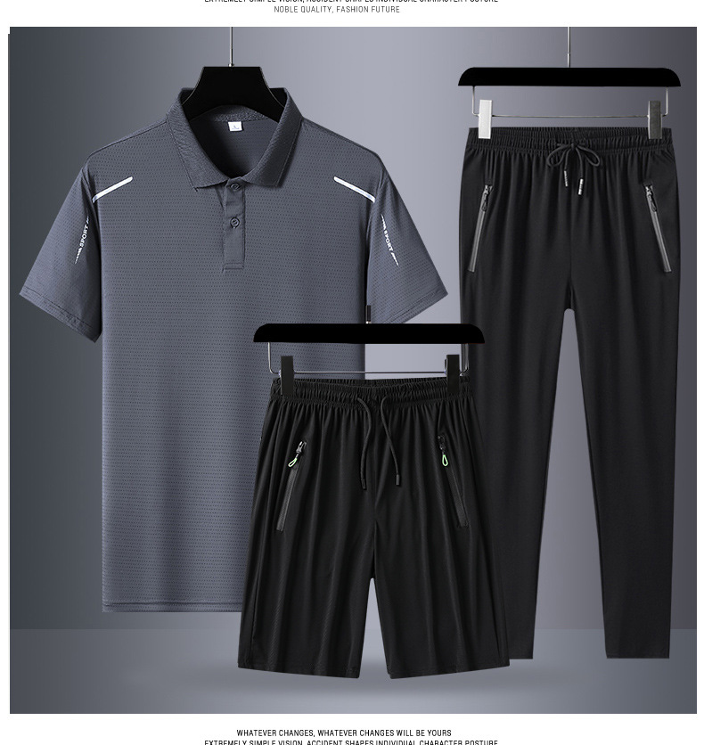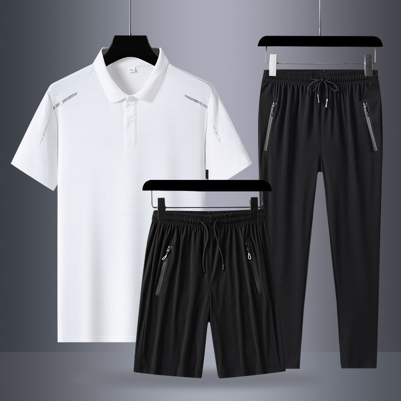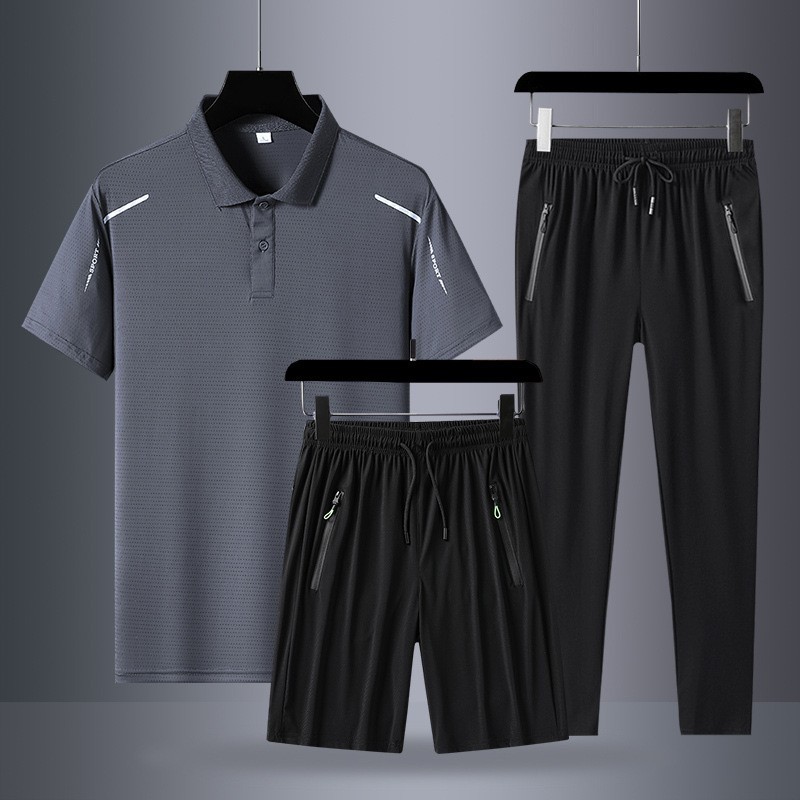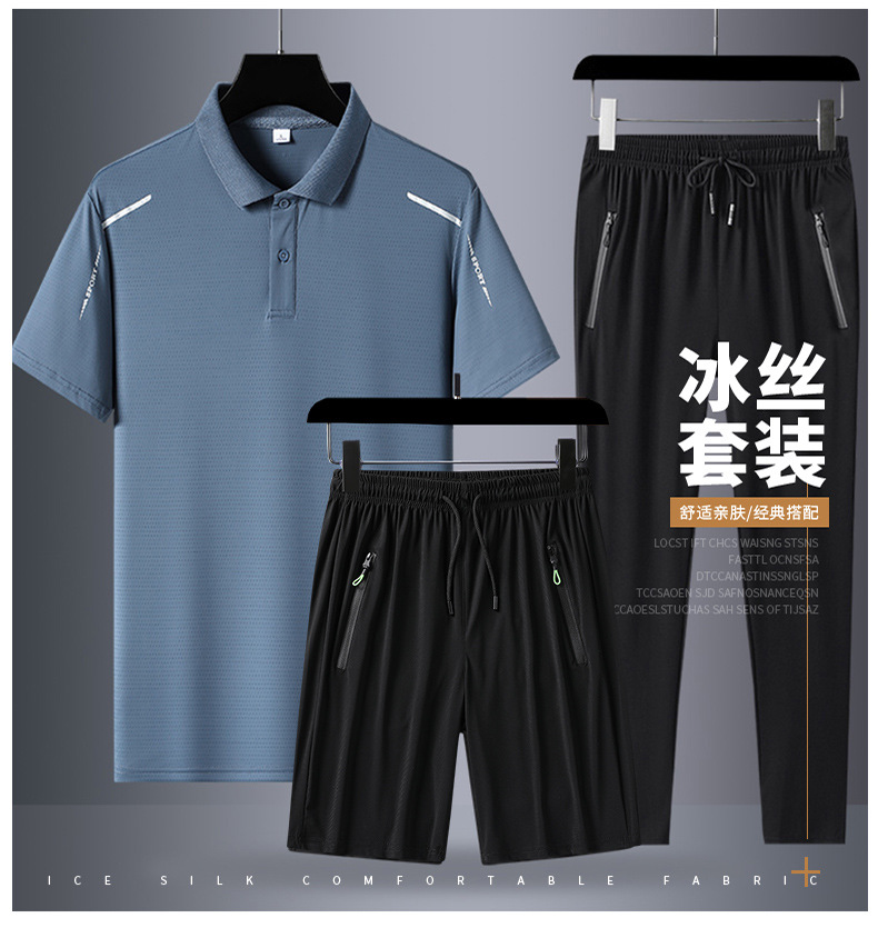 아빠 여름 세트 중년 남성 스포츠 레저 여름 아이스 실크 POLO 셔츠 3 피스 남성 반팔