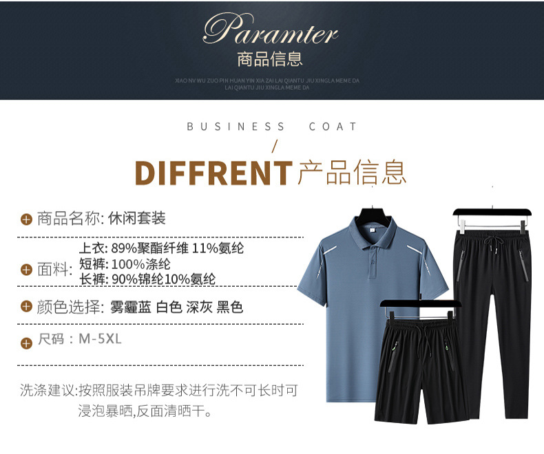 아빠 여름 세트 중년 남성 스포츠 레저 여름 아이스 실크 POLO 셔츠 3 피스 남성 반팔스토어 가기