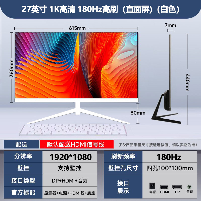• 27인치 1K HD 180Hz 하이 브러시(직면 스크린)(화이트)
