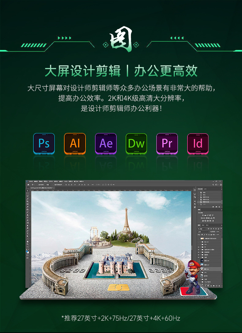 • 27인치 1K HD 75Hz 하이 브러시(직면 스크린)(블랙)