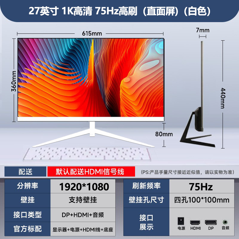 • 27인치 1K HD 75Hz 하이 브러시(직면 스크린)(화이트)