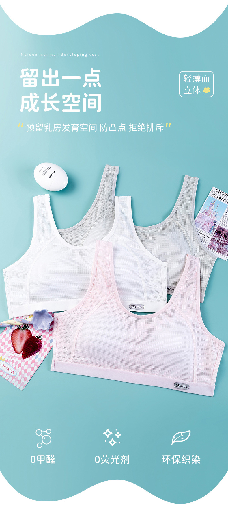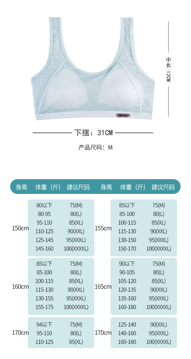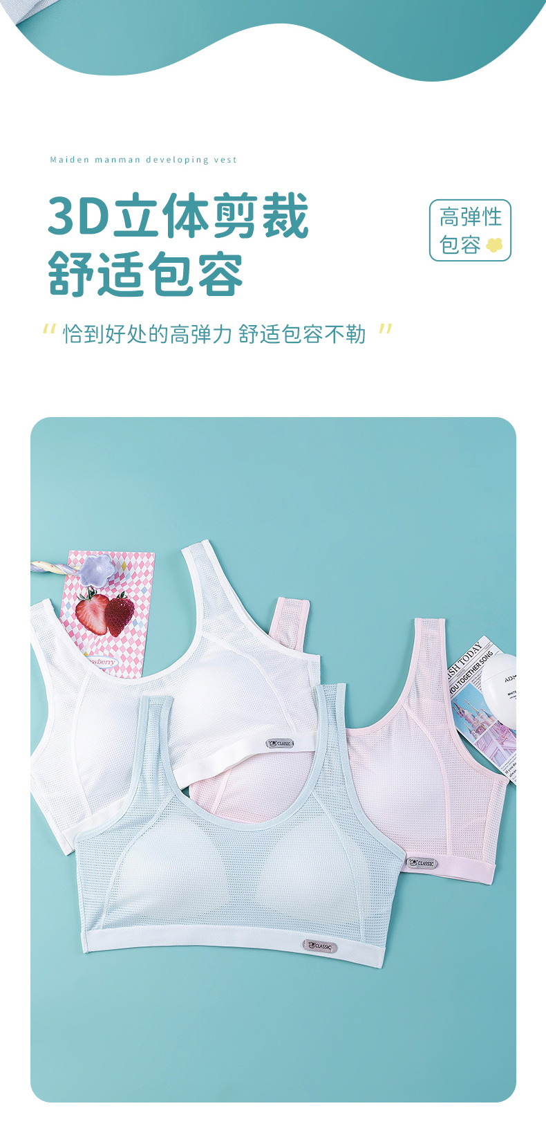 중학생과 여학생을위한 여름 새로운 메쉬 조끼 발달 스포츠 속옷 경량 통기성 추적없는 여자 브라