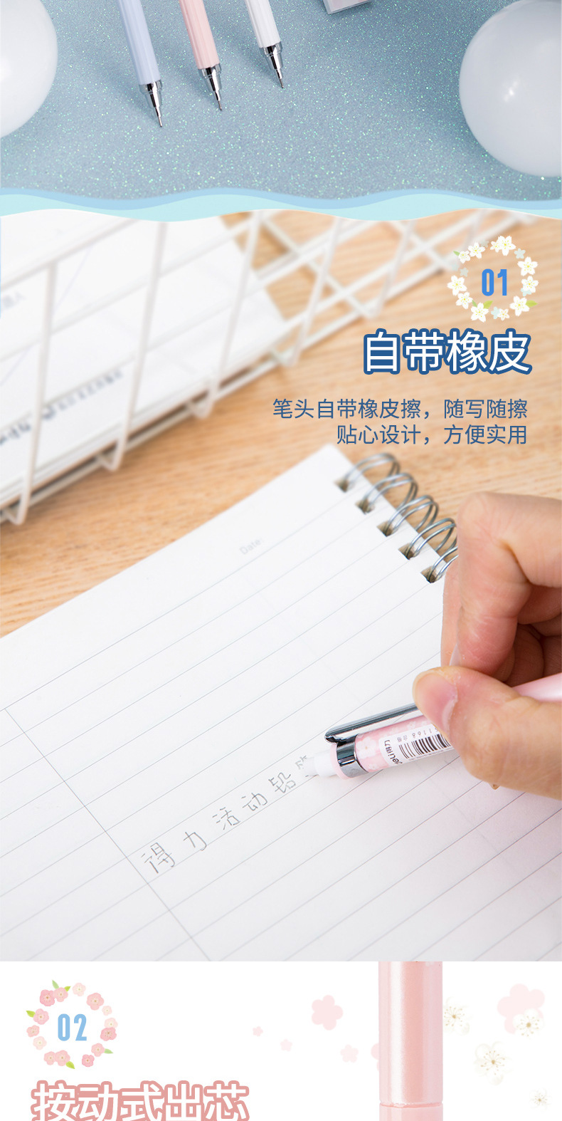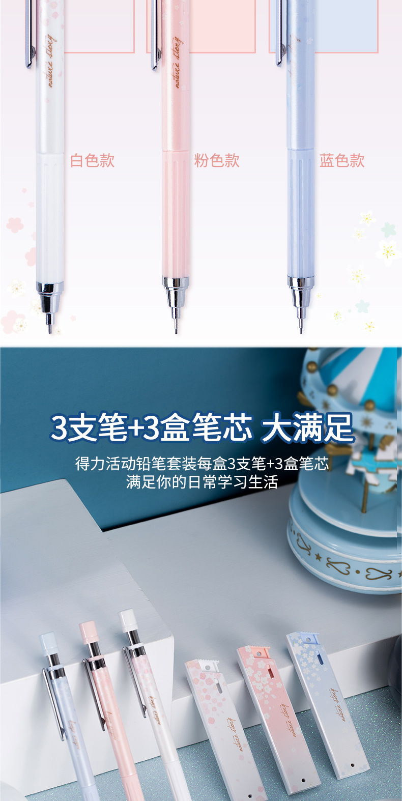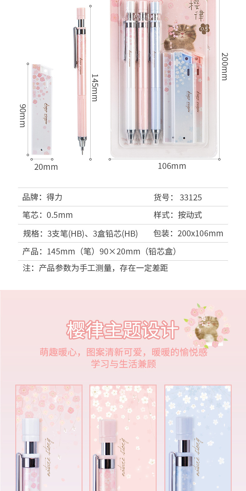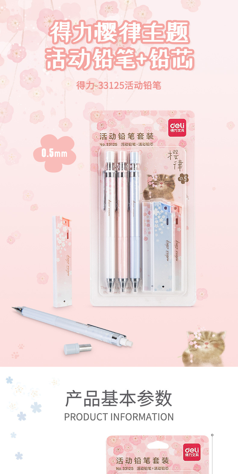 델리 33125 벚꽃 활동 연필 세트 프레스 펜 0.5mm 초등학생의 신선한 만화 활동 연필