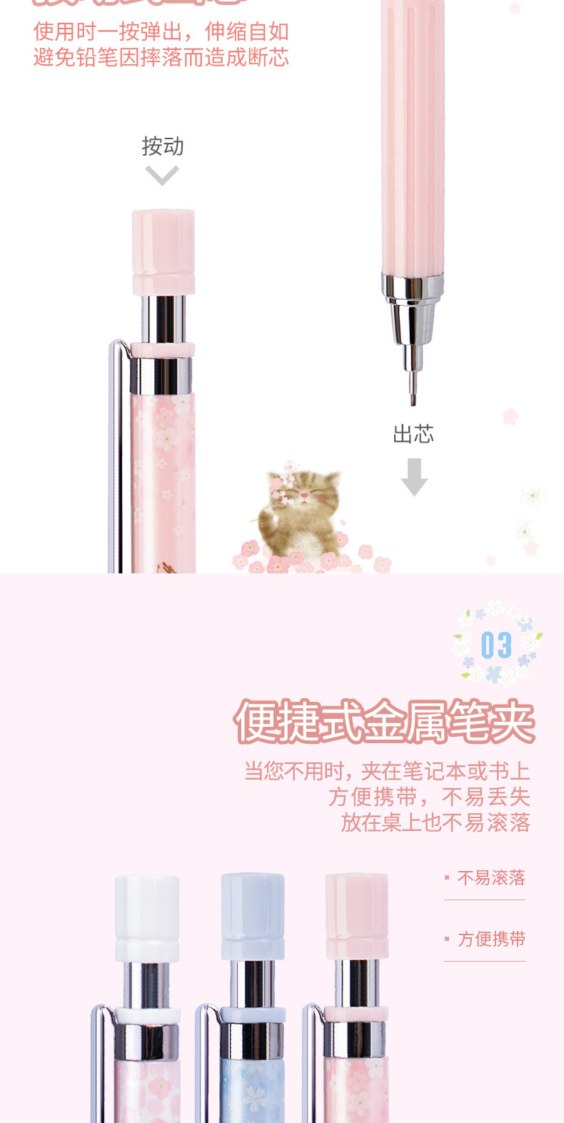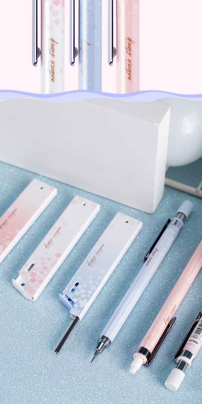 델리 33125 벚꽃 활동 연필 세트 프레스 펜 0.5mm 초등학생의 신선한 만화 활동 연필스토어 가기