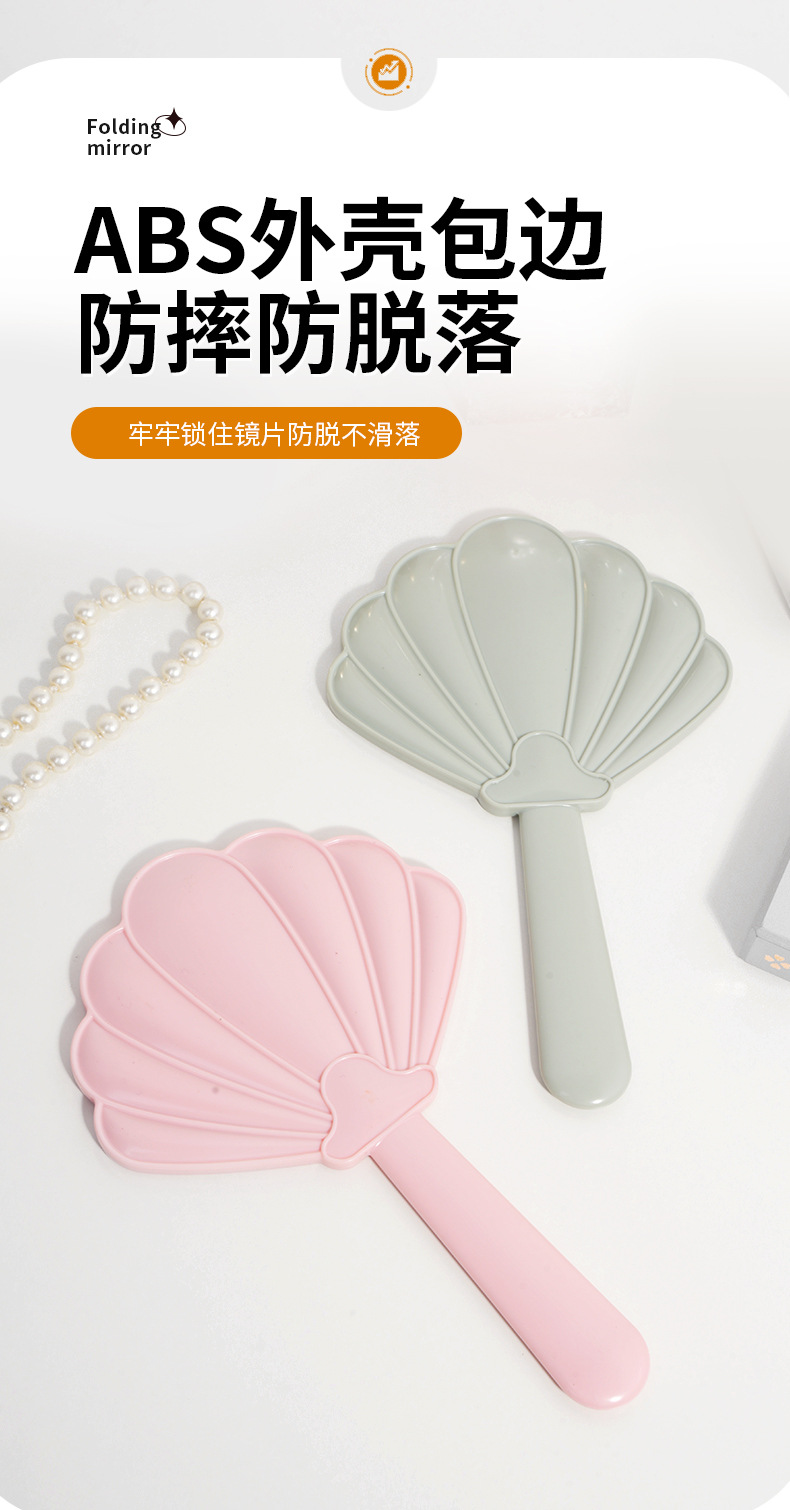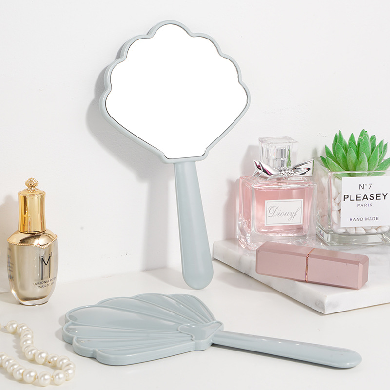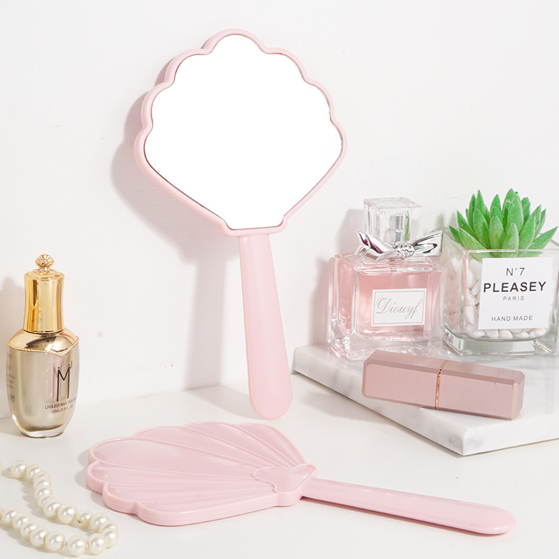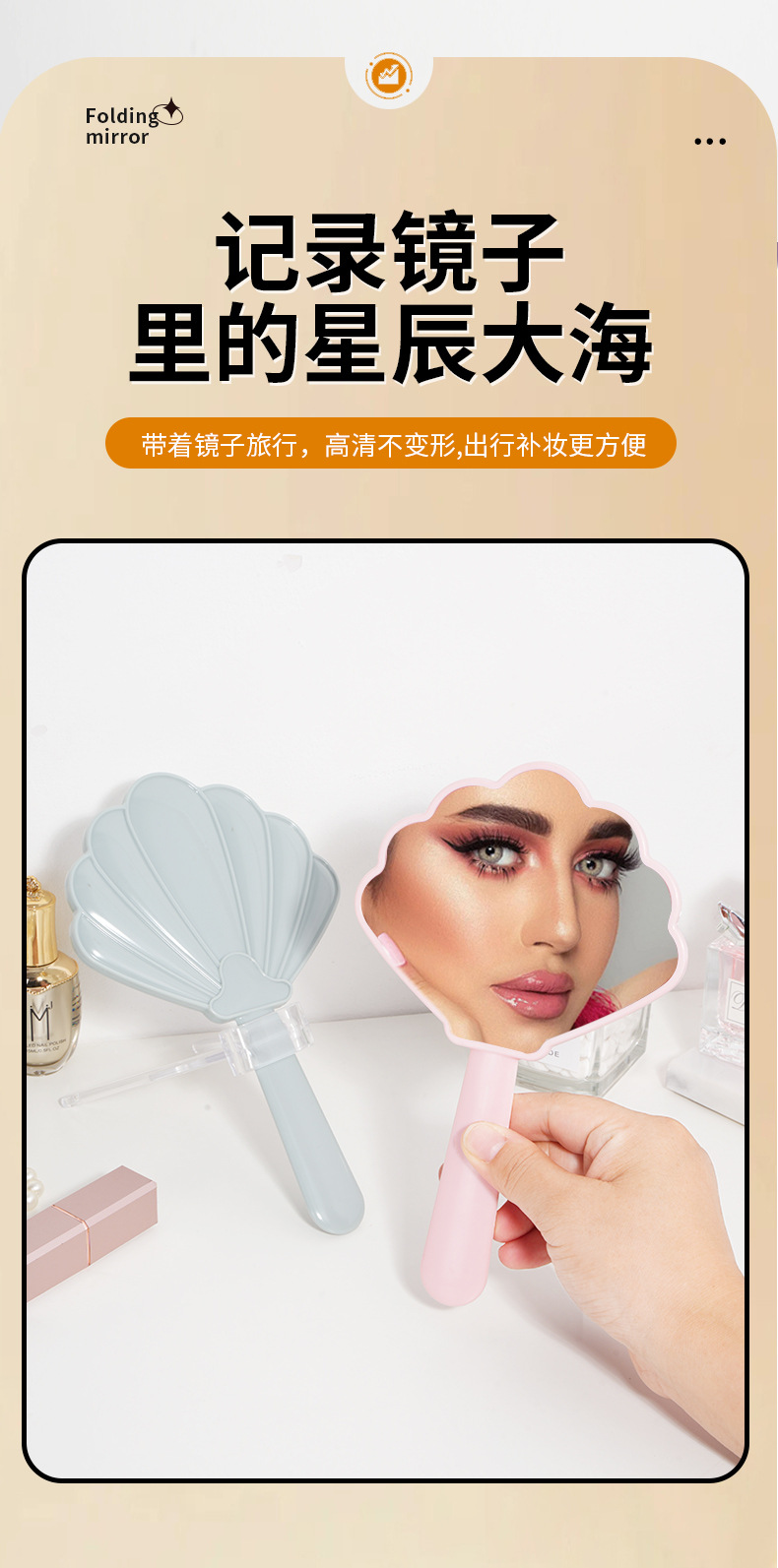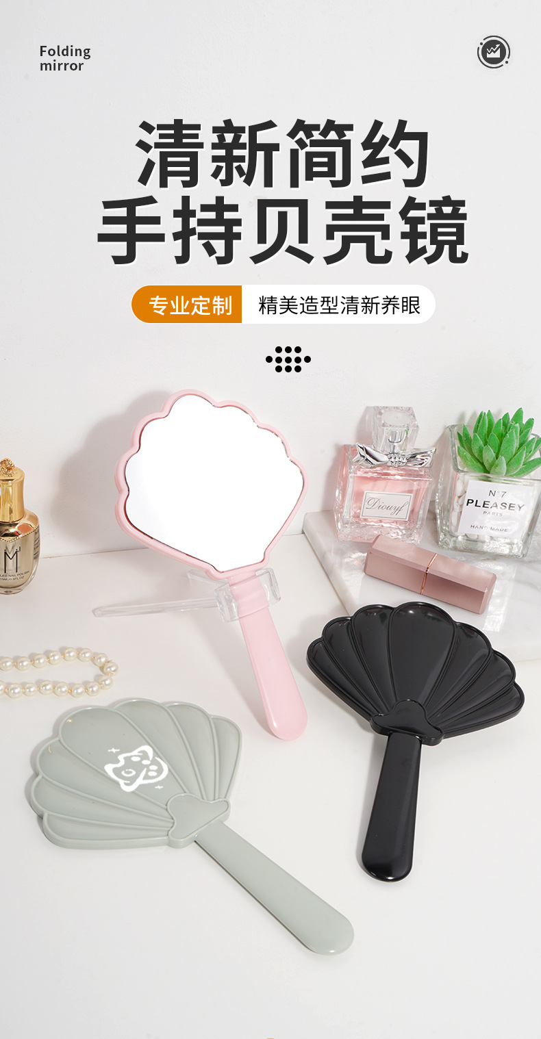 창의적인 휴대용 조개 모양 화장 거울, 플라스틱 고화질 손잡이 거울, 로고 인쇄 가능, 휴대용, 아마존 직구