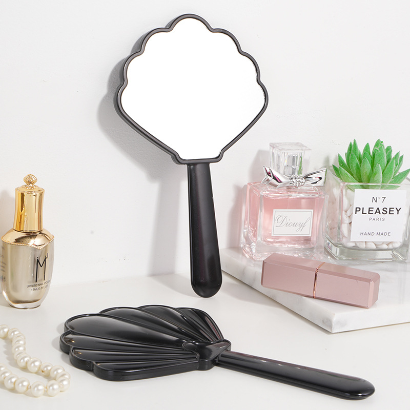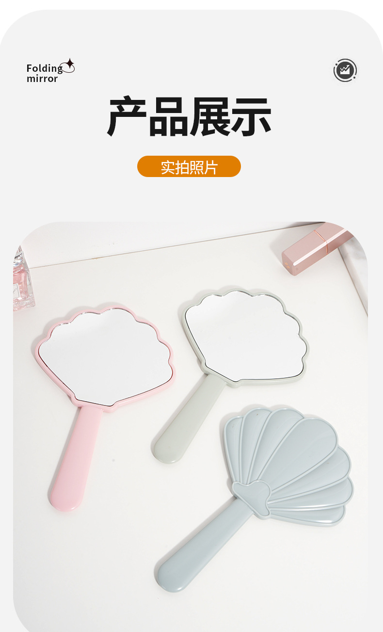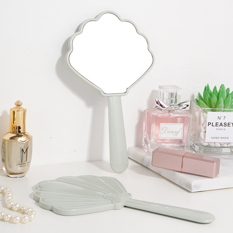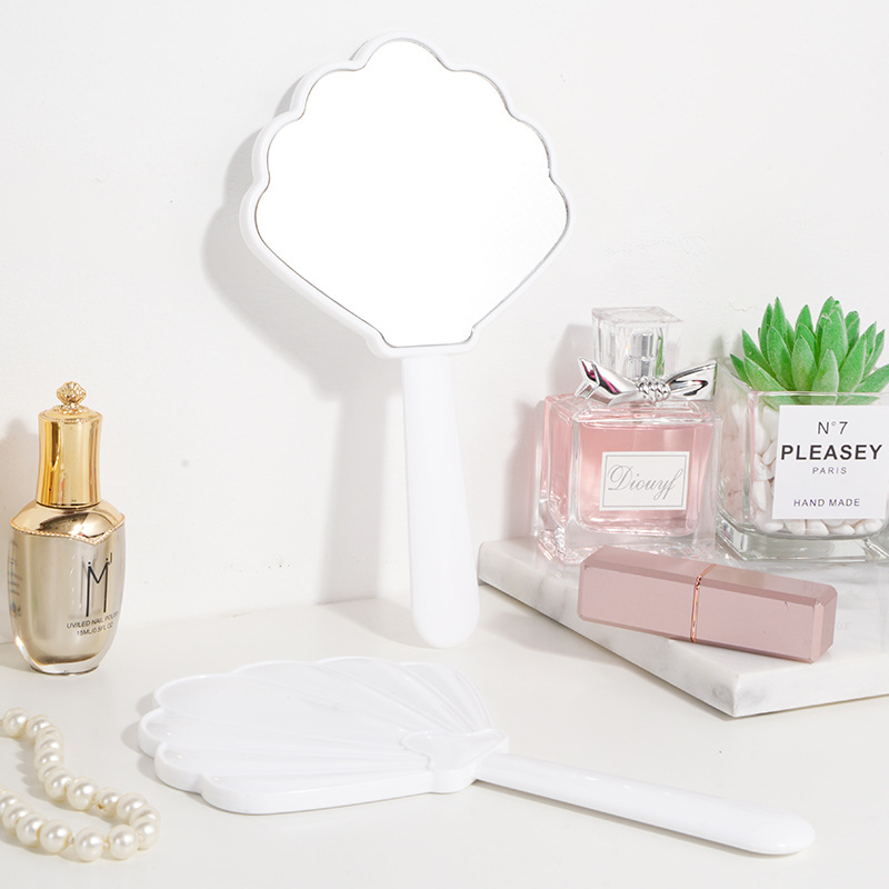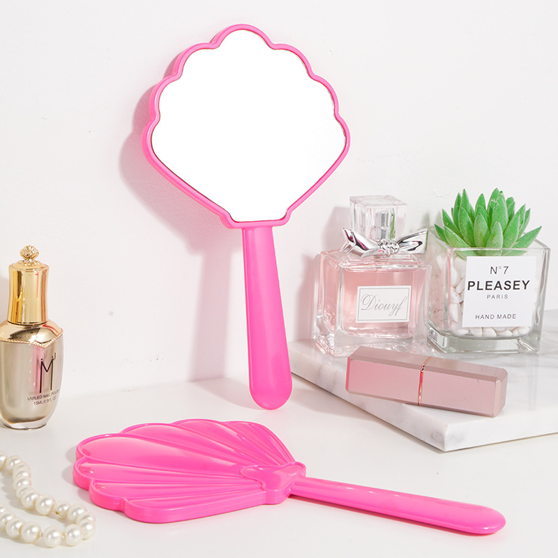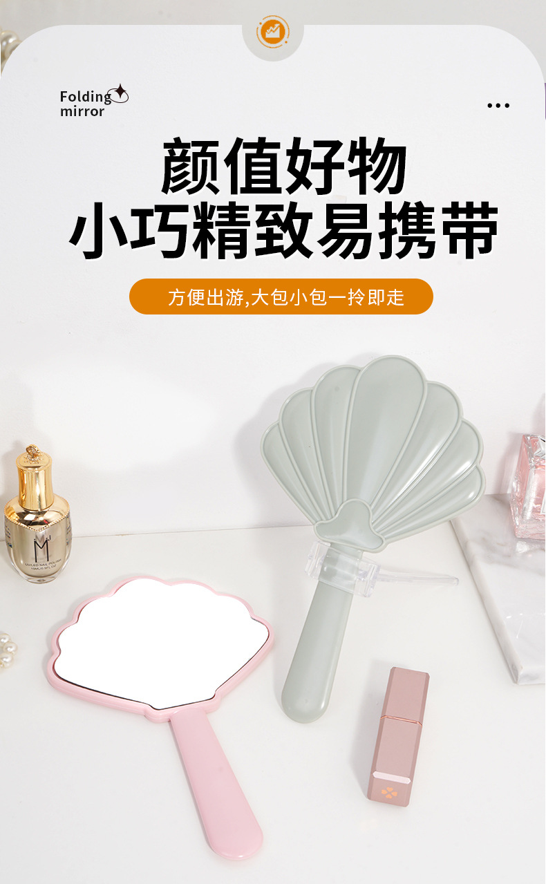 창의적인 휴대용 조개 모양 화장 거울, 플라스틱 고화질 손잡이 거울, 로고 인쇄 가능, 휴대용, 아마존 직구
