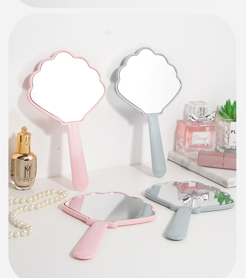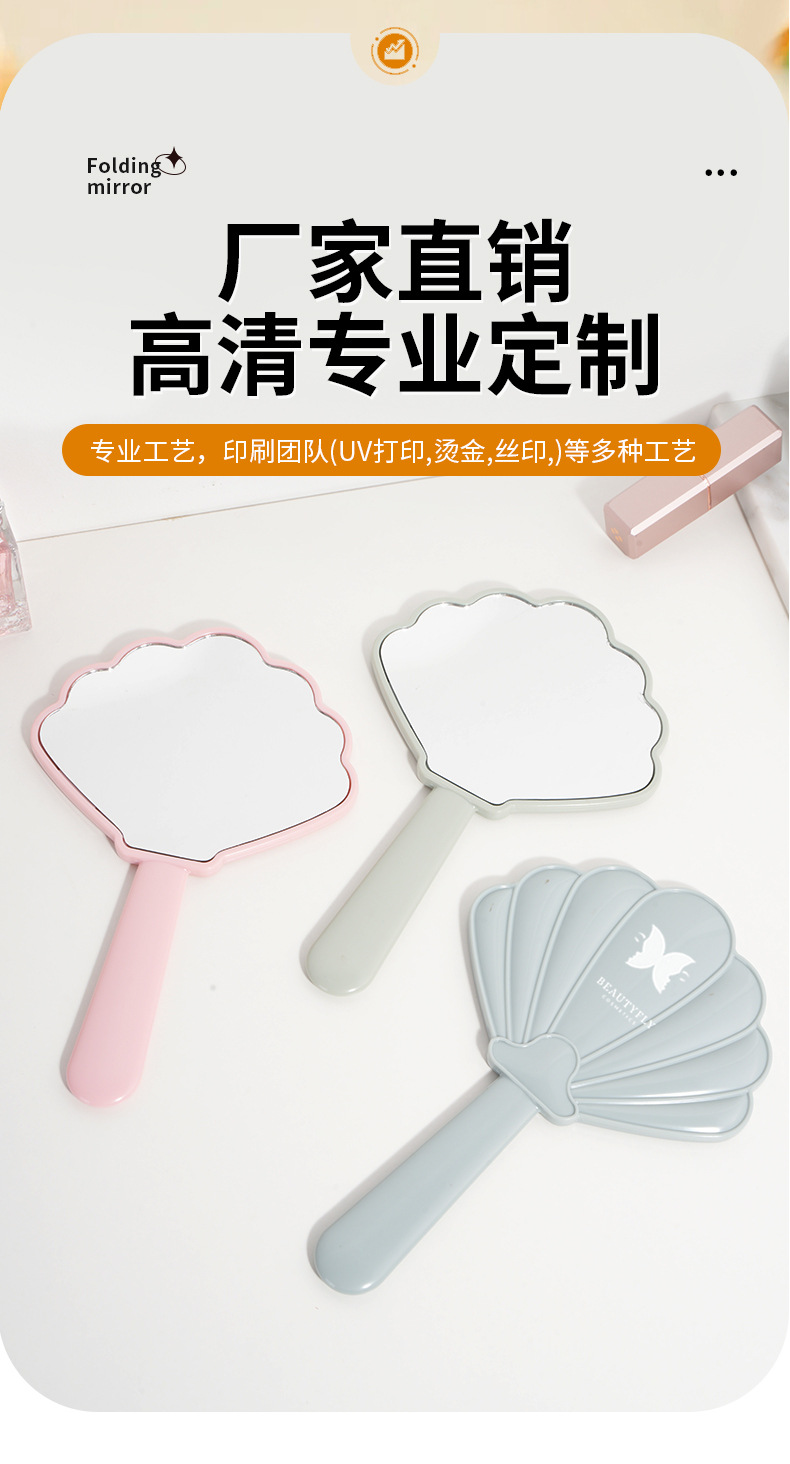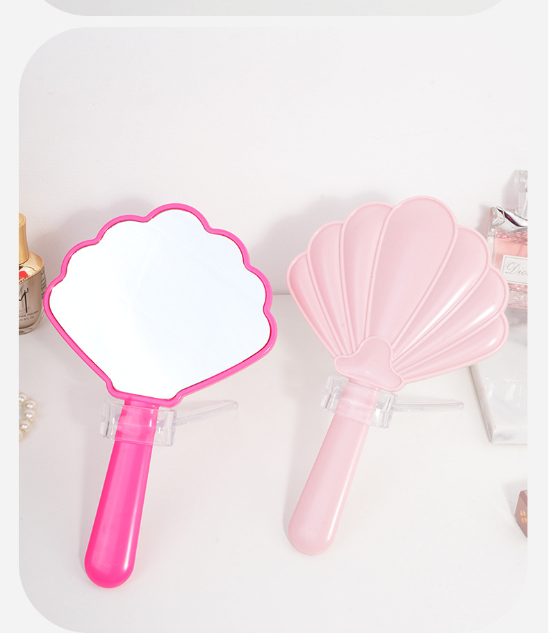 창의적인 휴대용 조개 모양 화장 거울, 플라스틱 고화질 손잡이 거울, 로고 인쇄 가능, 휴대용, 아마존 직구스토어 가기