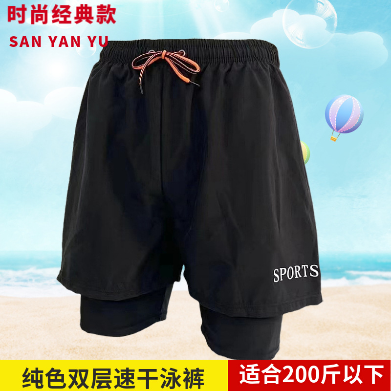 당황하지 않는 이중층 수영 트렁크 새로운 단색 성인 남성 수영 트렁크 편안한 복서 플러스 사이즈 남성 수영 트렁크