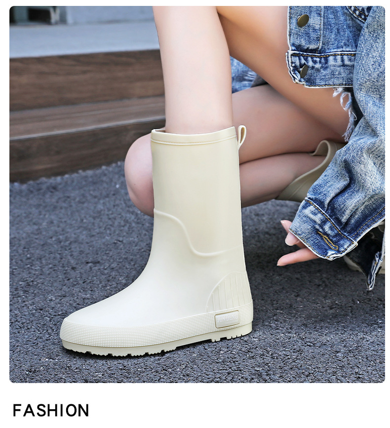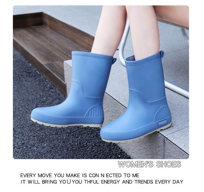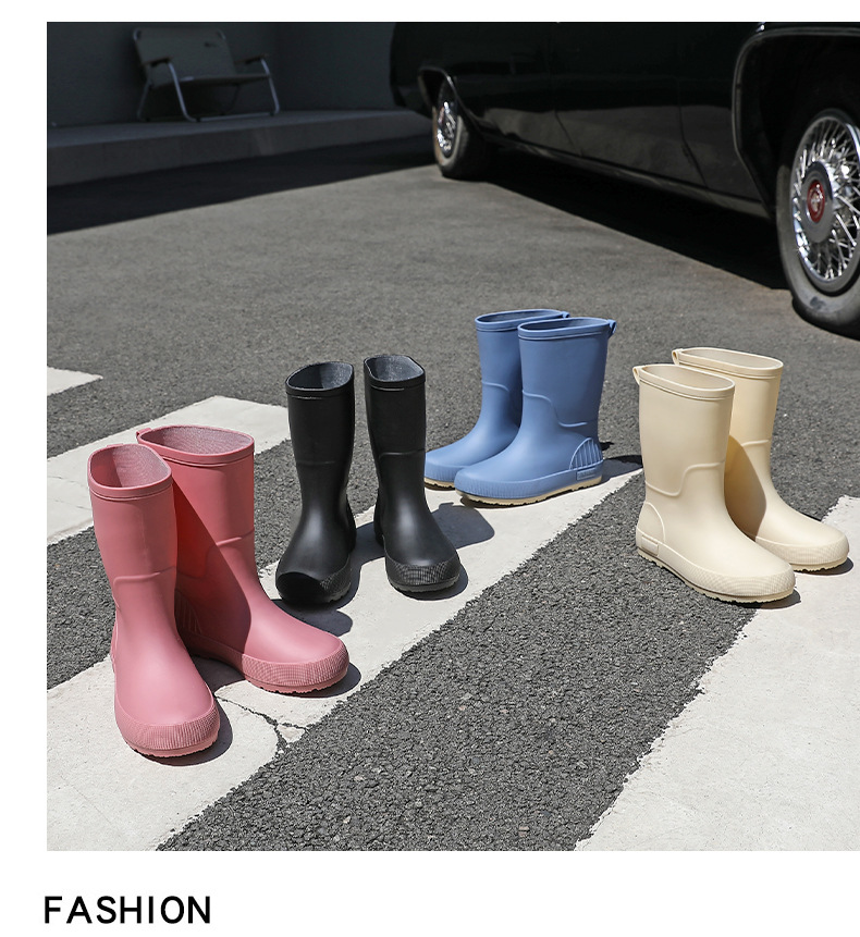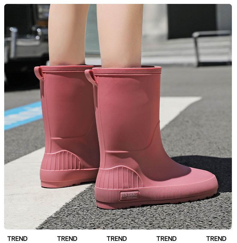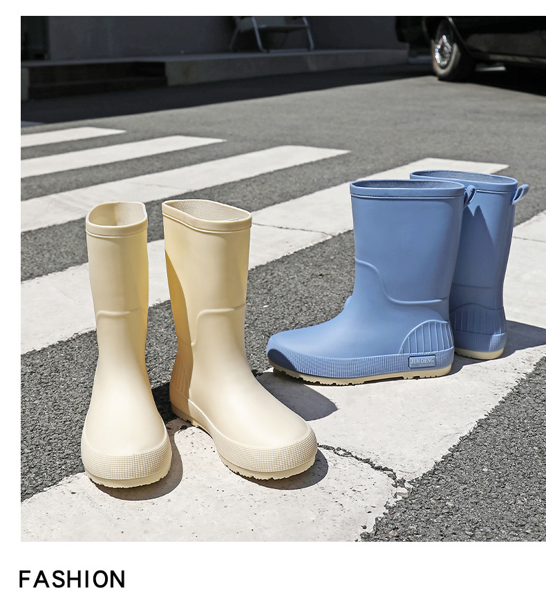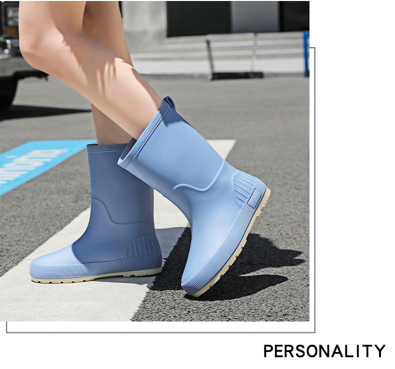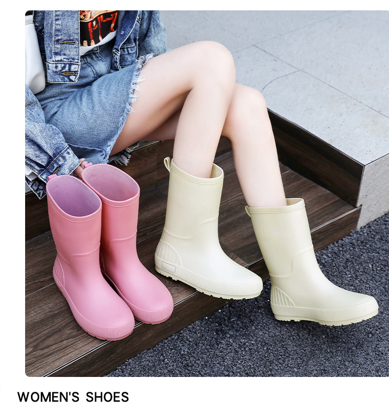 한국 스타일 패션 중간 길이 여성용 레인부츠 다용도 밝은 색상 미끄럼 방지 방수 두꺼운 사계절 작업용 외출용 레인부츠 안감 추가