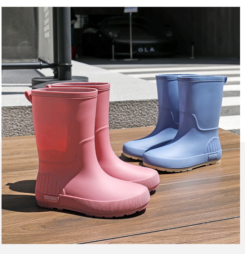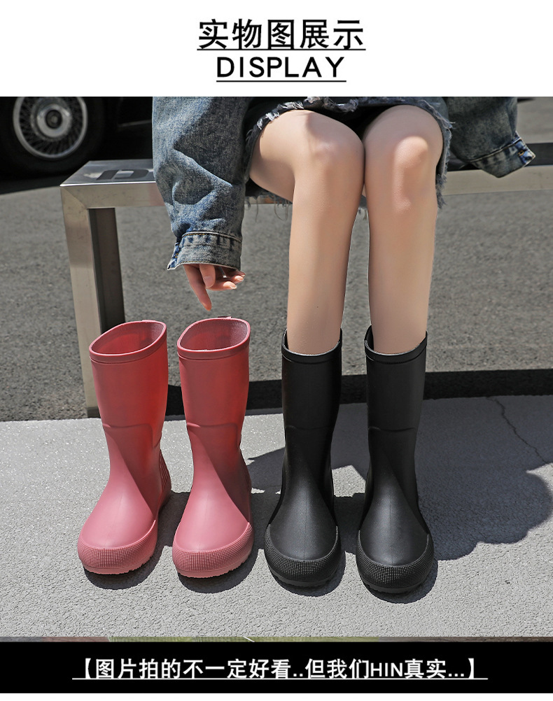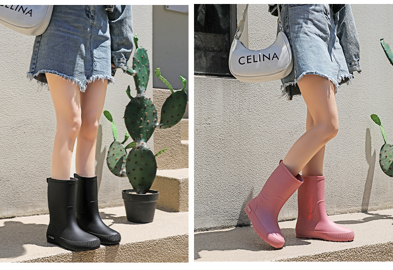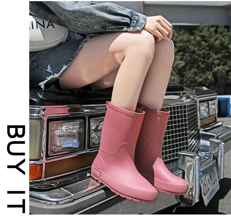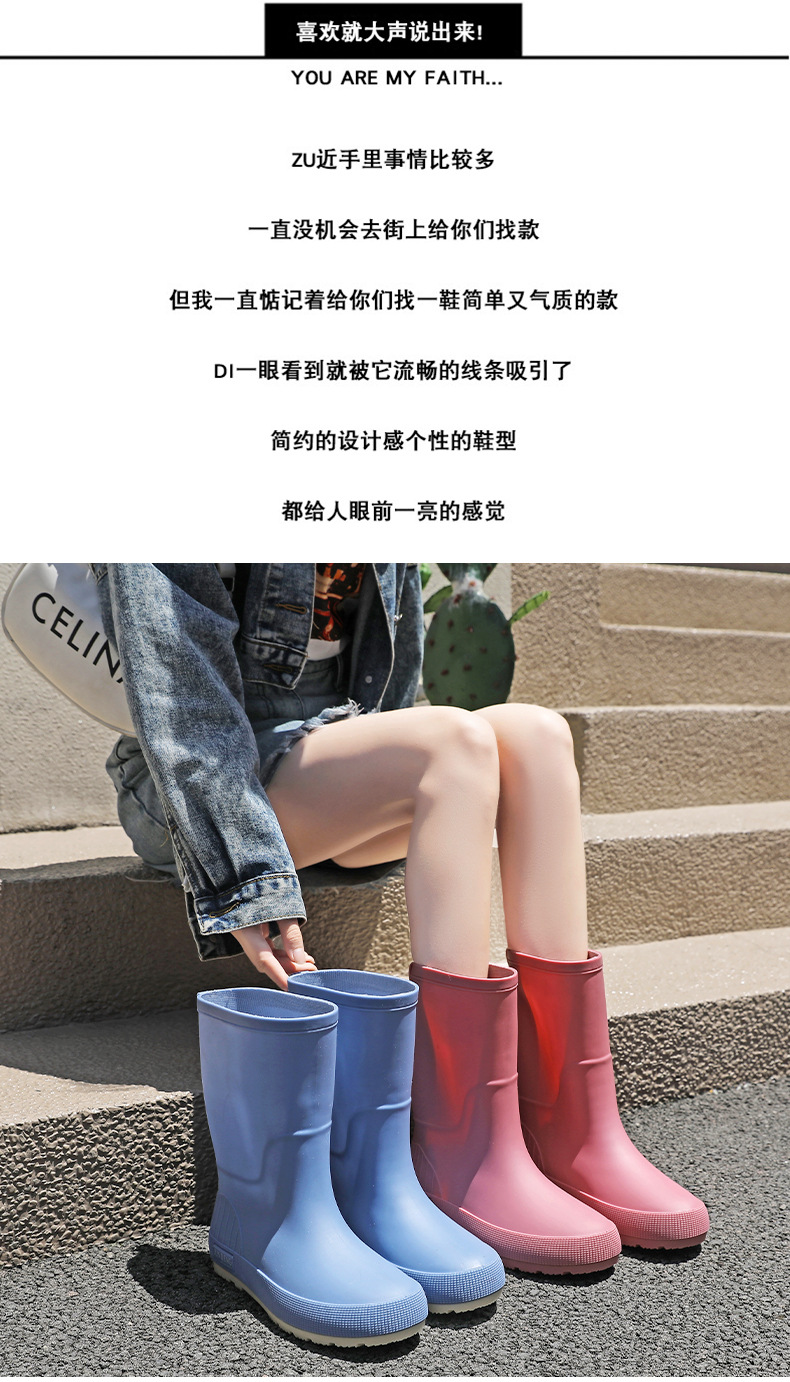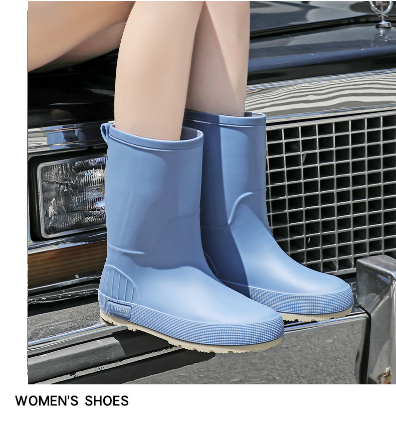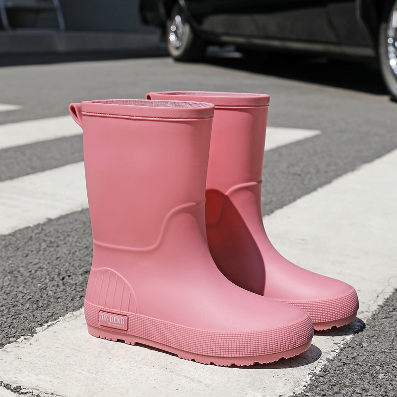 한국 스타일 패션 중간 길이 여성용 레인부츠 다용도 밝은 색상 미끄럼 방지 방수 두꺼운 사계절 작업용 외출용 레인부츠 안감 추가