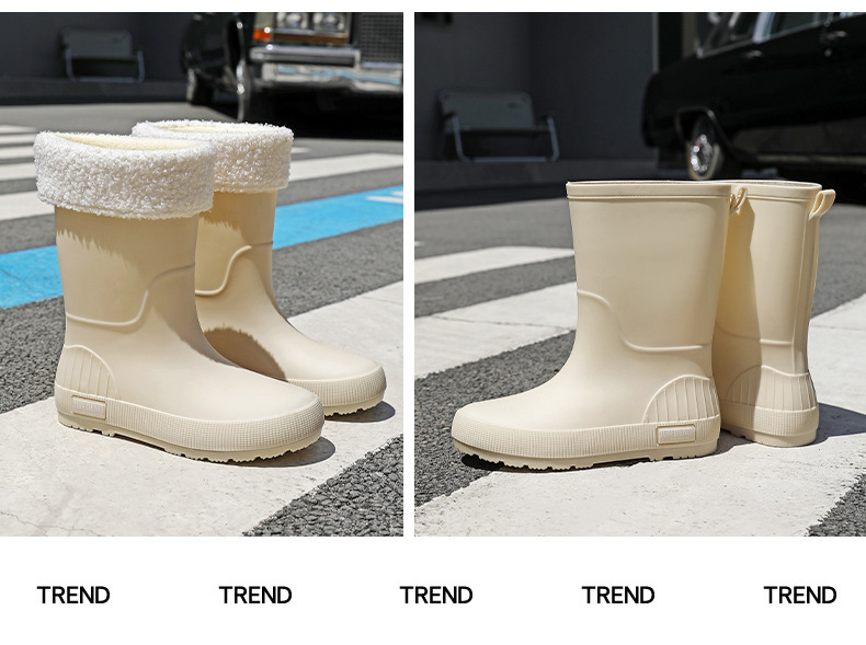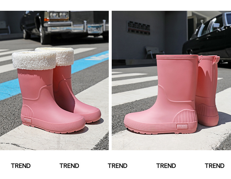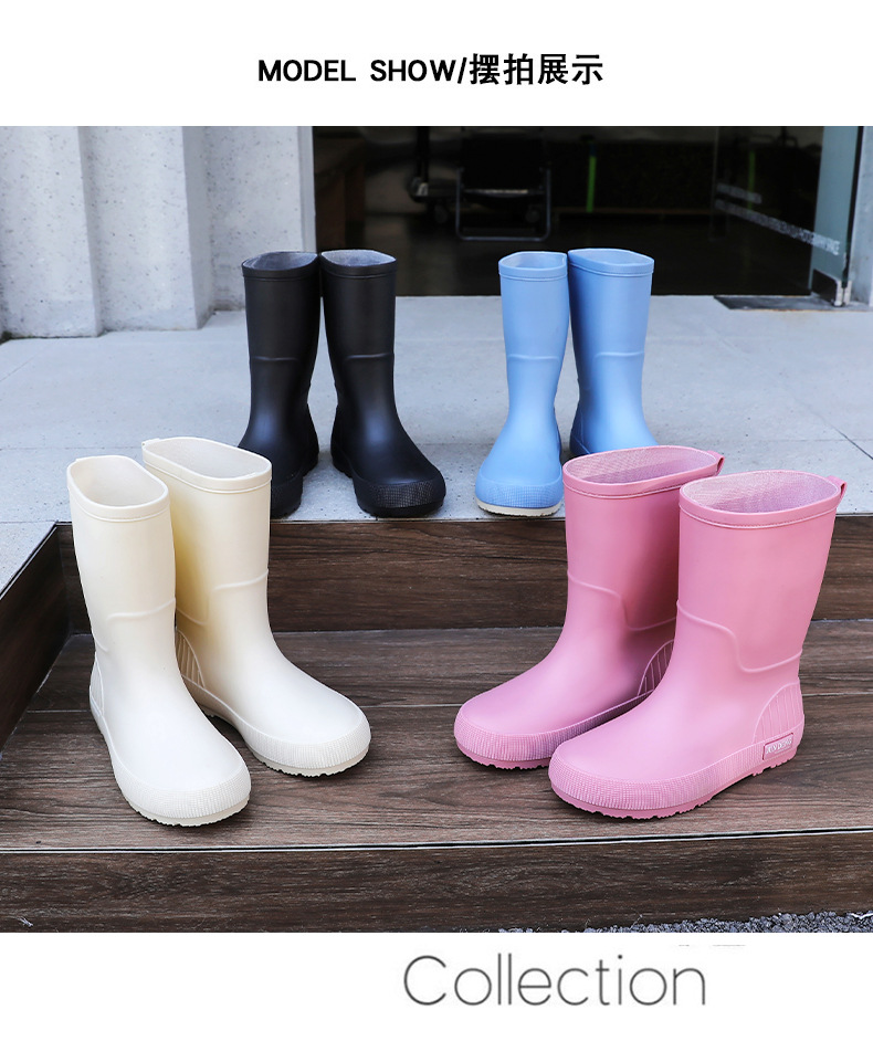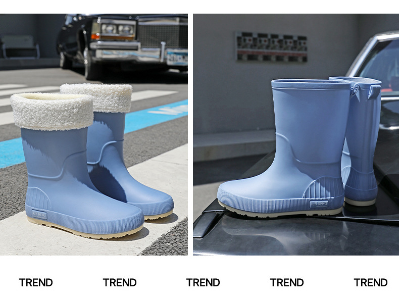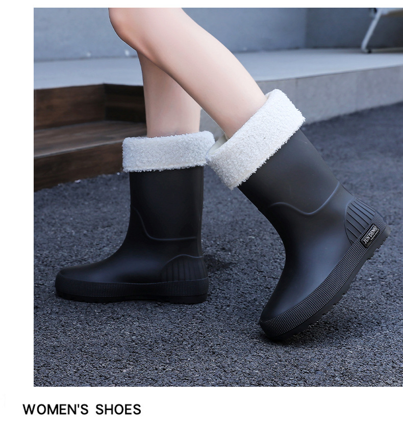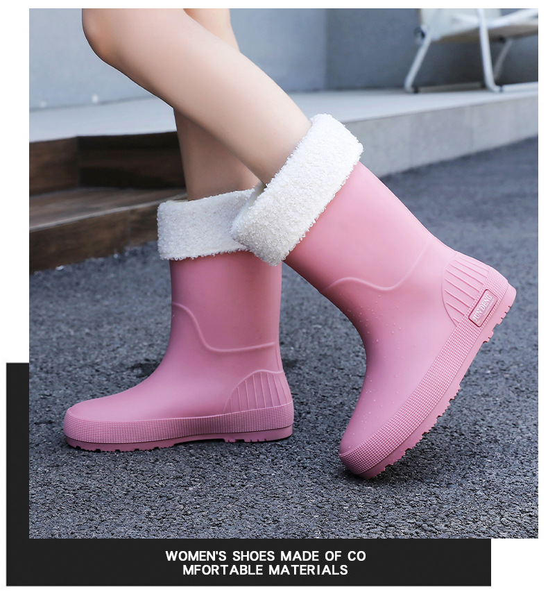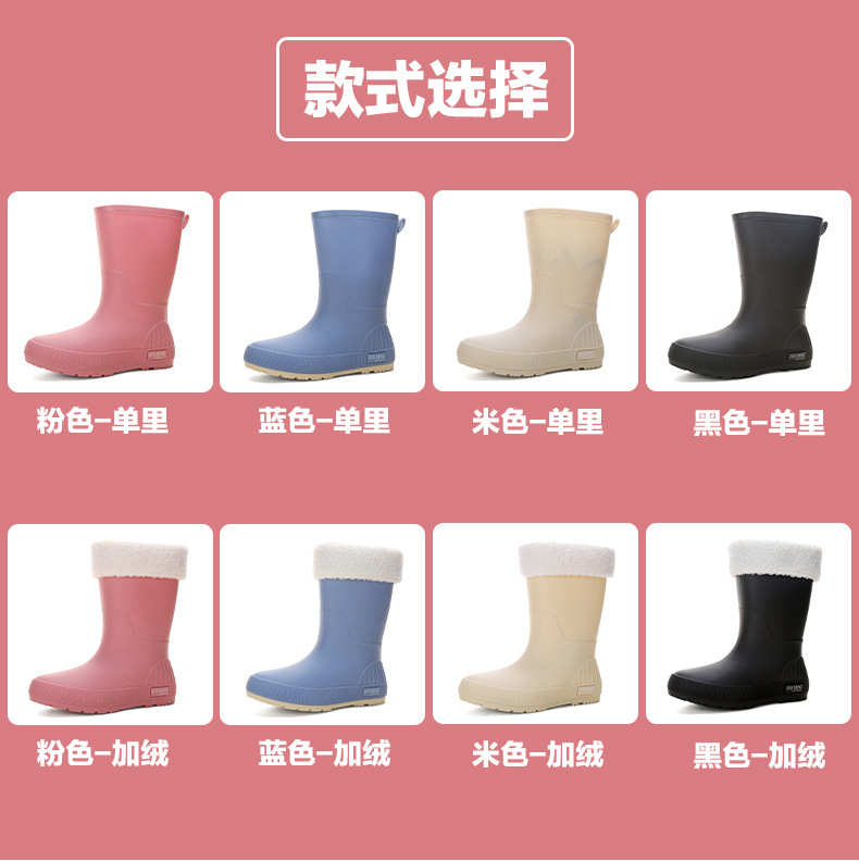 한국 스타일 패션 중간 길이 여성용 레인부츠 다용도 밝은 색상 미끄럼 방지 방수 두꺼운 사계절 작업용 외출용 레인부츠 안감 추가스토어 가기