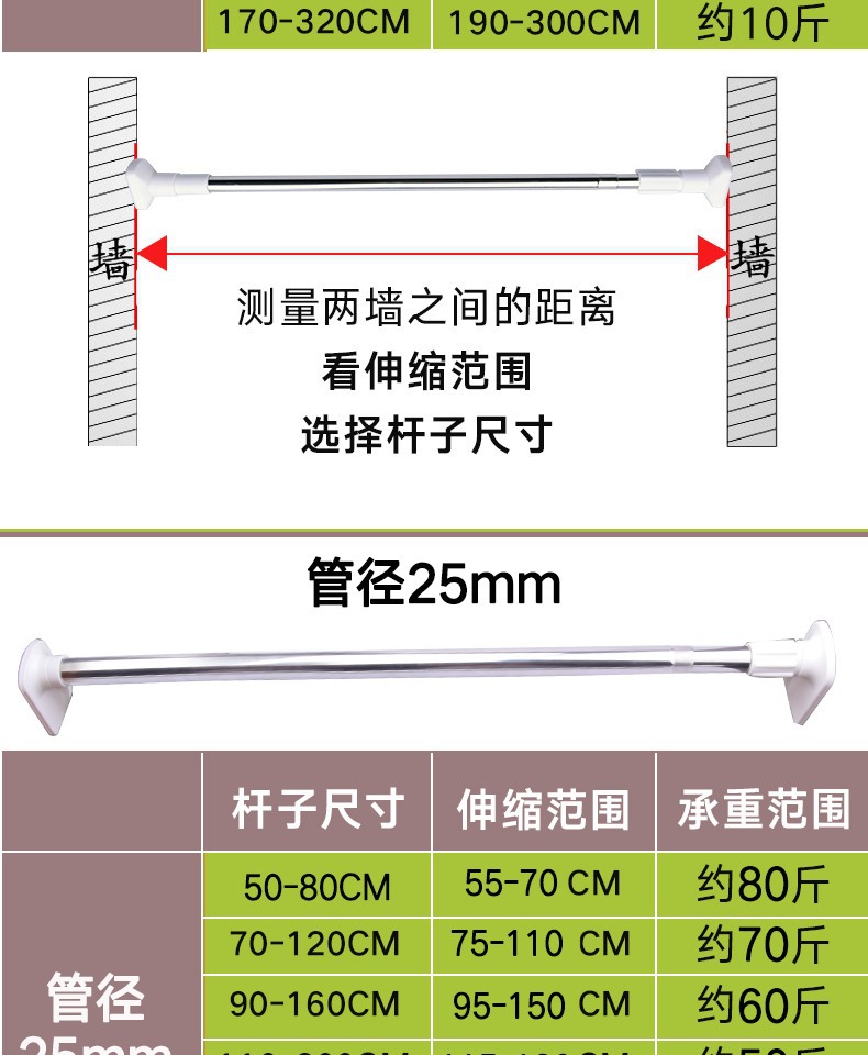 텔레스코픽 로드 펀치 프리 화장실 의류 건조 막대 욕실 샤워 커튼 막대 건조 랙 침실 옷장 브래지어 커튼 막대스토어 가기