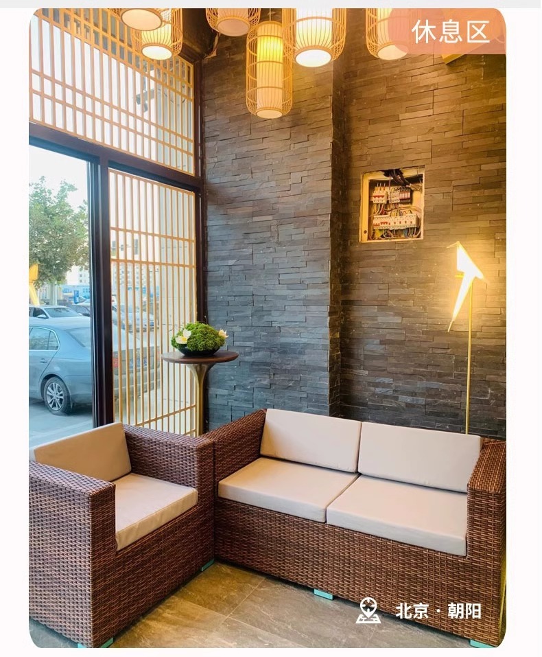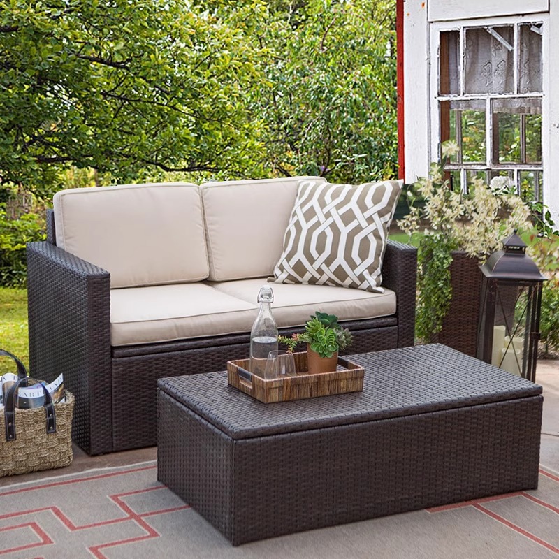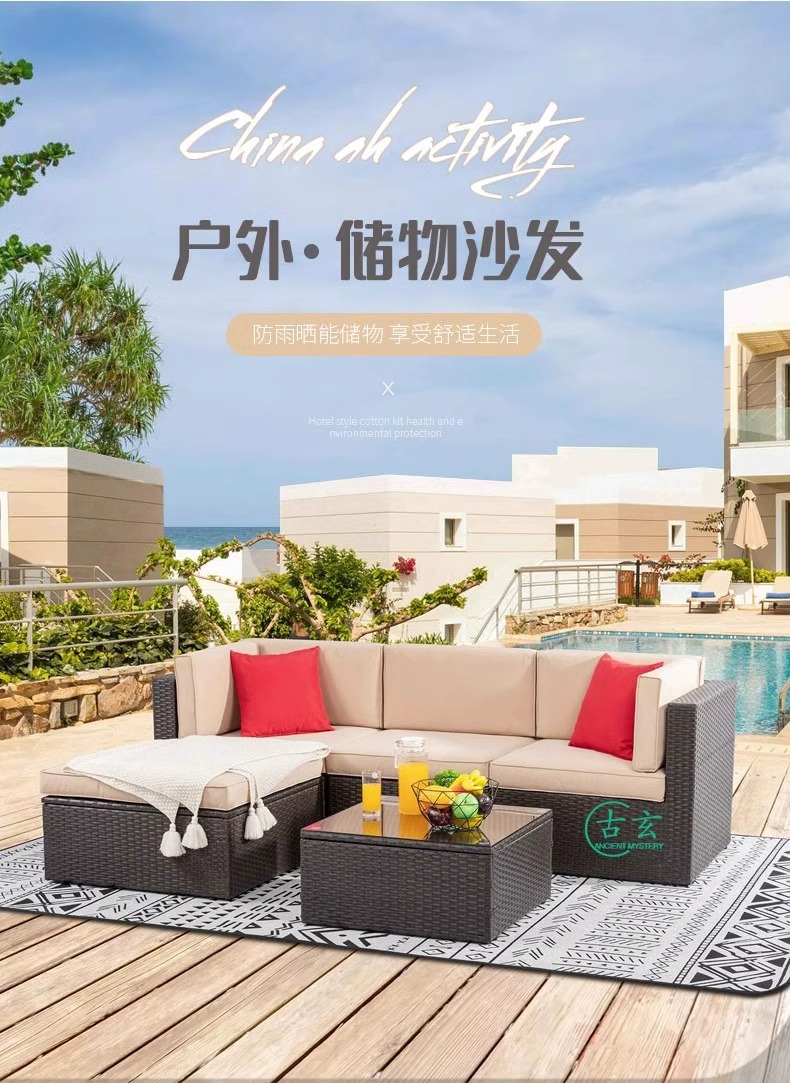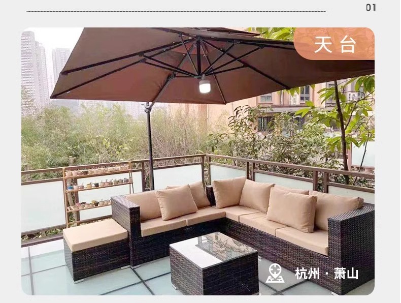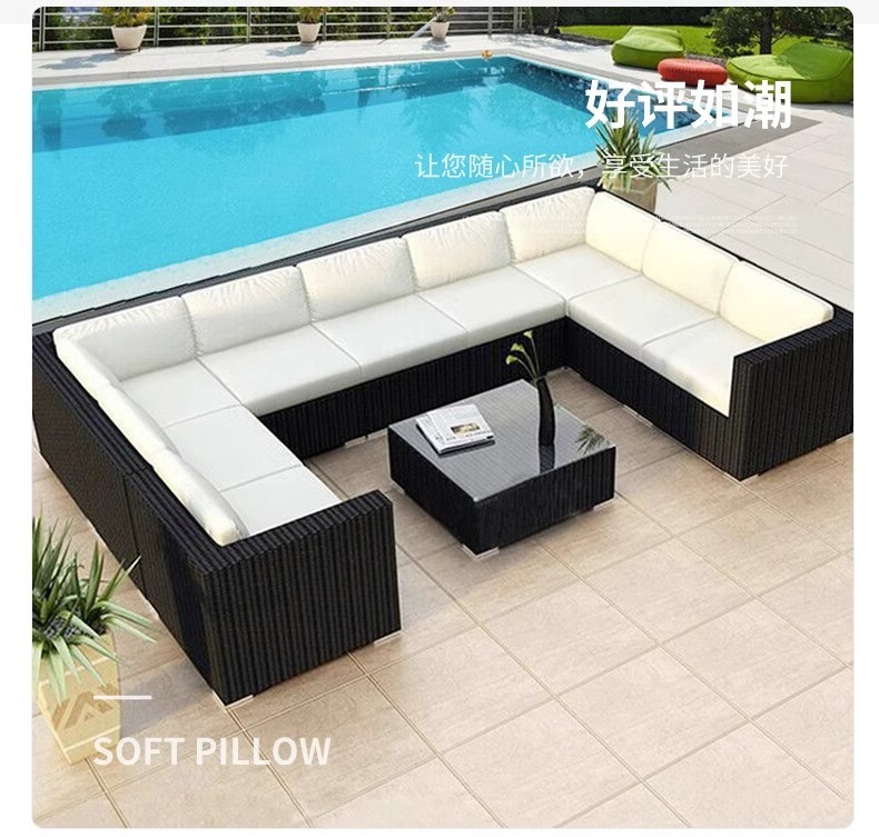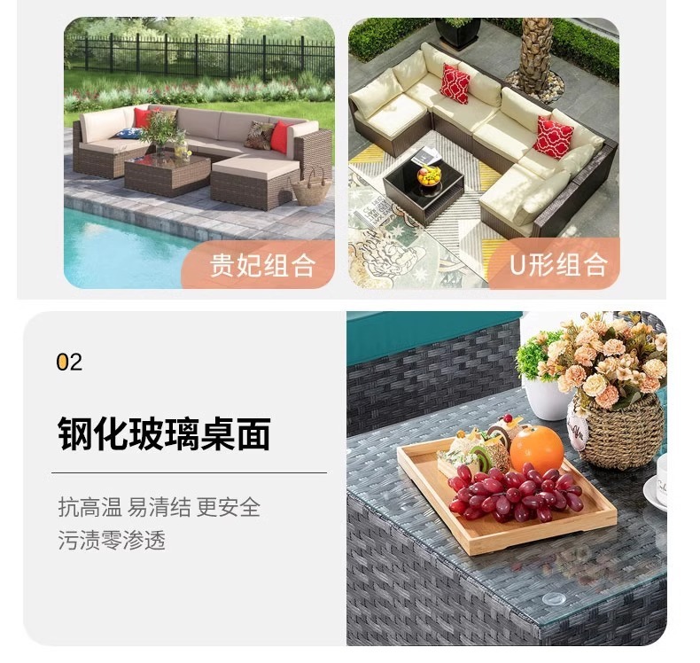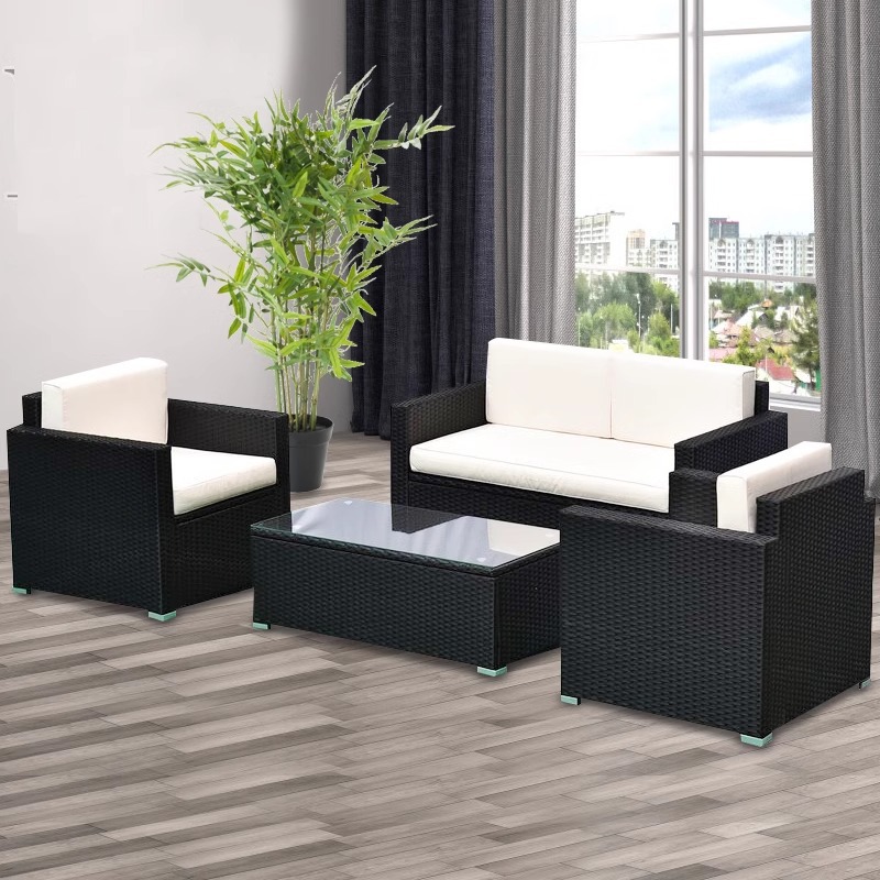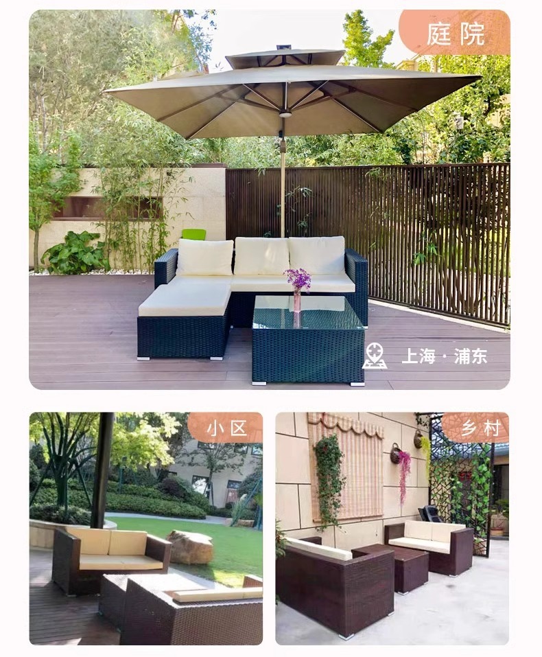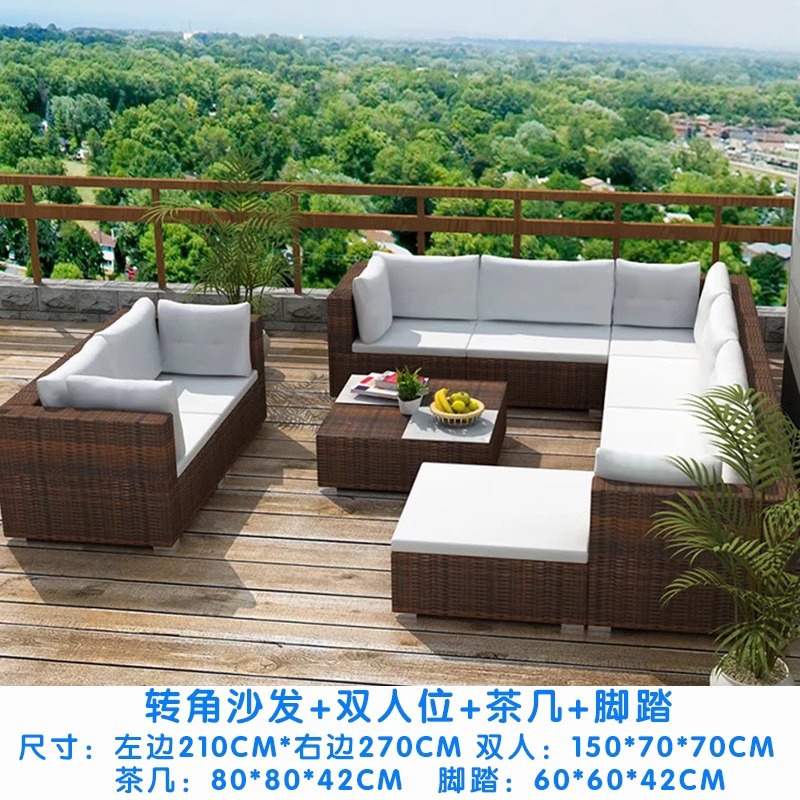 야외 소파 커피 테이블 조합 안뜰 야외 발코니 야외 거실 등나무 가구 보관 소파 선 스크린 방수스토어 가기