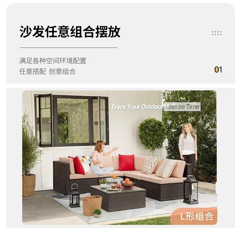 야외 소파 커피 테이블 조합 안뜰 야외 발코니 야외 거실 등나무 가구 보관 소파 선 스크린 방수