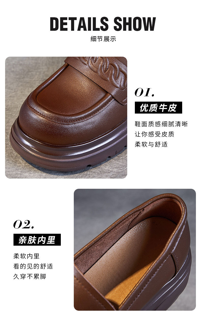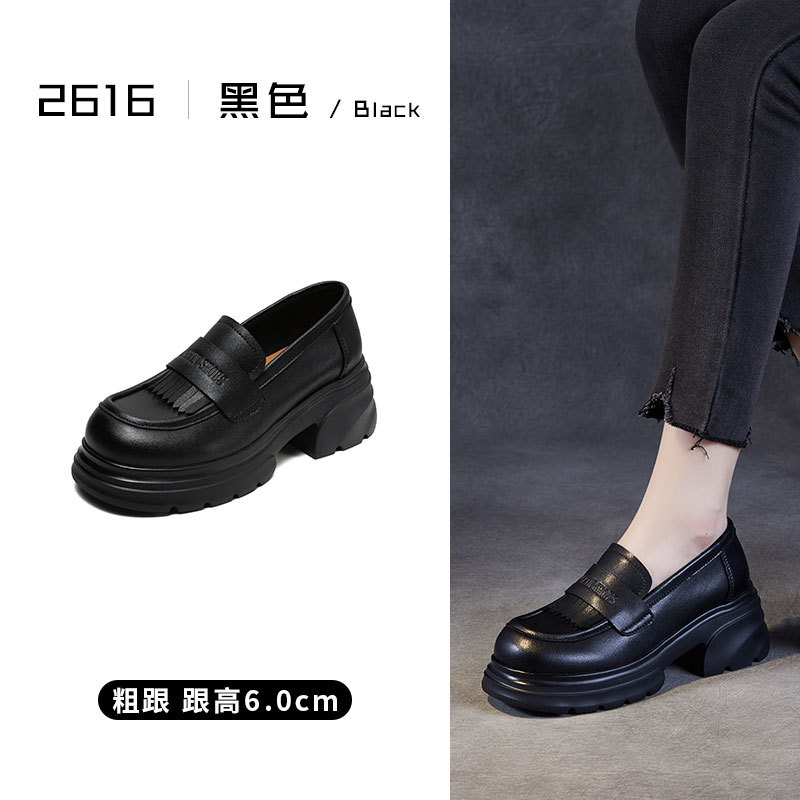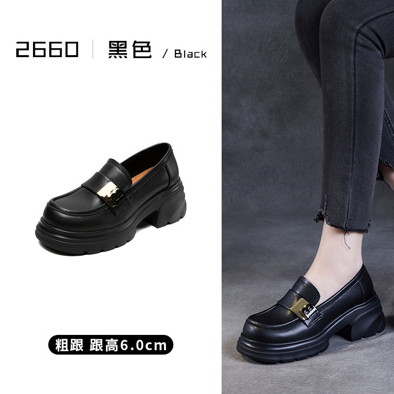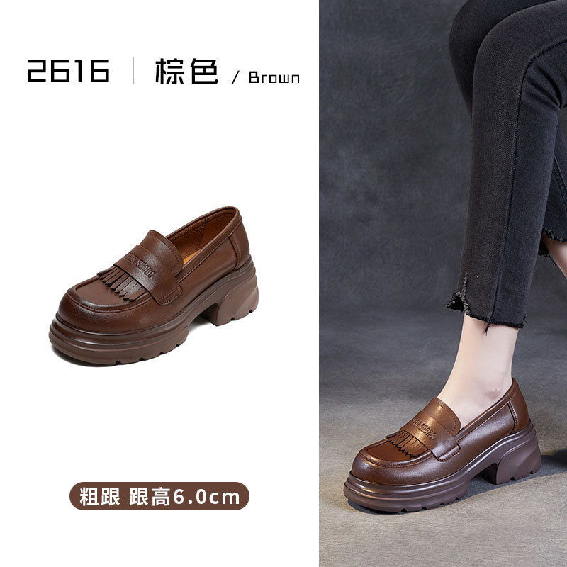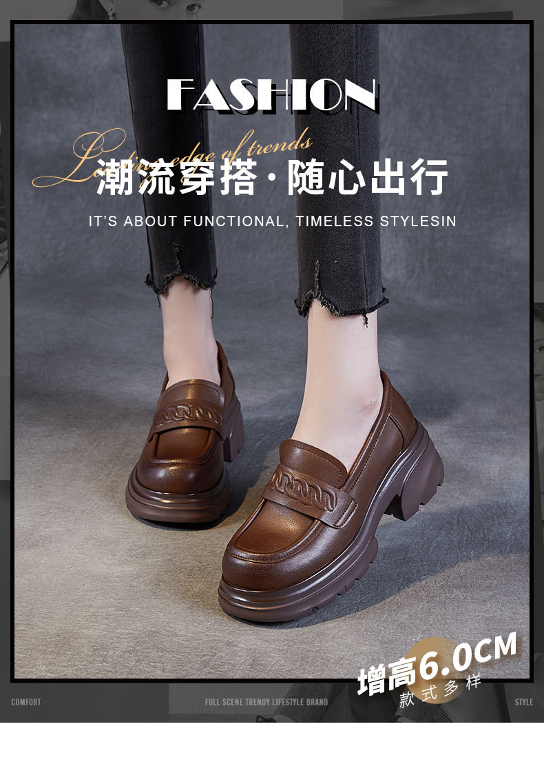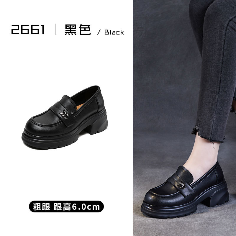 여성용 복고풍 영국 소가죽 신발 2025 새로운 스타일의 둥근 앞코 두꺼운 굽 두꺼운 밑창 로퍼 다용도 슬립온 신발 도매스토어 가기