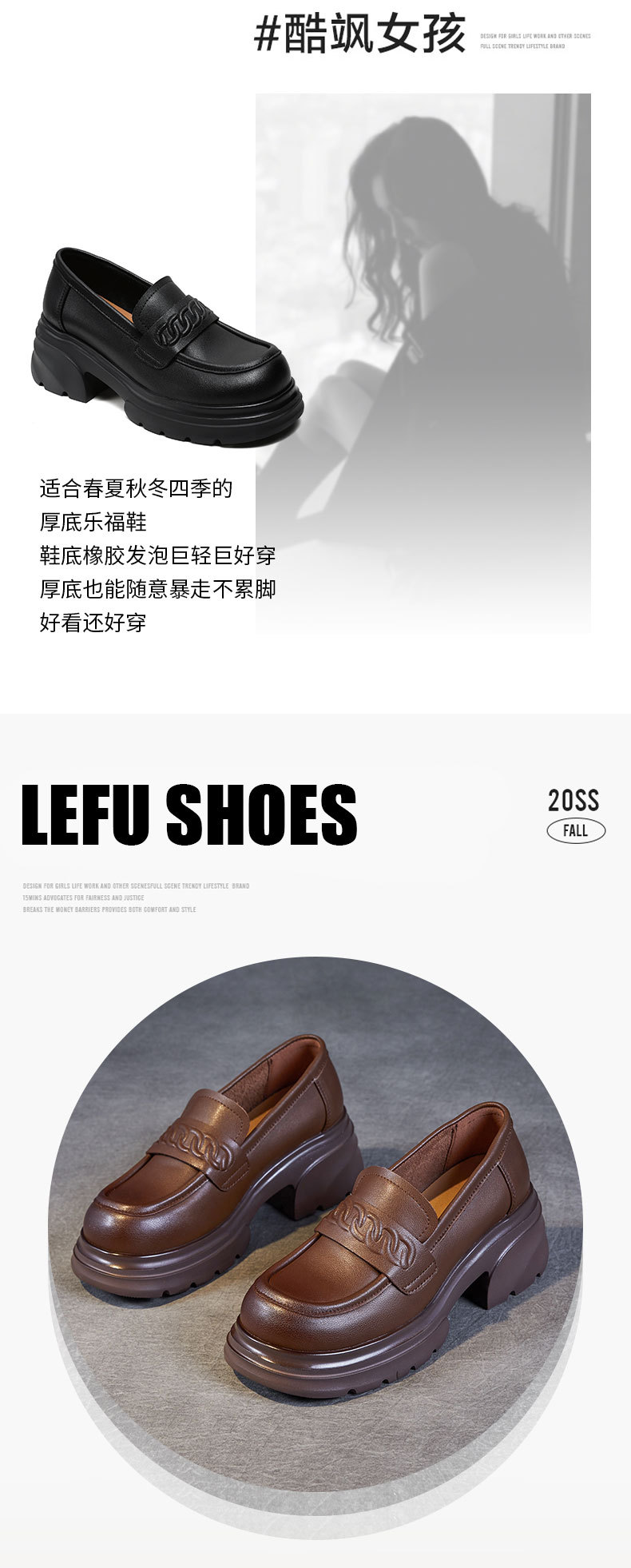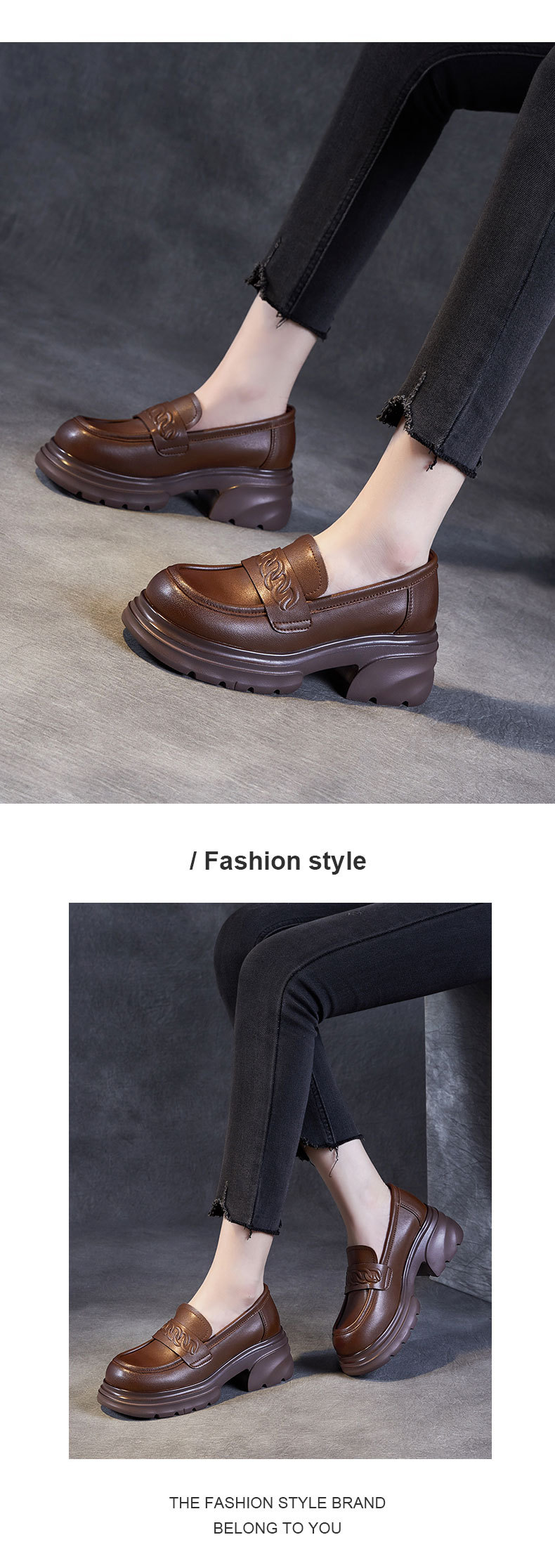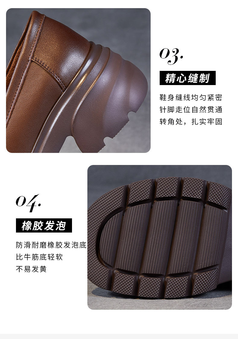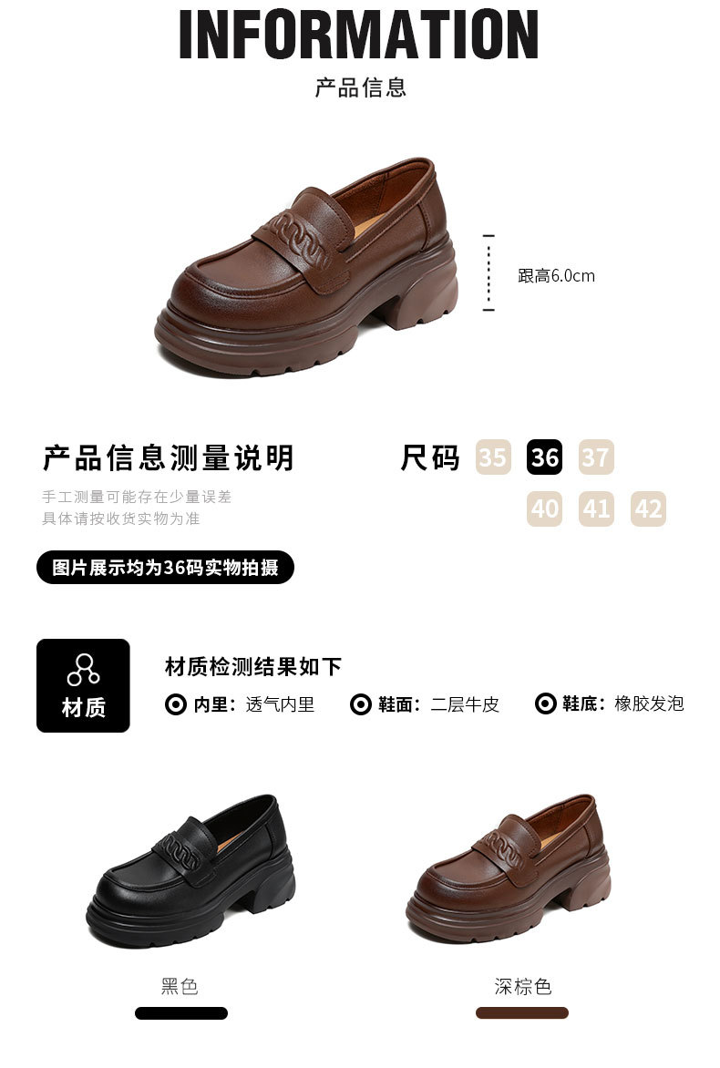 여성용 복고풍 영국 소가죽 신발 2025 새로운 스타일의 둥근 앞코 두꺼운 굽 두꺼운 밑창 로퍼 다용도 슬립온 신발 도매스토어 가기