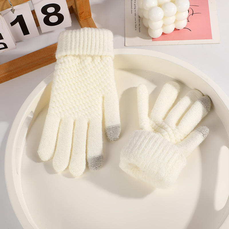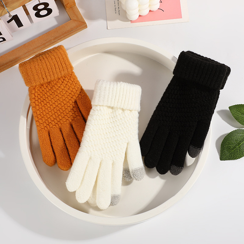 겨울 새로운 솔리드 컬러 파인애플 니트 따뜻한 장갑 손가락 장갑 스포츠 승마 장갑 재고