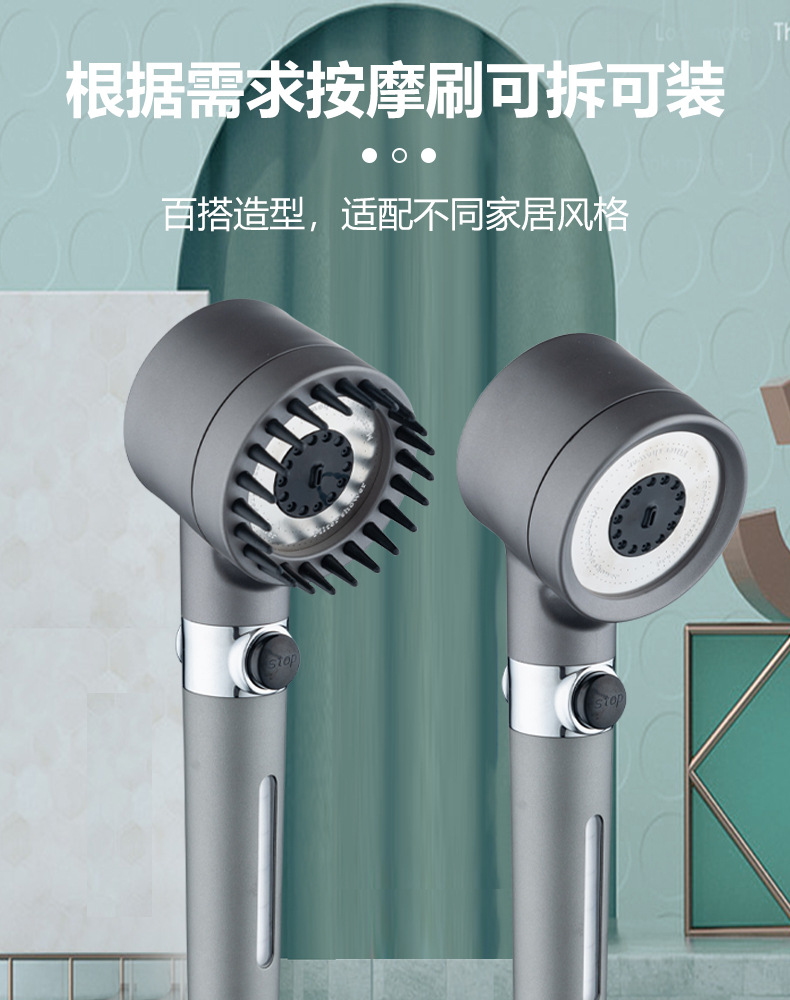 • 【SA-39】건메탈 그레이 【필터 가압】 3단 분사 마사지 샤워기 + 1.5m 샤워 호스