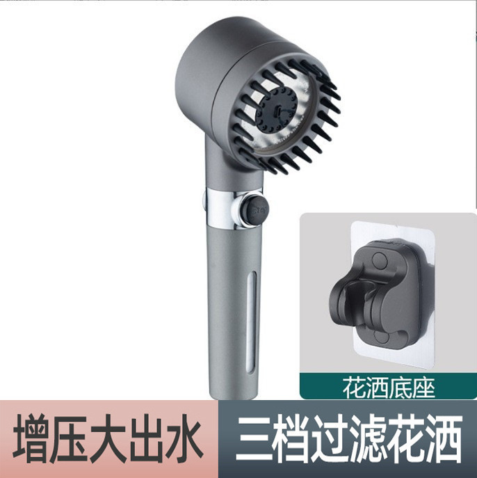 • 【SA-39】건메탈 그레이 【필터 가압】 3단 분사 마사지 샤워기 + 1.5m 호스 + 무타공 거치대
