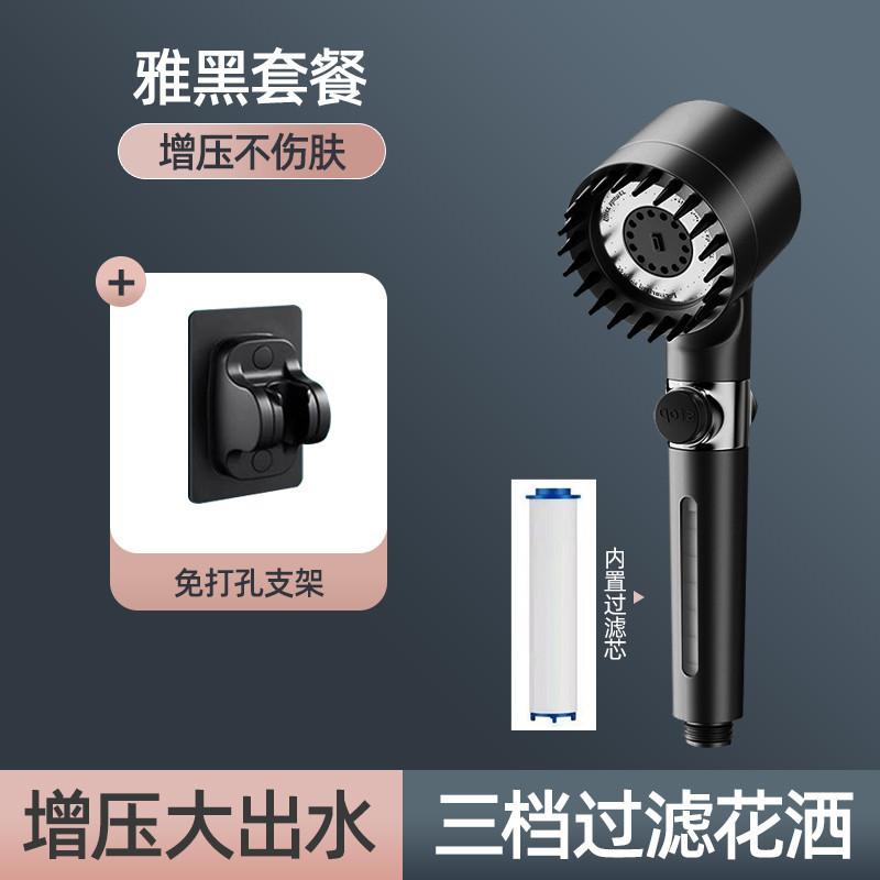 • 【SA-39】블랙 【필터 가압】 3단 분사 마사지 샤워기 + 1.5m 호스 + 무타공 거치대