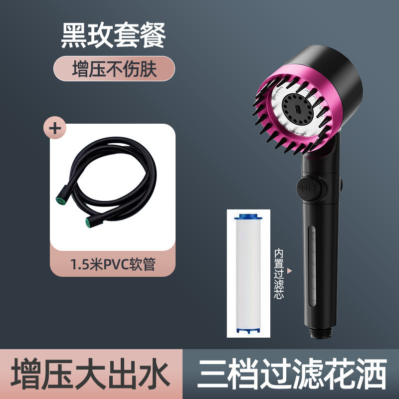 • 【SA-39】블랙 로즈 색상 【필터 가압】 3단 분사 마사지 샤워기 + 1.5m 샤워 호스