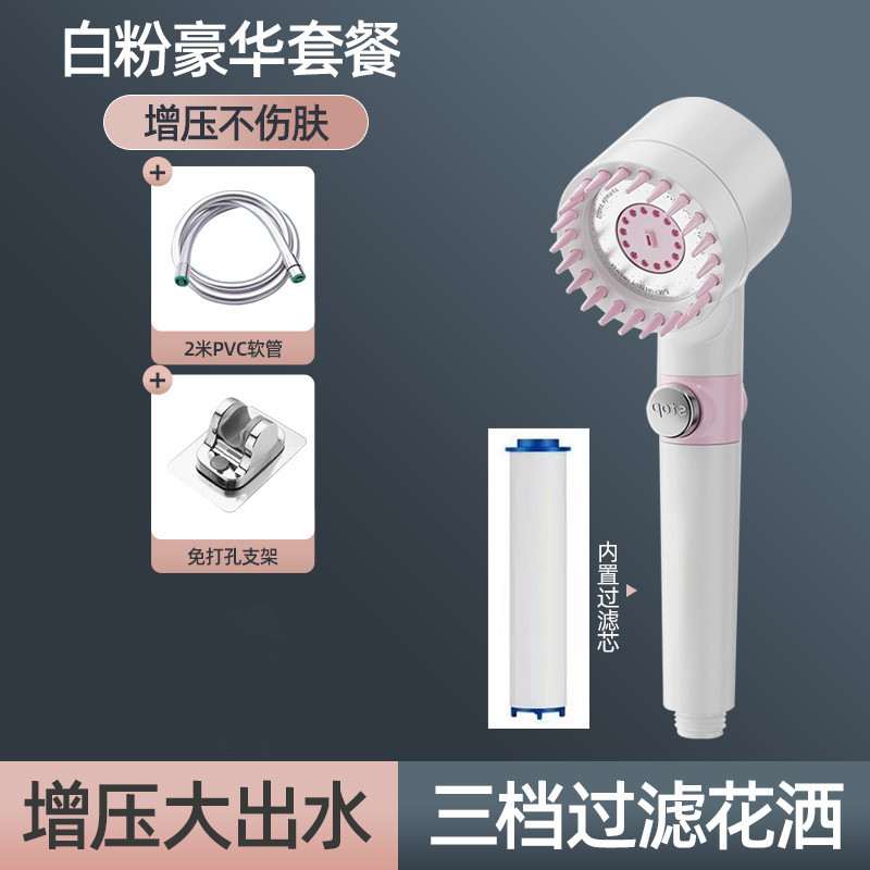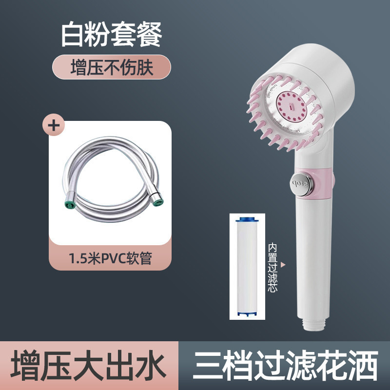 • 【SA-39】화이트 핑크【필터 가압】3단 분사 마사지 샤워기 + 1.5m 샤워 호스