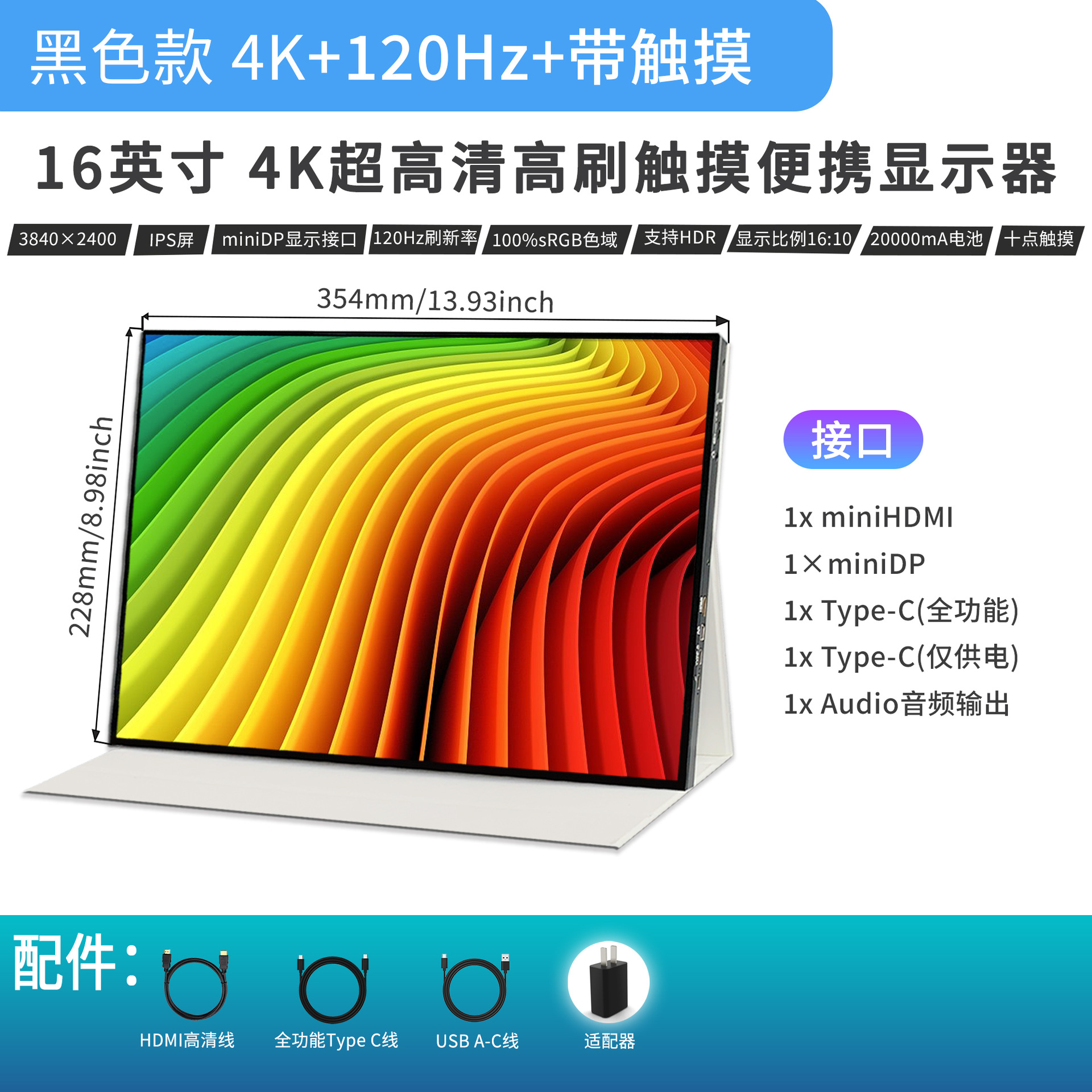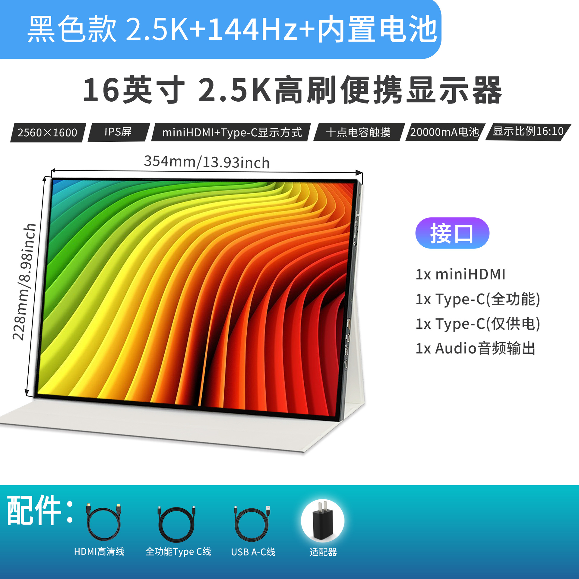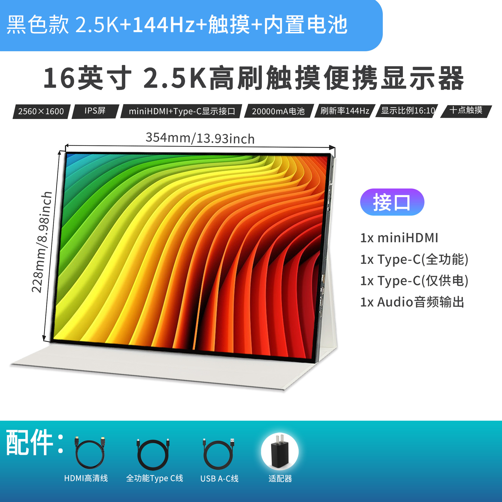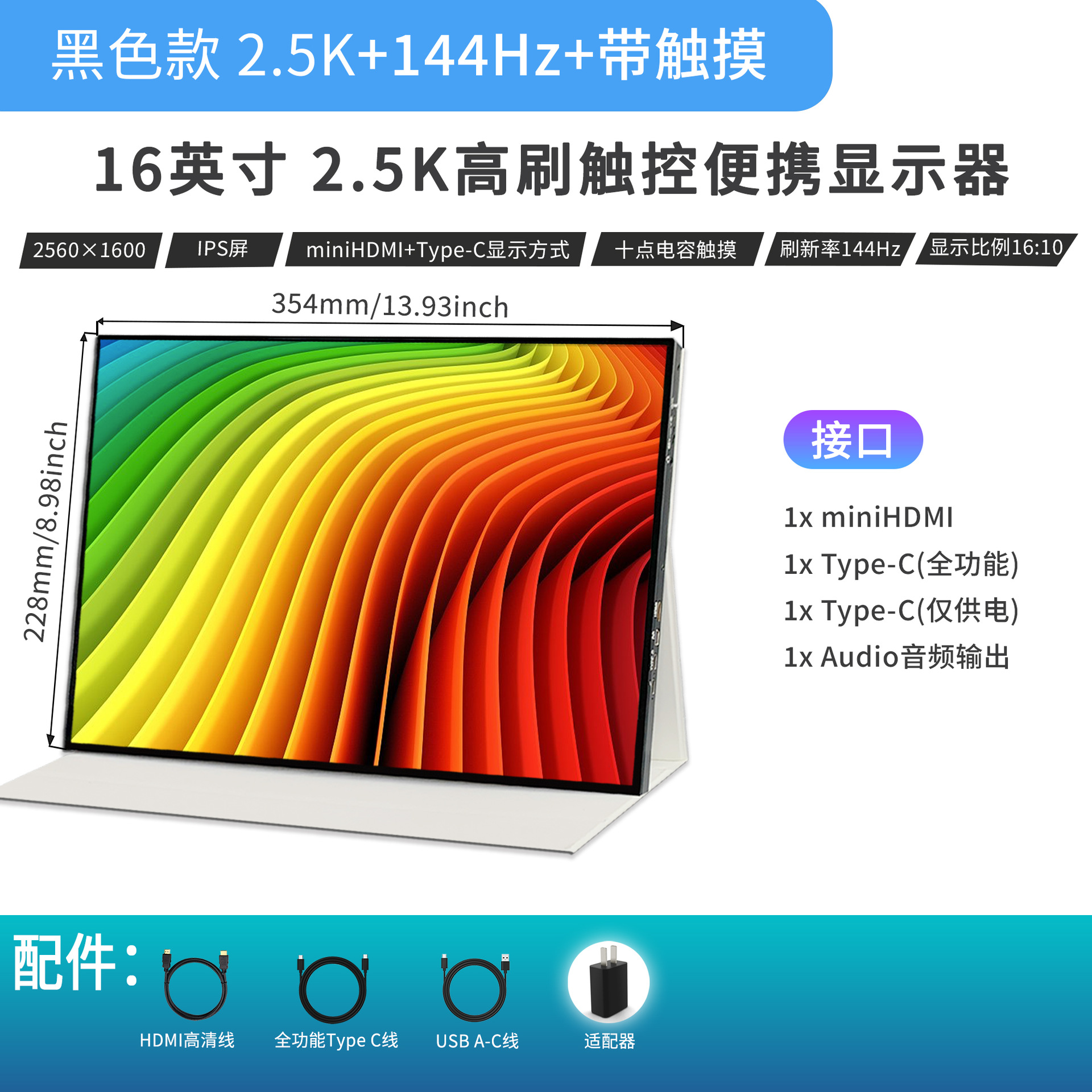 16 인치 2.5K 휴대용 디스플레이 터치 휴대 전화 스위치 컴퓨터 게임 기계 외부 서브 스크린 확장 서브 스크린