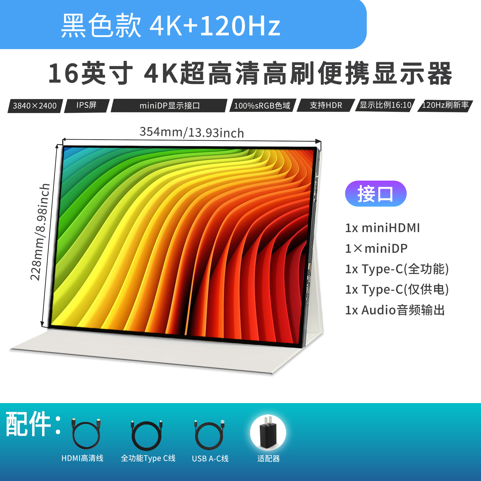 16 인치 2.5K 휴대용 디스플레이 터치 휴대 전화 스위치 컴퓨터 게임 기계 외부 서브 스크린 확장 서브 스크린스토어 가기