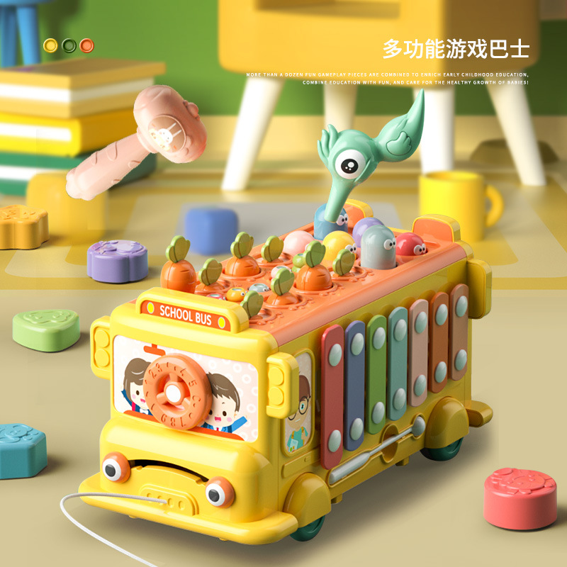 어린이 다기능 드래그 버스가 피아노를 이길 유아 고퍼를 때리고 무 게임 6 면 버스 조기 교육 장난감