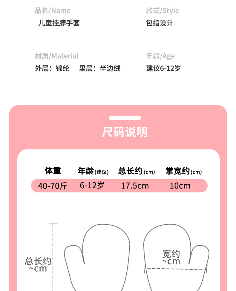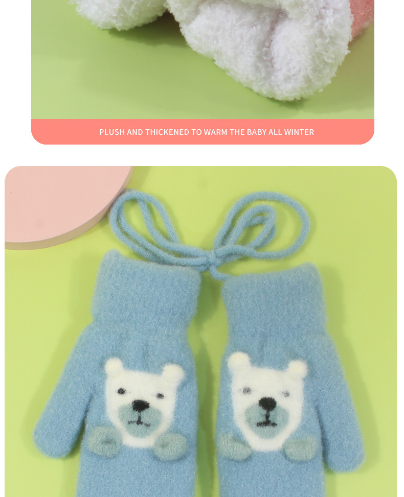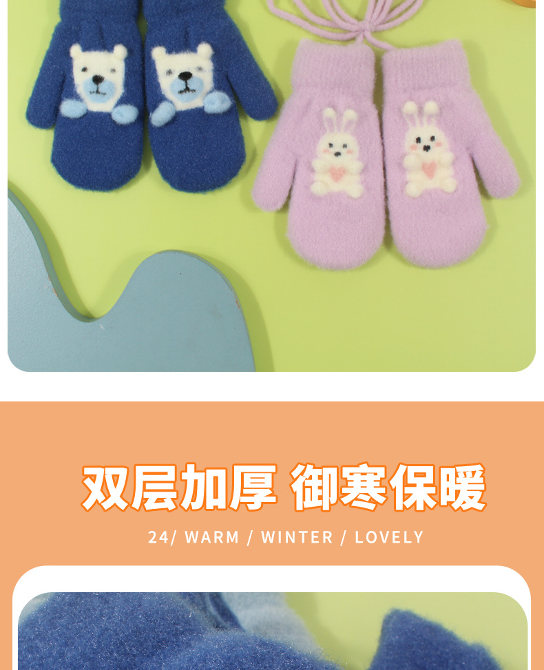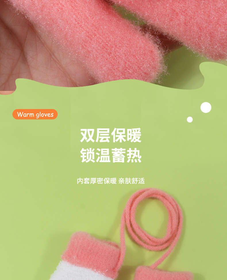어린이 장갑 가을과 겨울 아기 목에 매달린 소년의 따뜻한 두꺼운 여아 기모 양모 가방 손가락 만화 중년 어린이