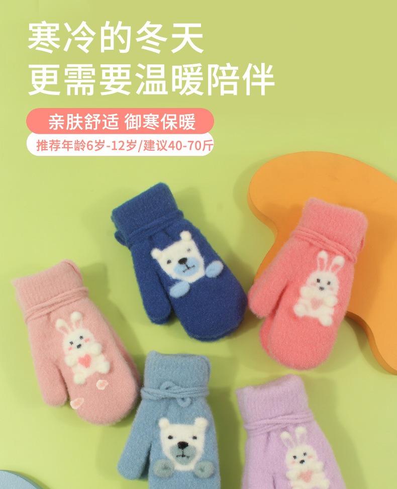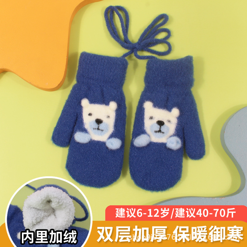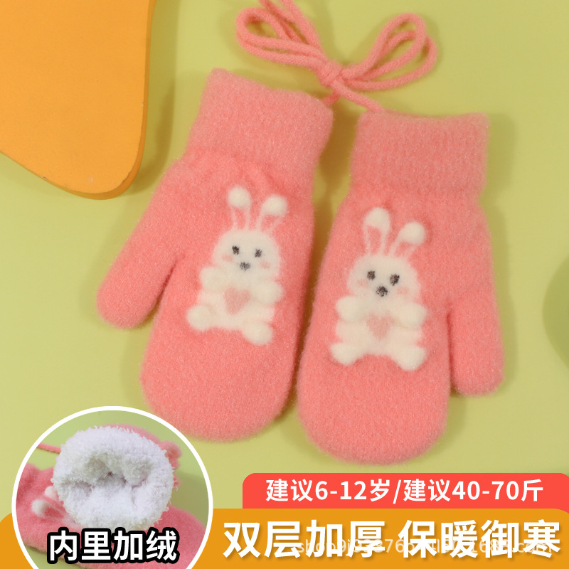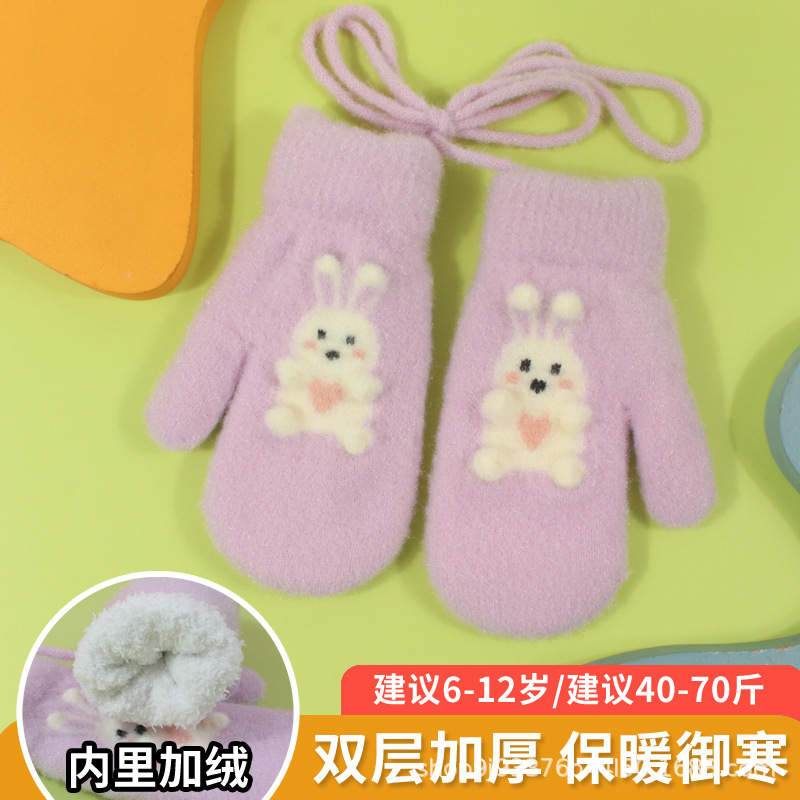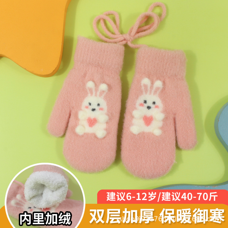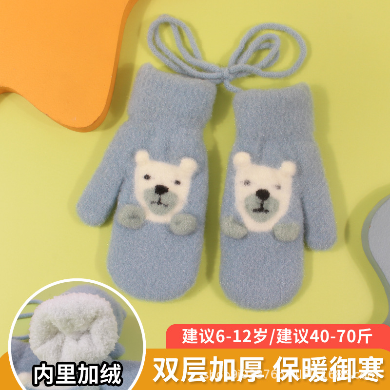 어린이 장갑 가을과 겨울 아기 목에 매달린 소년의 따뜻한 두꺼운 여아 기모 양모 가방 손가락 만화 중년 어린이스토어 가기