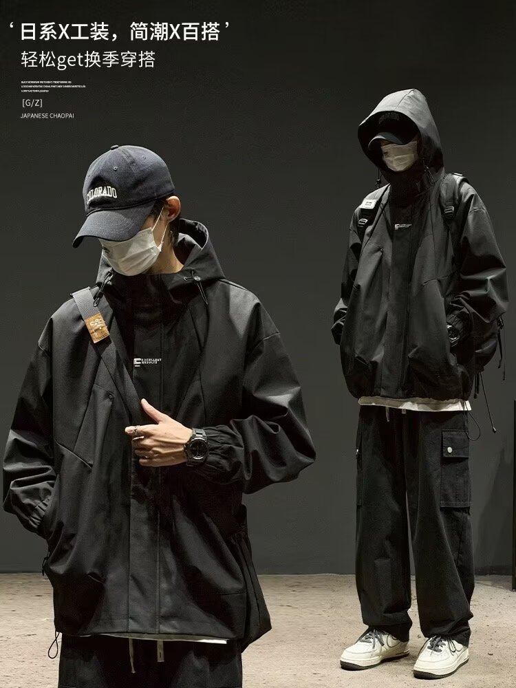 야외 충전 옷 봄과 가을 새로운 패션 브랜드 커플 느슨한 도구 방풍 방수 재킷 코트 남성과 여성