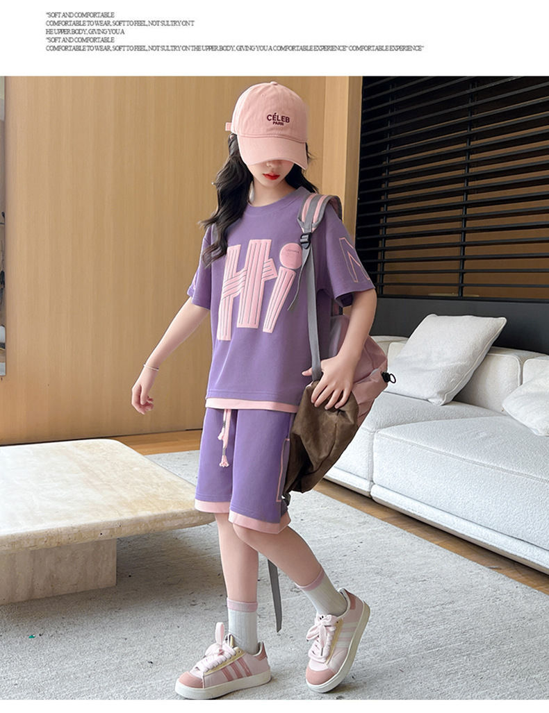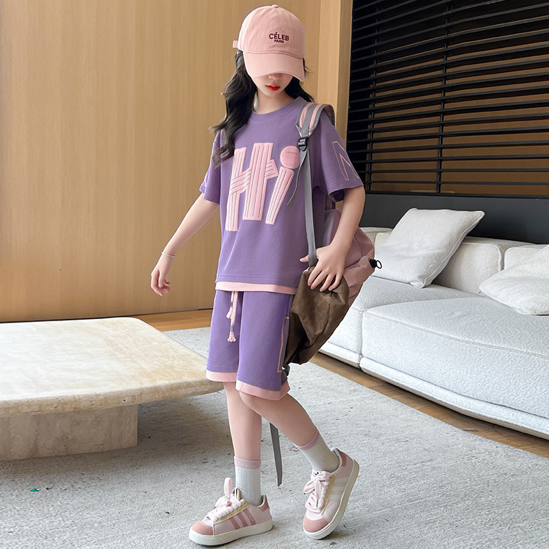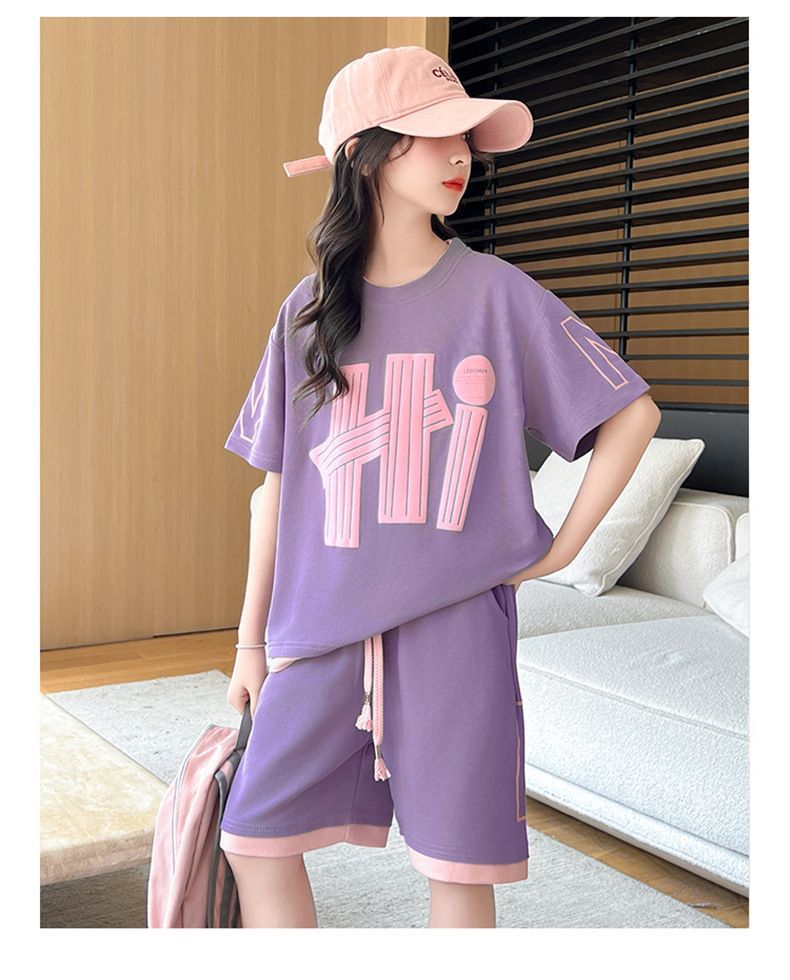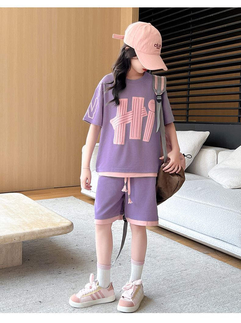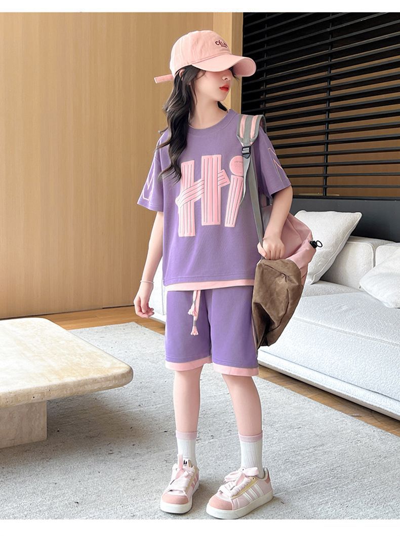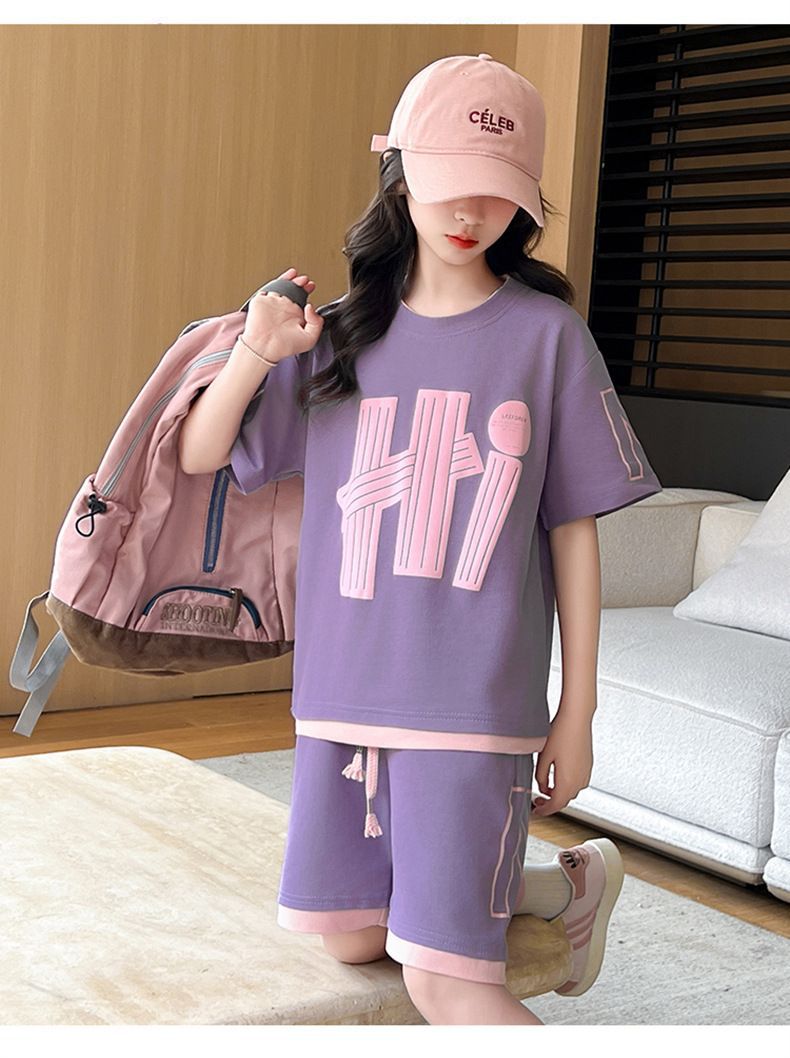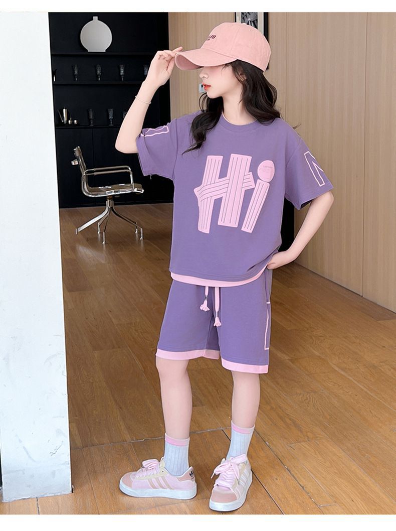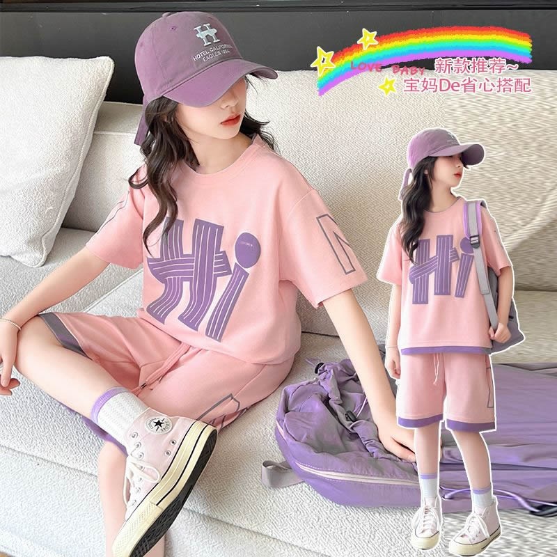 여아 여름 세트 2026년 신상 중대형 아동용 트렌디한 반팔 반바지 캐주얼 스포츠 투피스 여름옷
