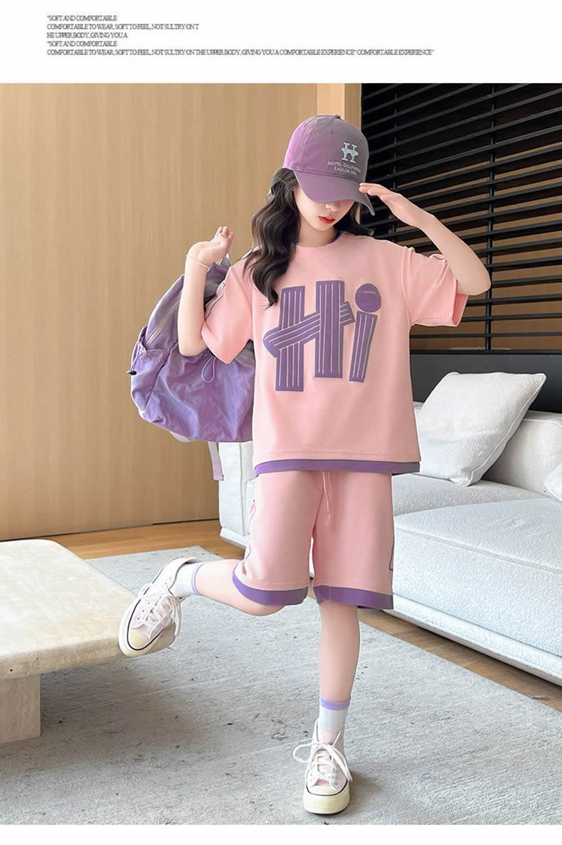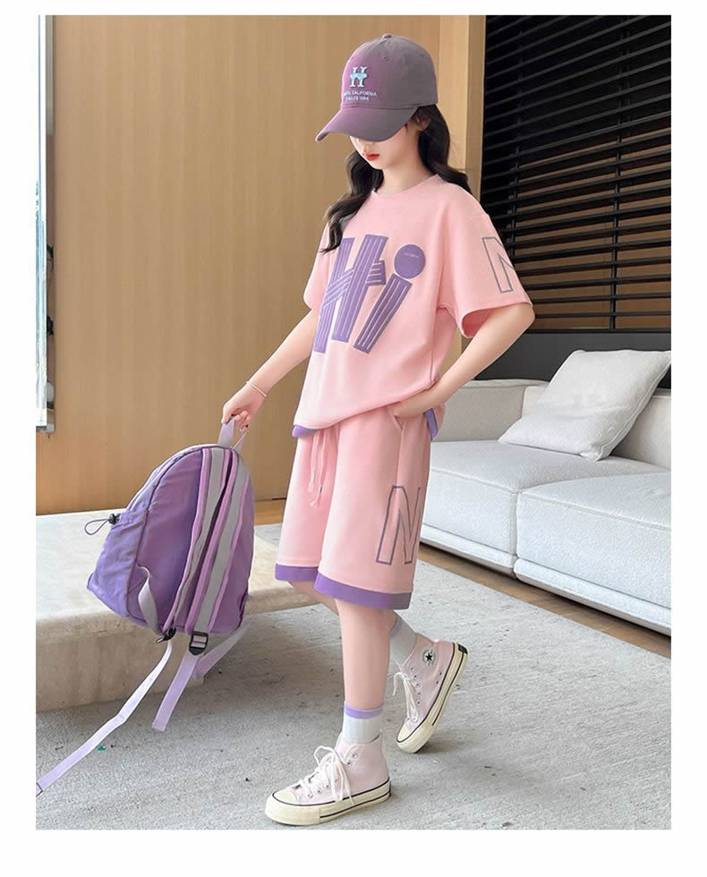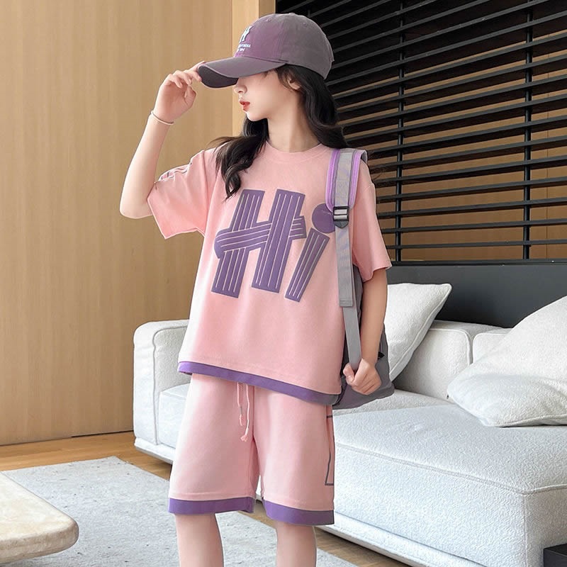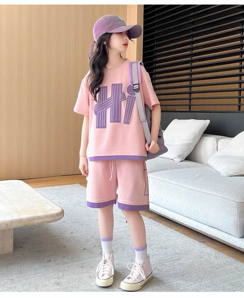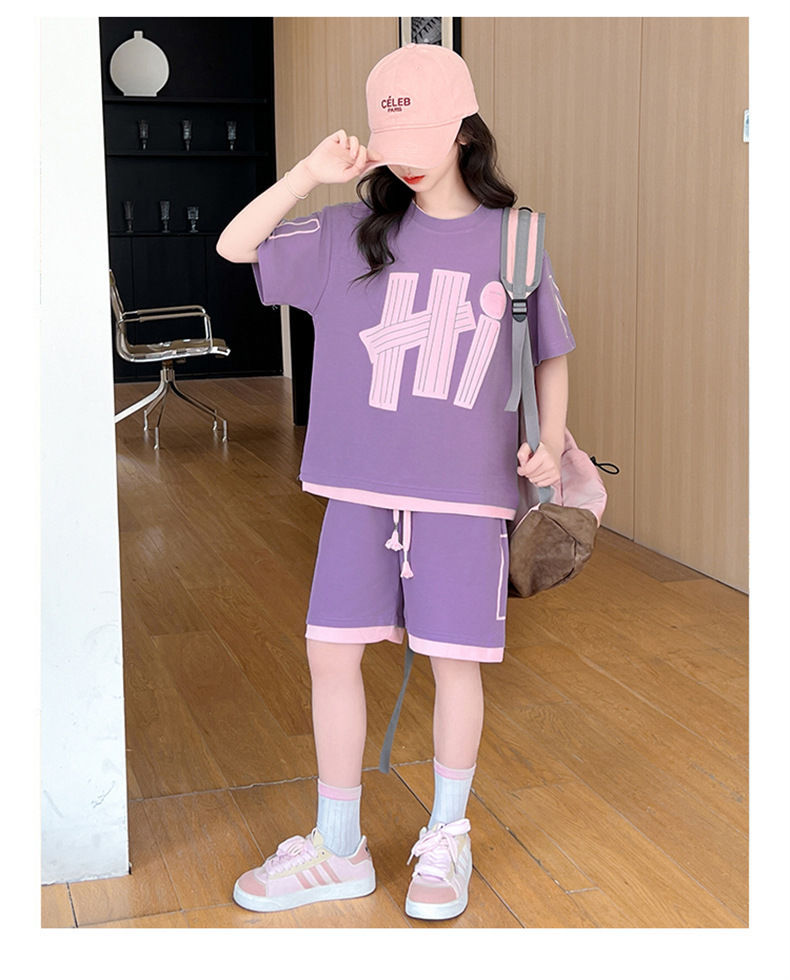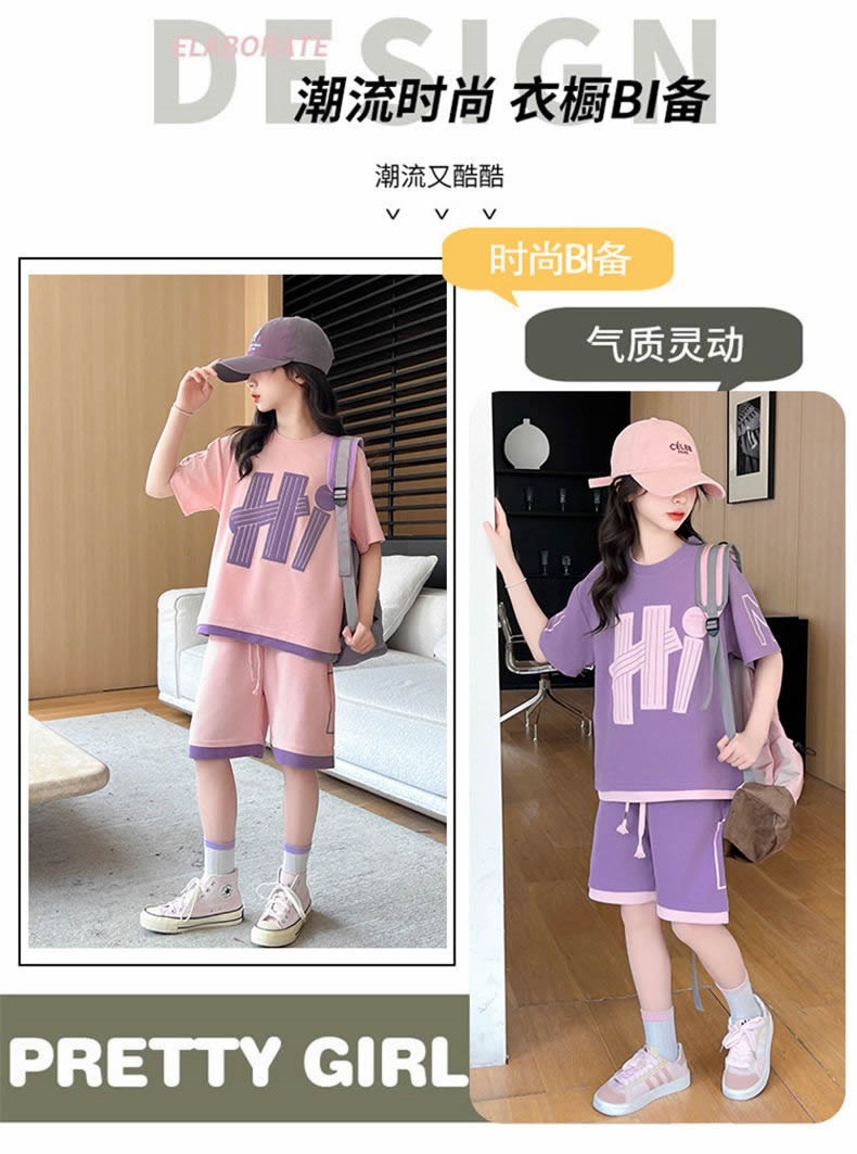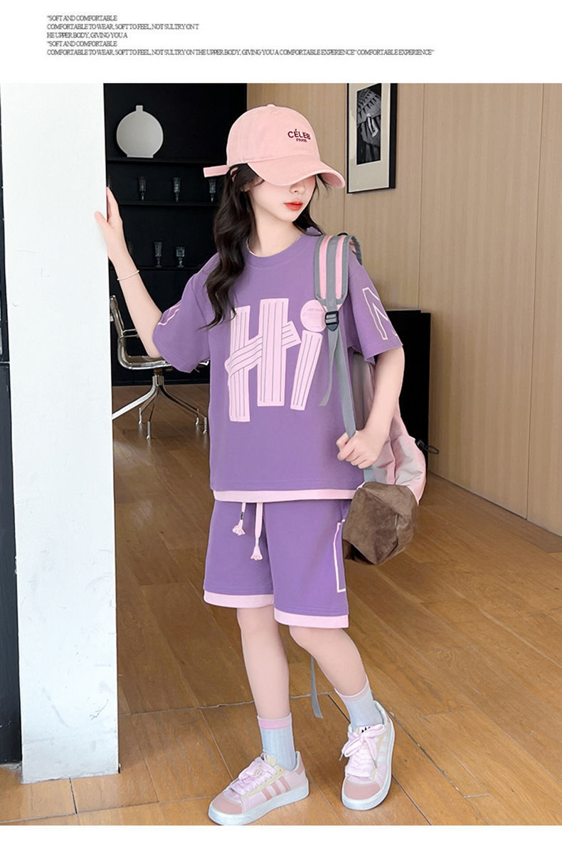 여아 여름 세트 2026년 신상 중대형 아동용 트렌디한 반팔 반바지 캐주얼 스포츠 투피스 여름옷